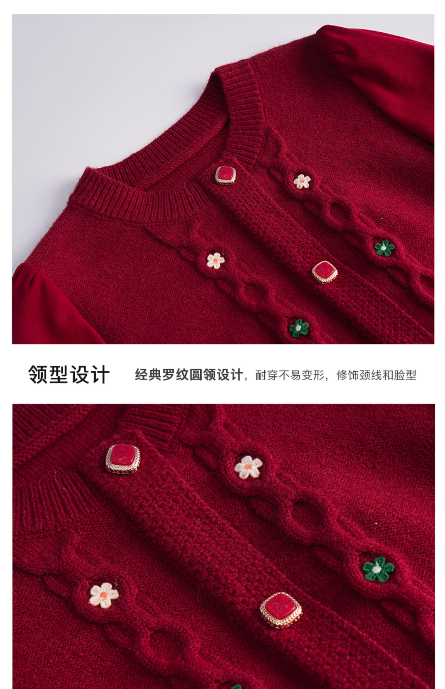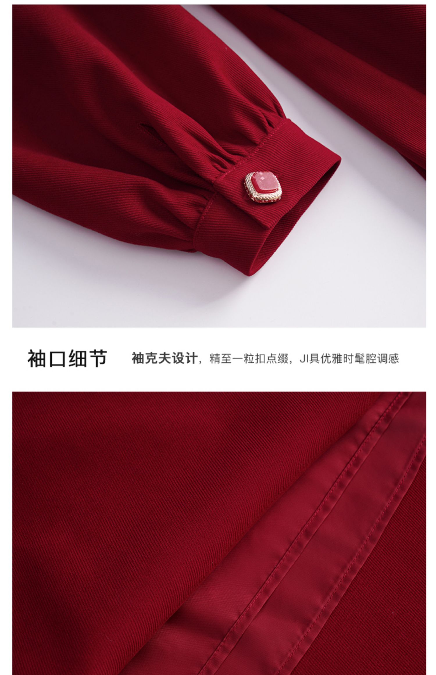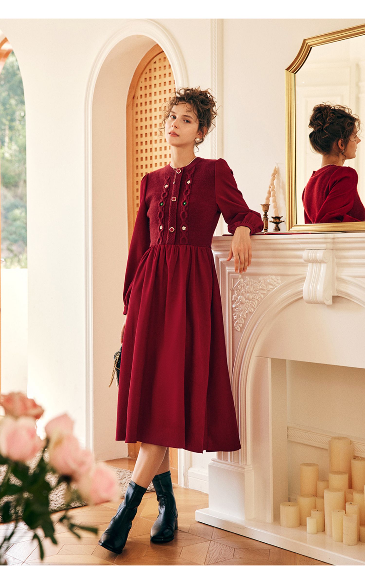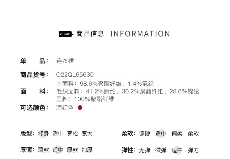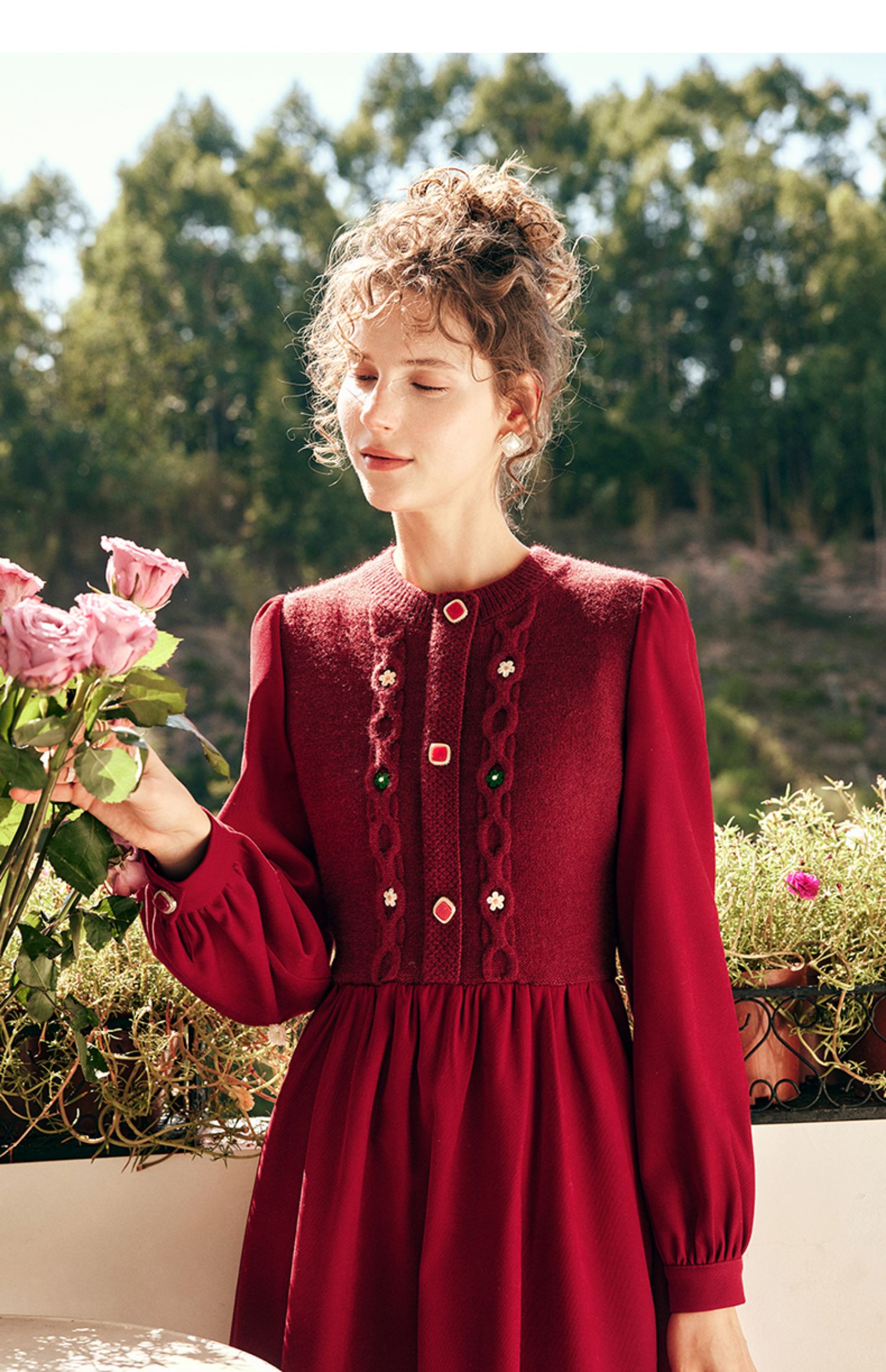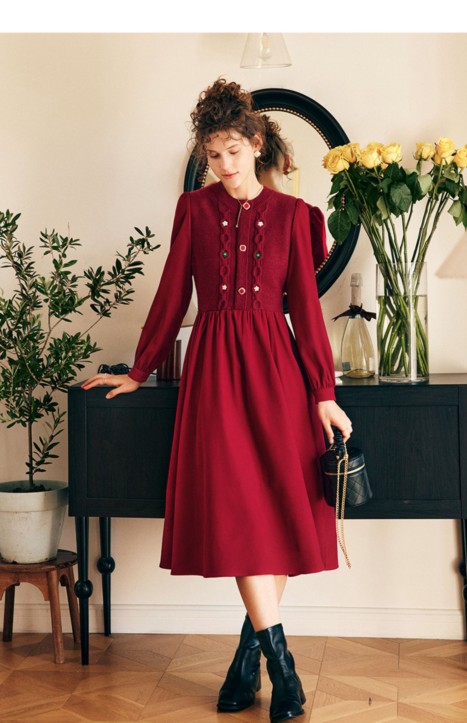 OLrain欧芮儿法式酒红色连衣裙女秋季2023年新款收腰针织拼接裙子
