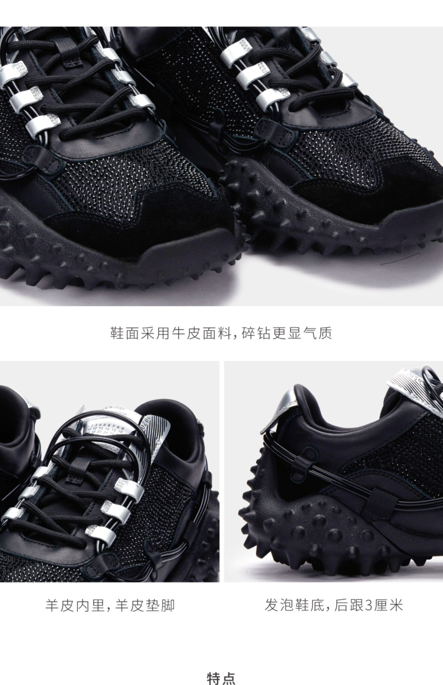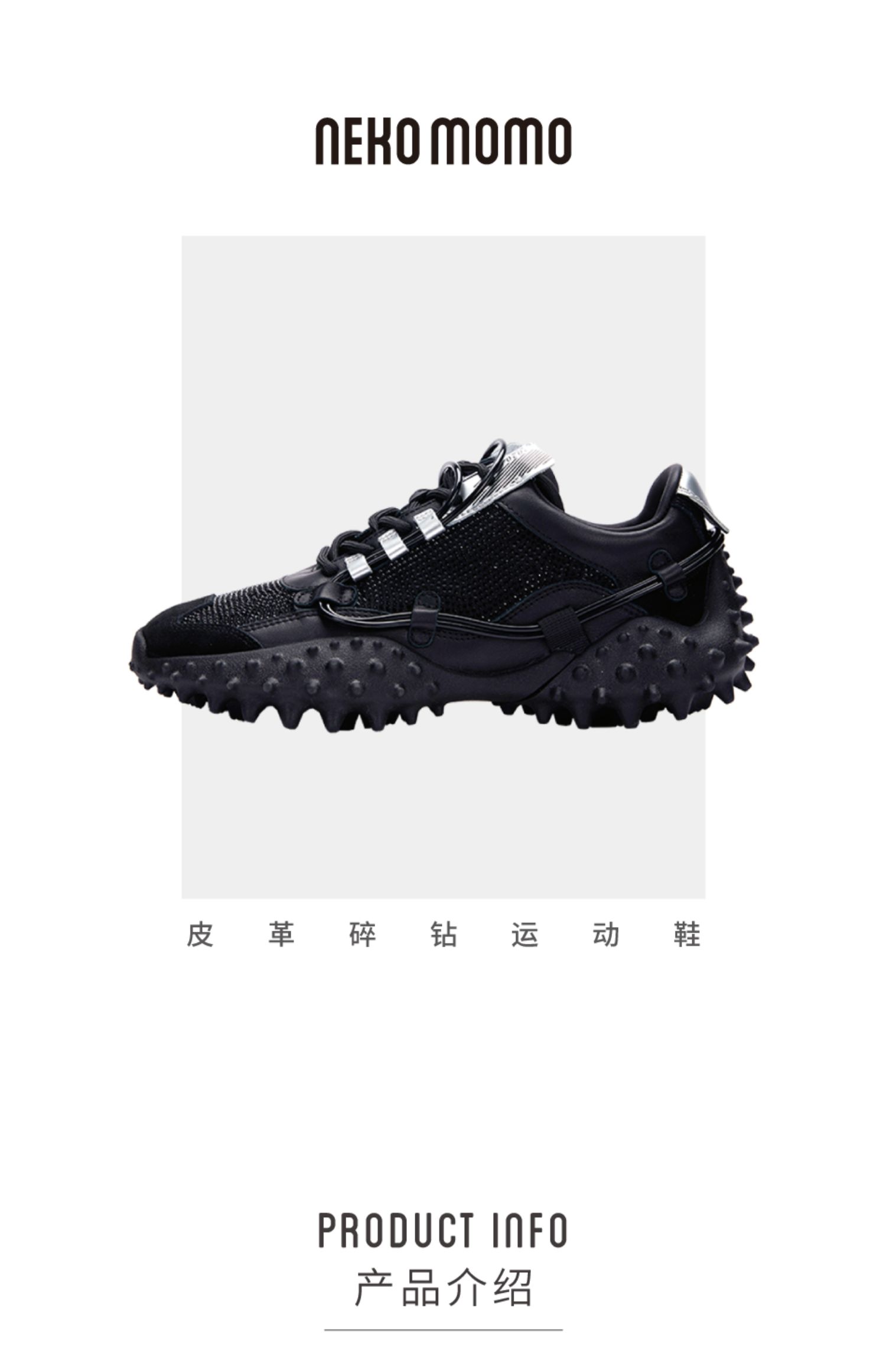 nekomomo2023年春季新款商场同款头层牛皮镶钻系带厚底老爹鞋女M21AM12971