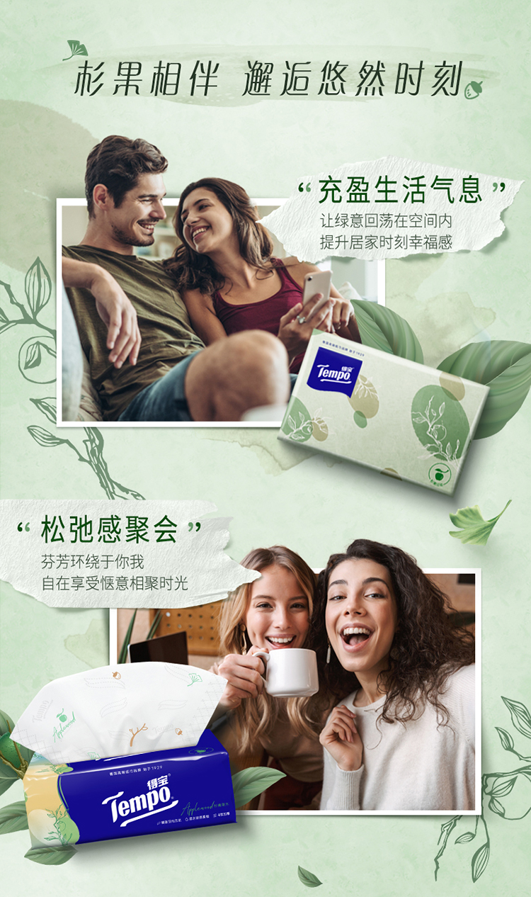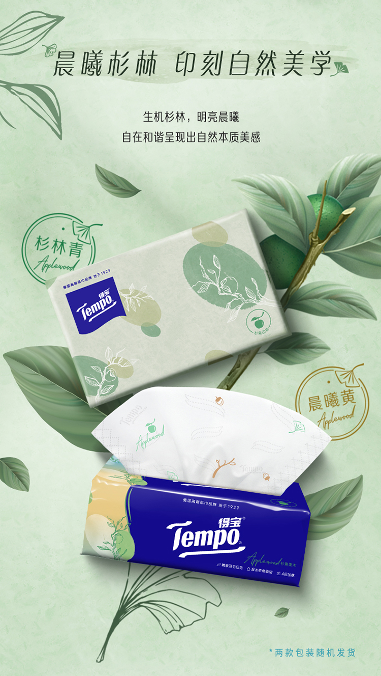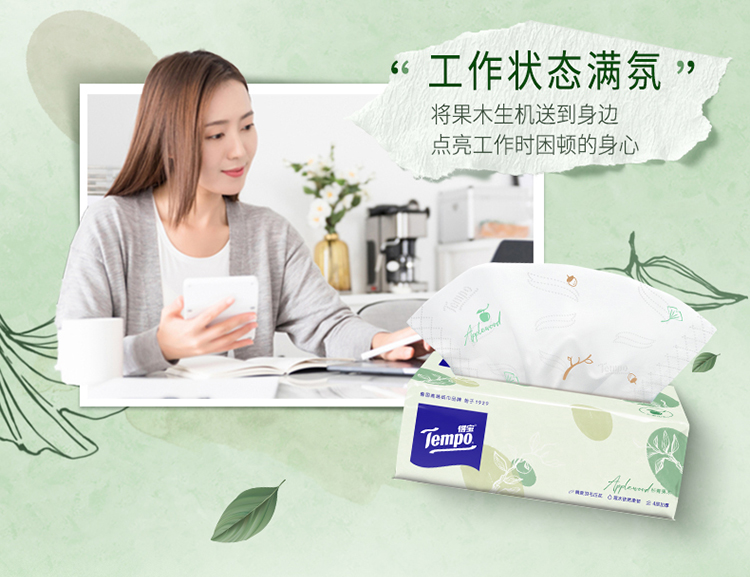 『得宝Tempo』抽纸4层90抽4包 软抽面巾纸(苹果木味/杉青果木味)(新旧包装随机发)