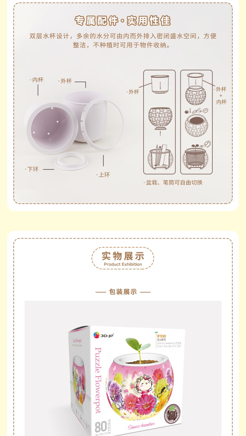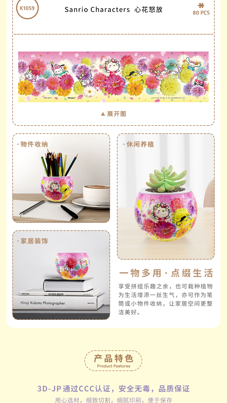 【折扣商品 不退不换】80片 盆栽拼图 K1059 Sanrio Characters 心花怒放