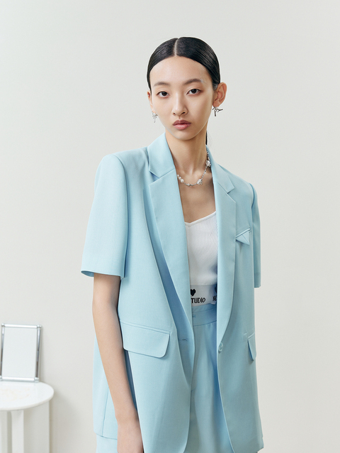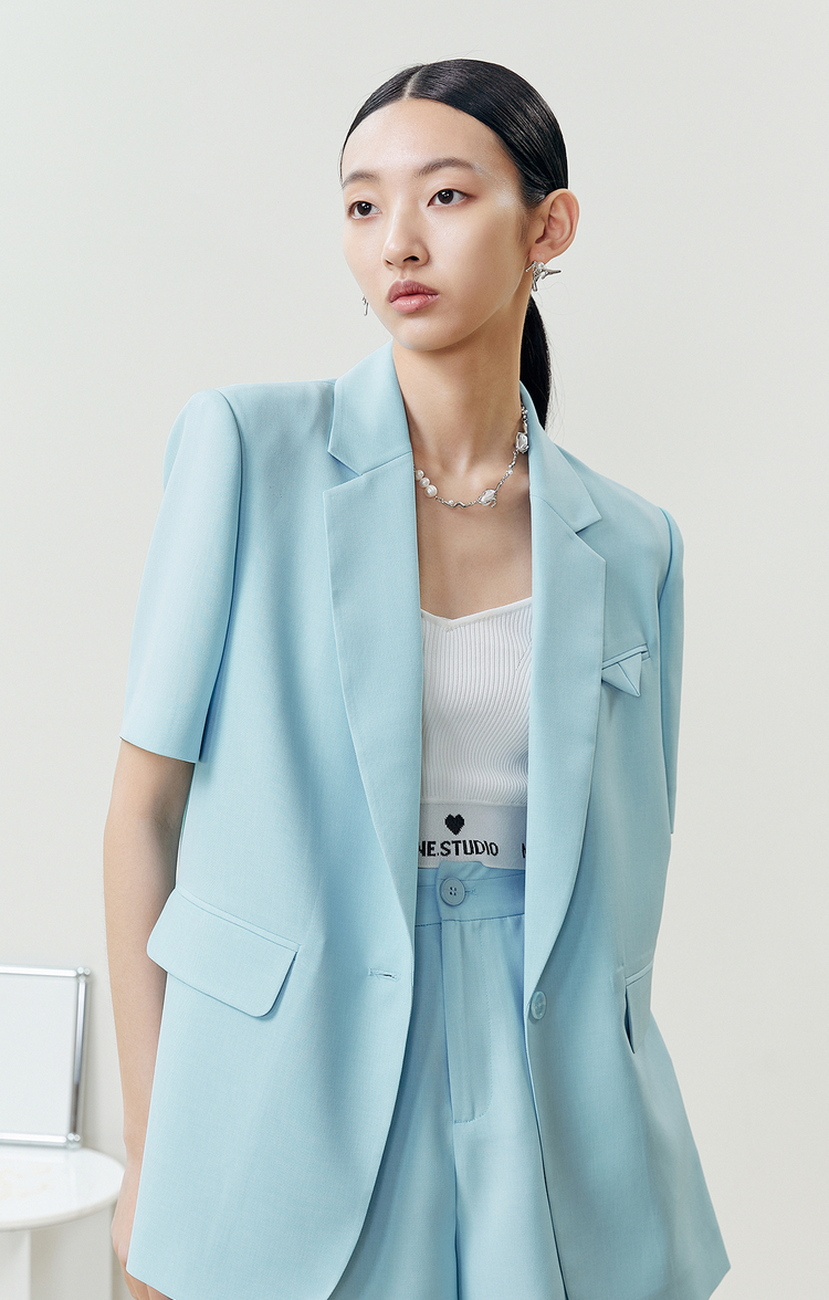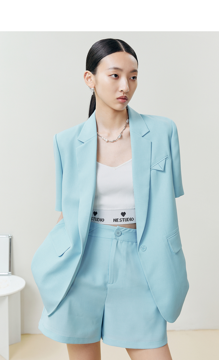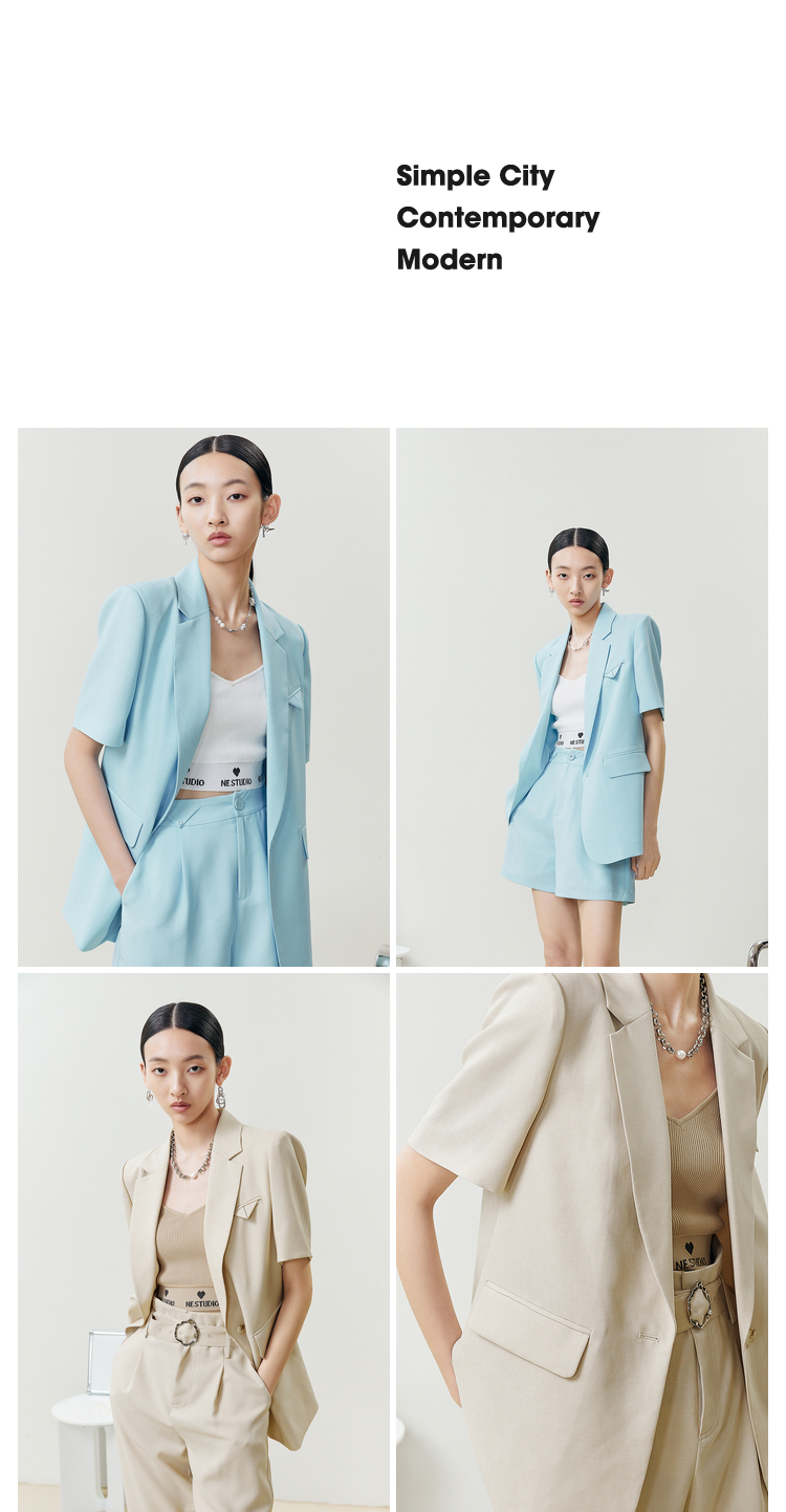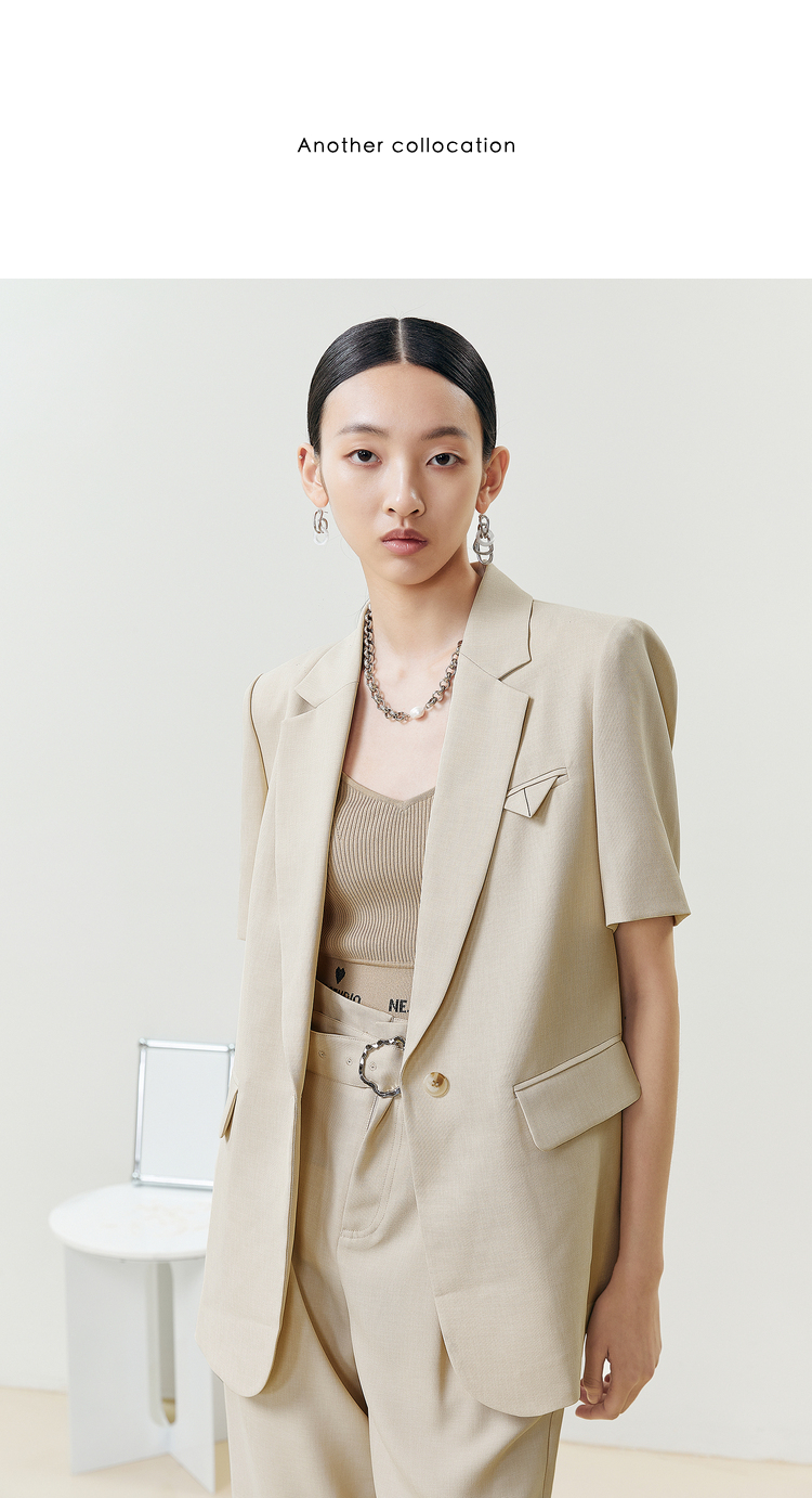 NEELLY纳俪商场同款2022夏季新款短袖西装外套女宽松版通勤上衣N22042C01043