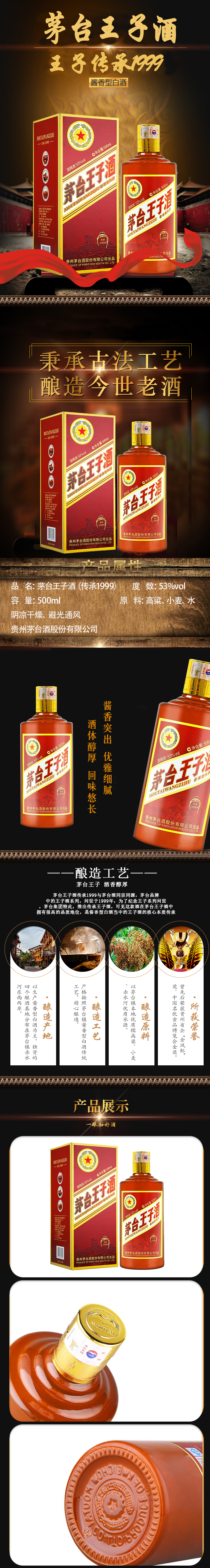 茅台王子酒 传承王子1999 53度酱香型白酒 500ml