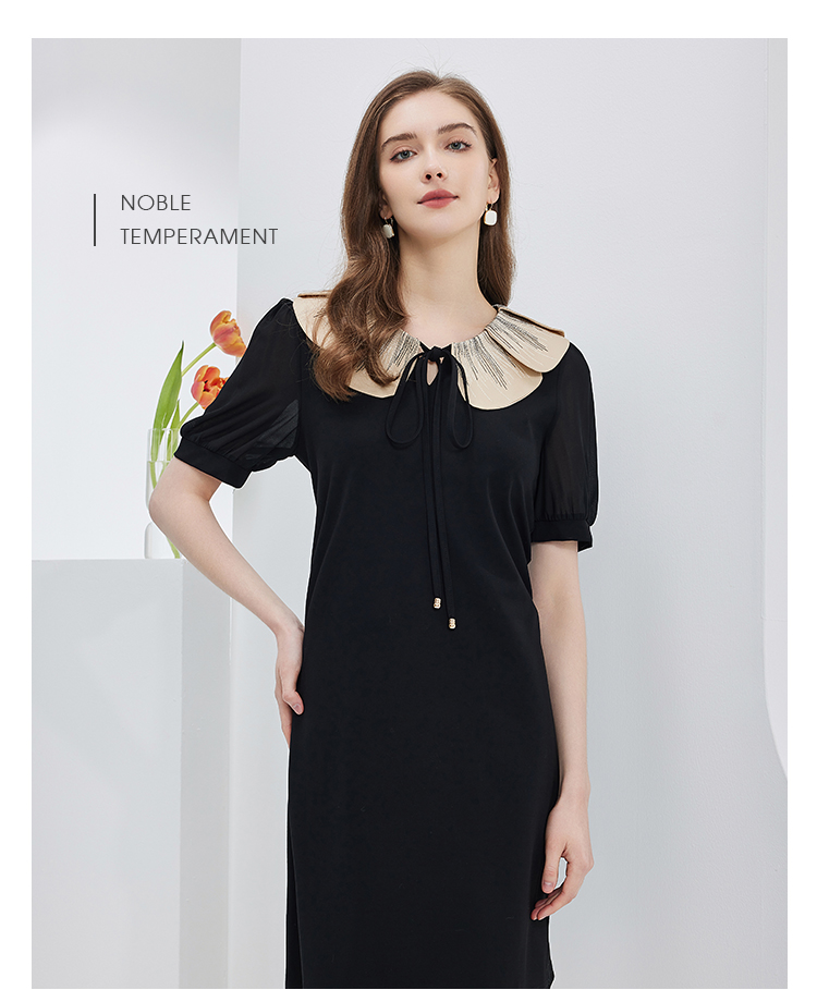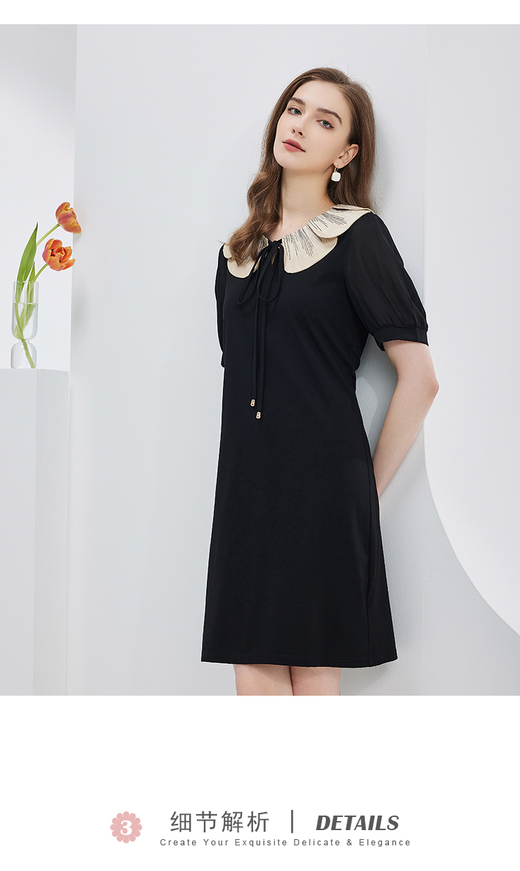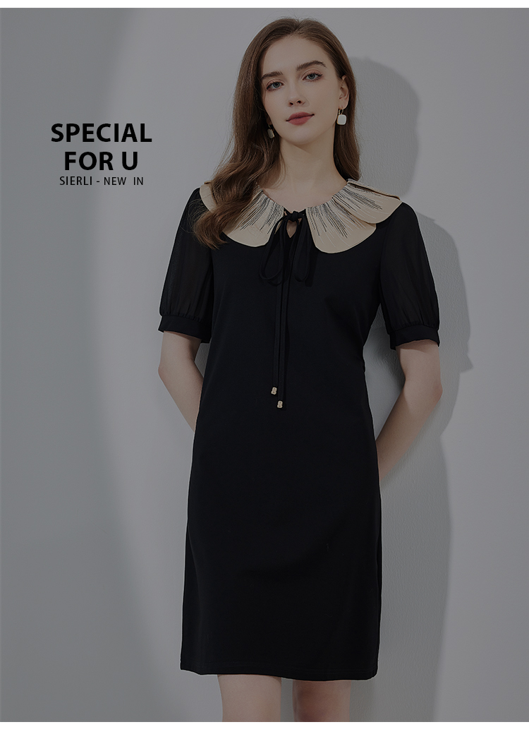 NF8C4斯尔丽瑟俪2023年花瓣设计感撞色领子减龄时尚显瘦气质活泼连衣裙