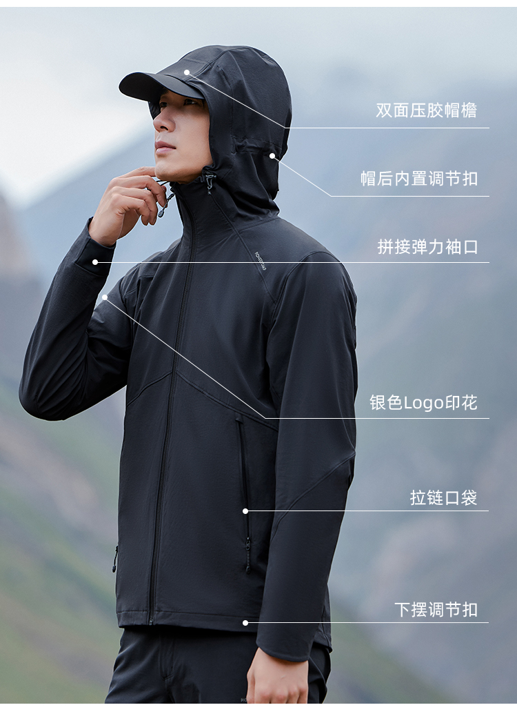 【海狮软壳衣】拓路者户外运动软壳衣男秋季连帽夹克外套(不加绒)