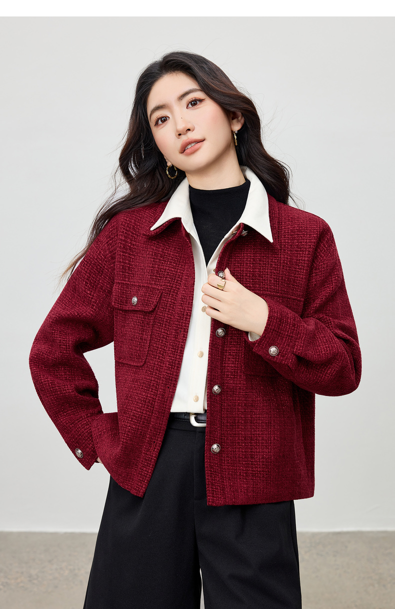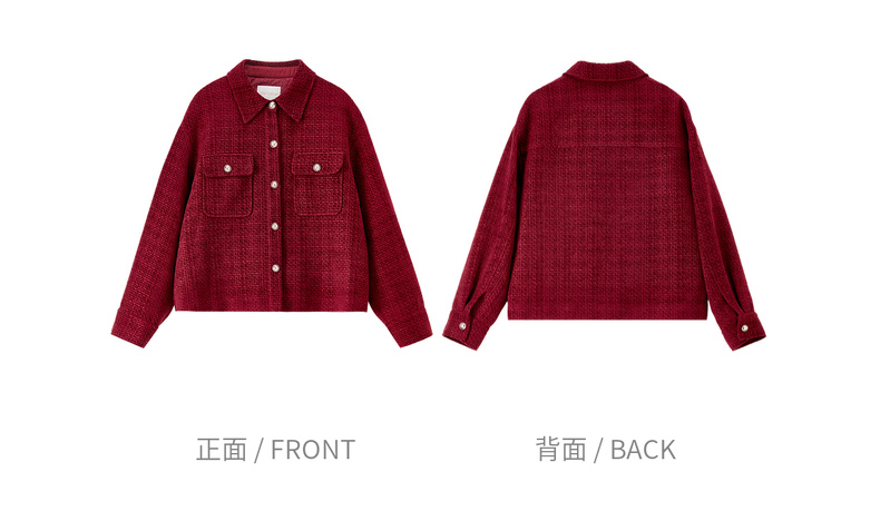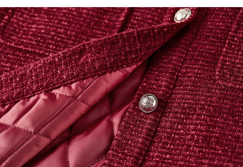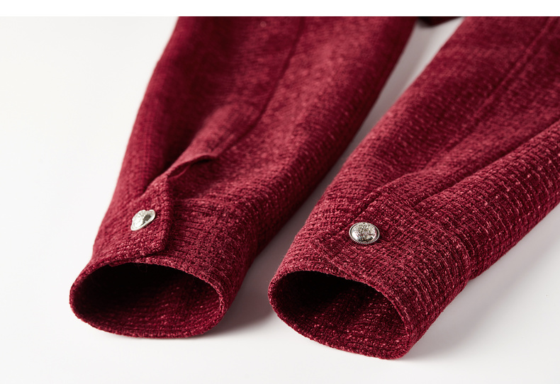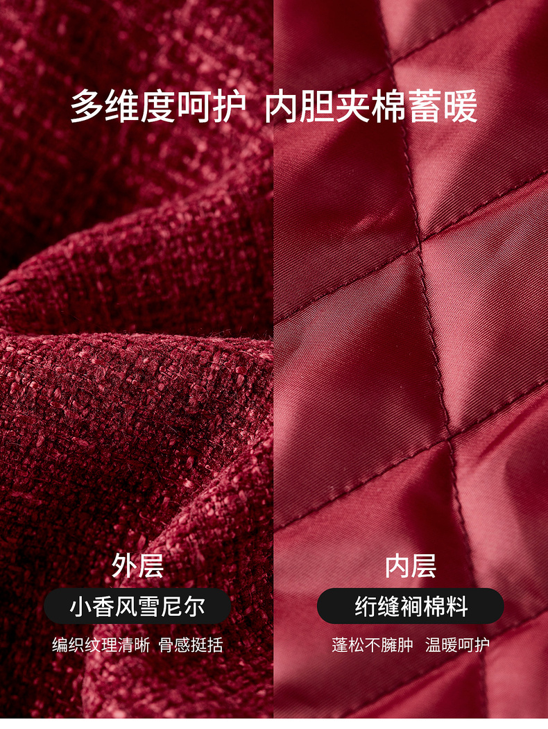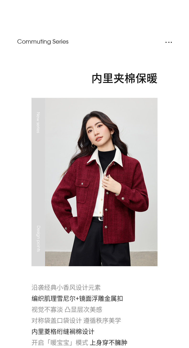 【内购】【夹棉保暖】优雅小香风翻领金属扣宽松落肩显瘦不臃肿雪尼尔外套-154WA3687
