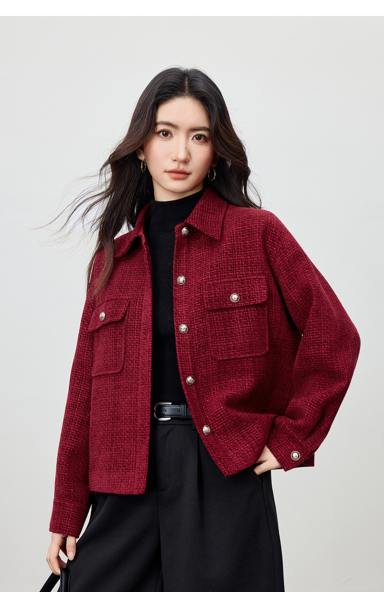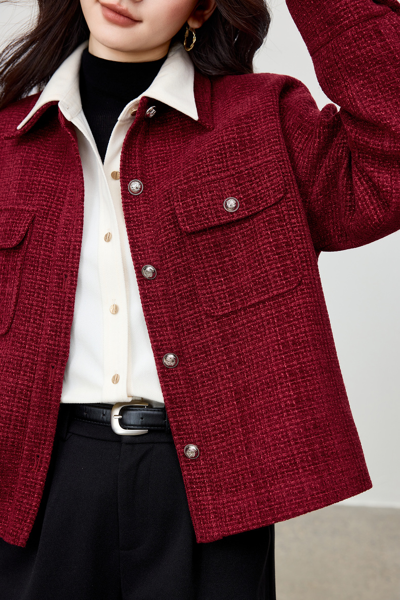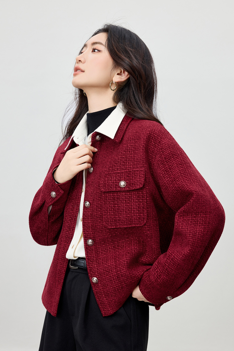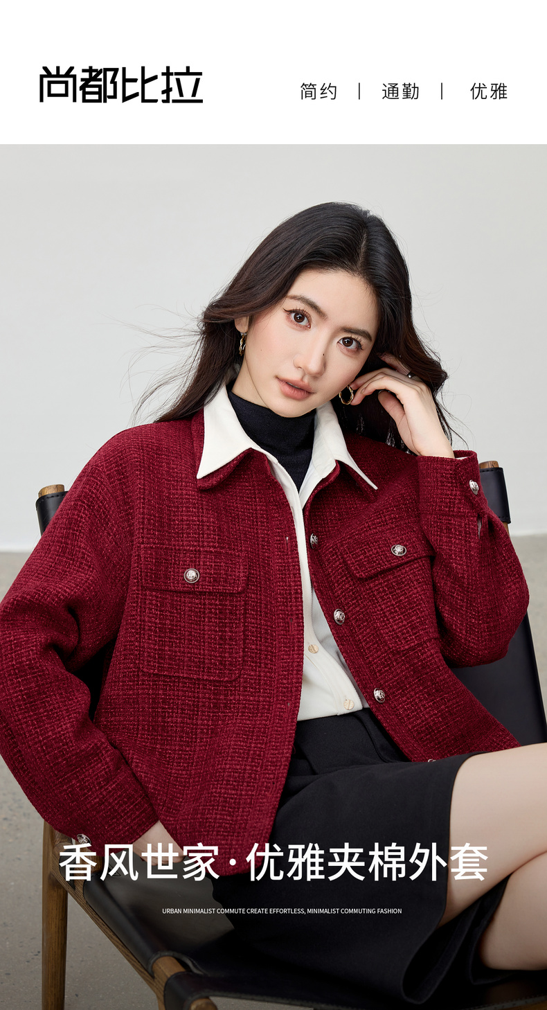 【内购】【夹棉保暖】优雅小香风翻领金属扣宽松落肩显瘦不臃肿雪尼尔外套-154WA3687