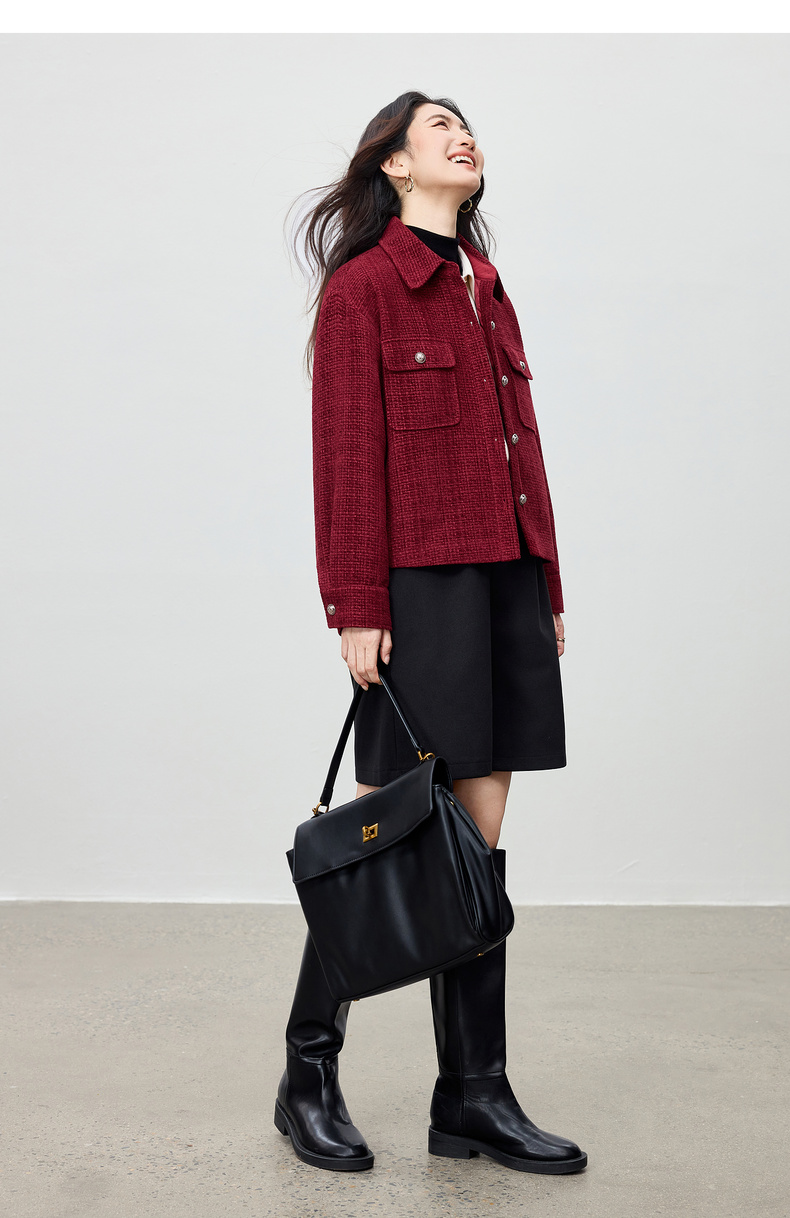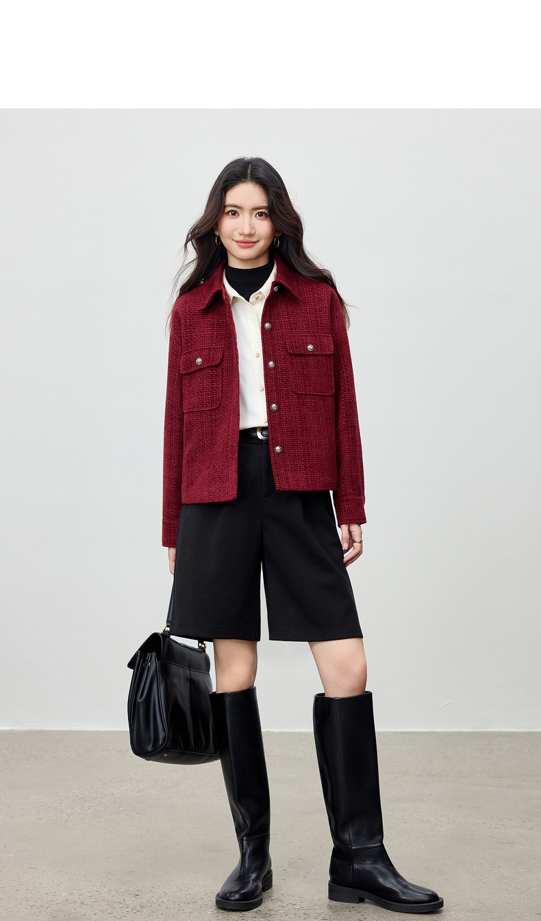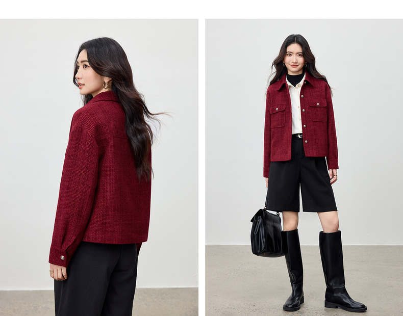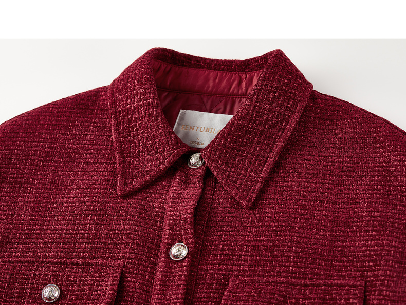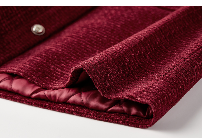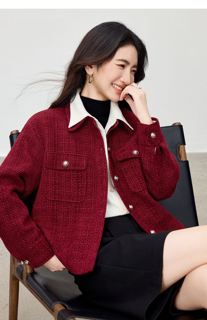 【内购】【夹棉保暖】优雅小香风翻领金属扣宽松落肩显瘦不臃肿雪尼尔外套-154WA3687