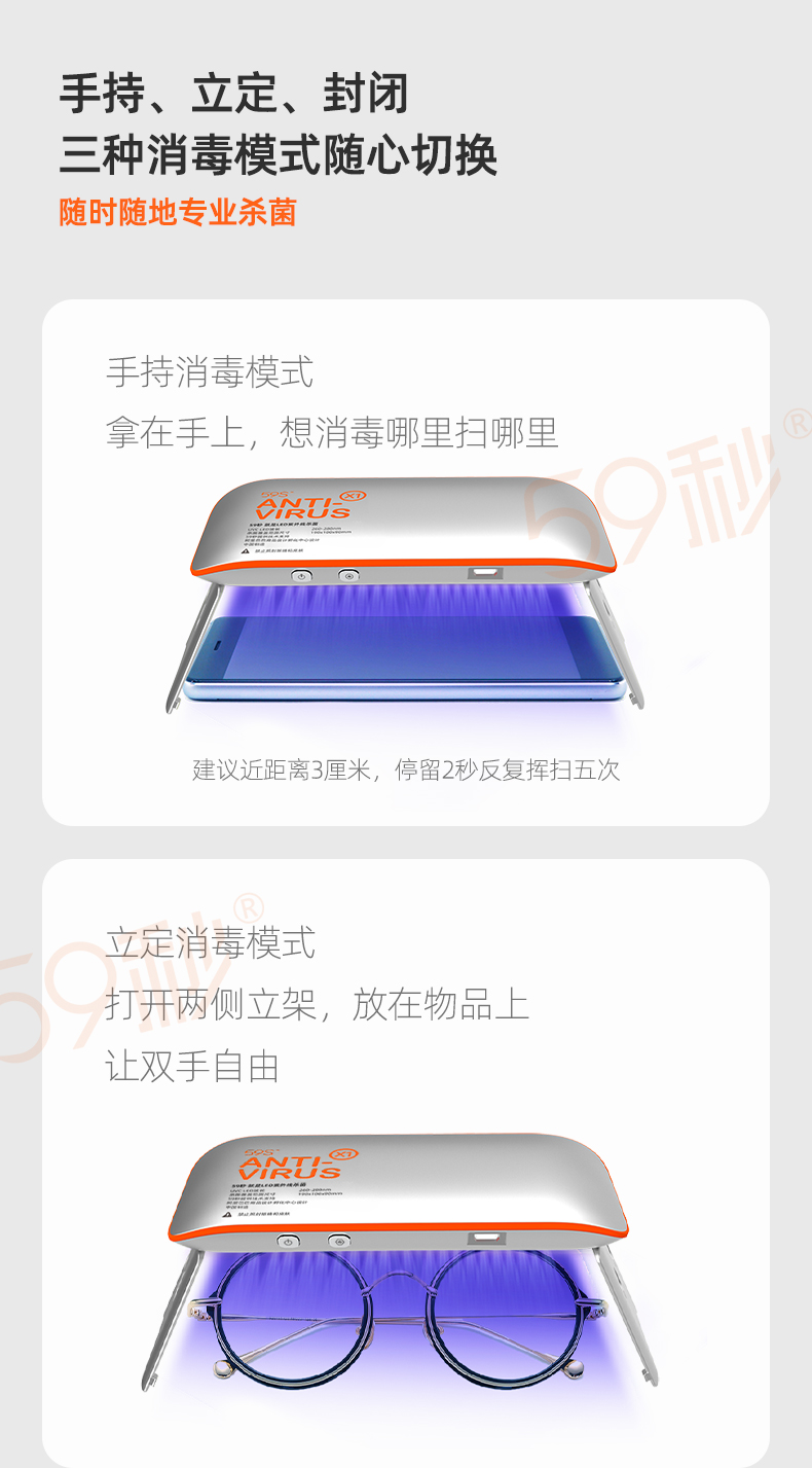 【59秒便携式消毒机】X1升级款迷你手持式家用砧板菜刀具空调手机眼镜钥匙手表电脑文具盒铅笔中小学生随身餐具碗筷子水杯子保温饭盒奶瓶奶嘴牙刷玩具户外出差旅行旅游美妆婴儿童宝宝LED紫外线杀菌器