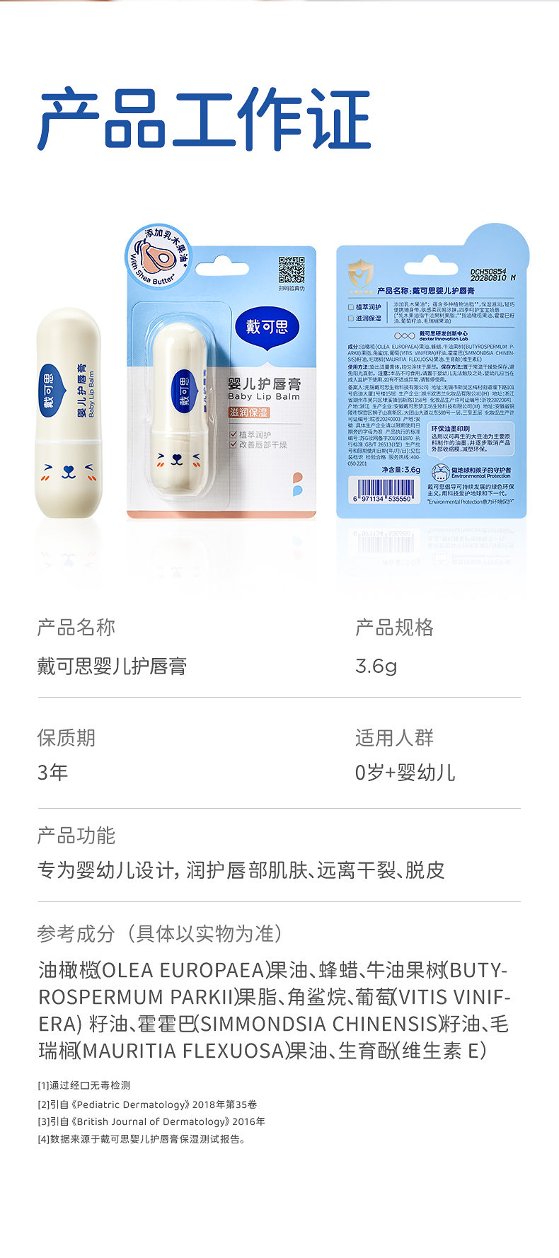 戴可思儿童润唇膏保湿滋润倍护润唇防干裂+护唇维生素精华油 组合♥