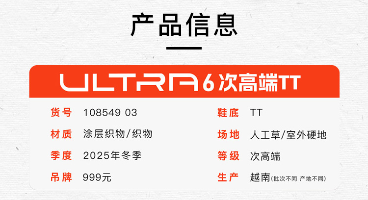 小李子PUMA彪马ULTRA6次顶TT碎钉成人运动训练足球鞋男108549 03