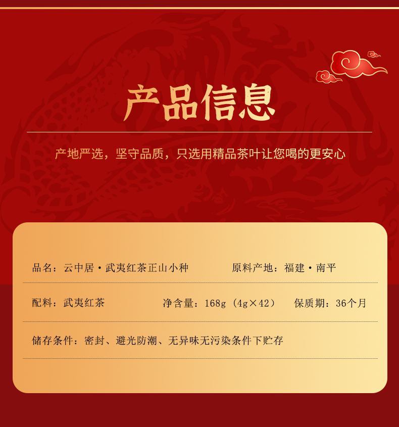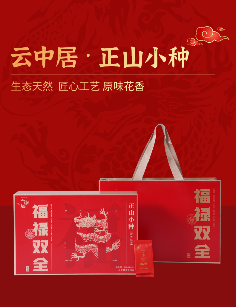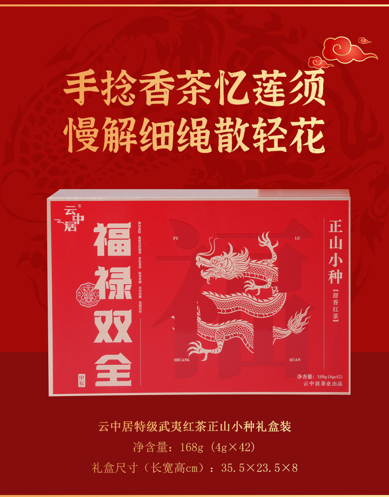 云中居鸿运系列特级武夷红茶正山小种礼盒装168g(4g×42)
