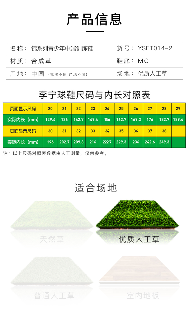 Lining/李宁锦系列中端MG短钉青少年短草地足球训练鞋男YSFT014-2