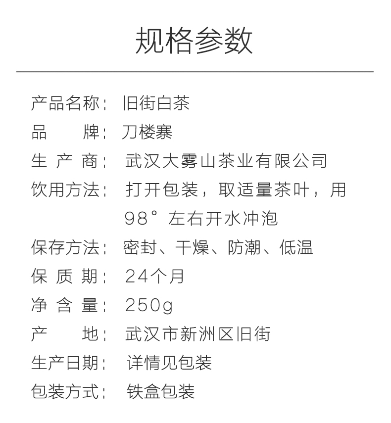 【武汉-新洲】江城百臻武汉大雾山刀楼寨旧街白茶250g礼盒装(62-5g*4罐)茶叶