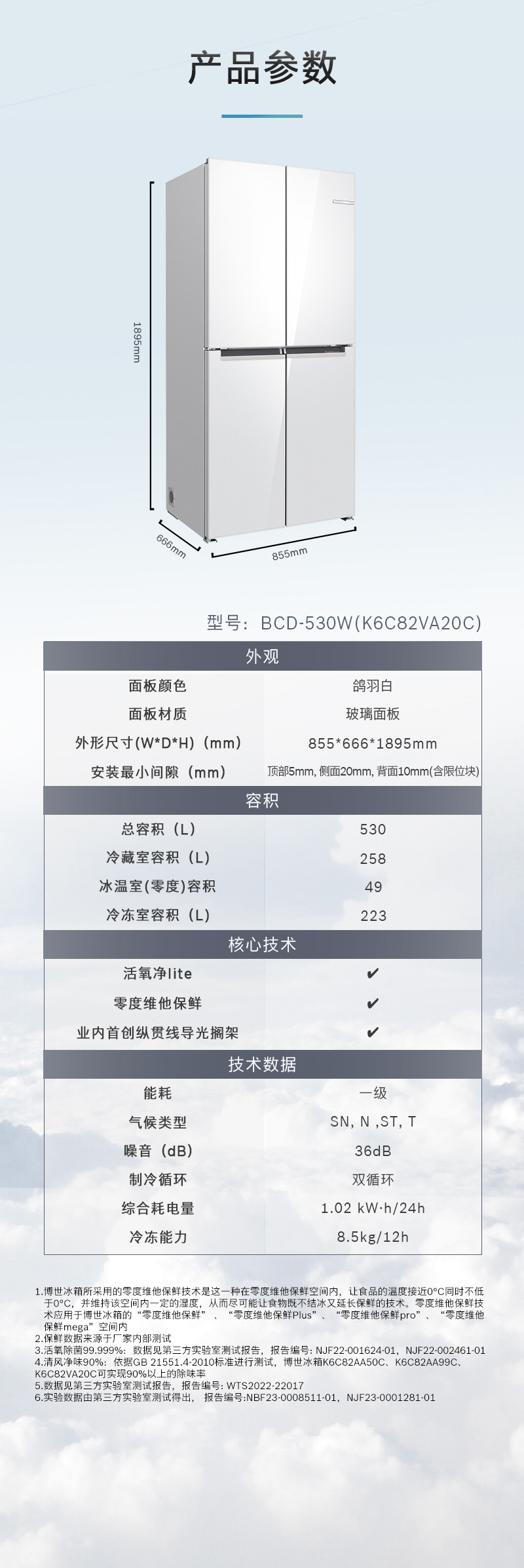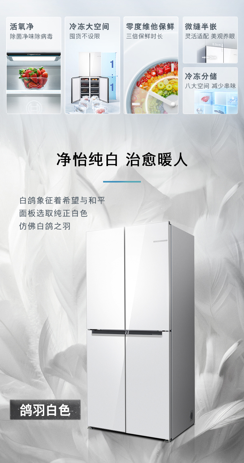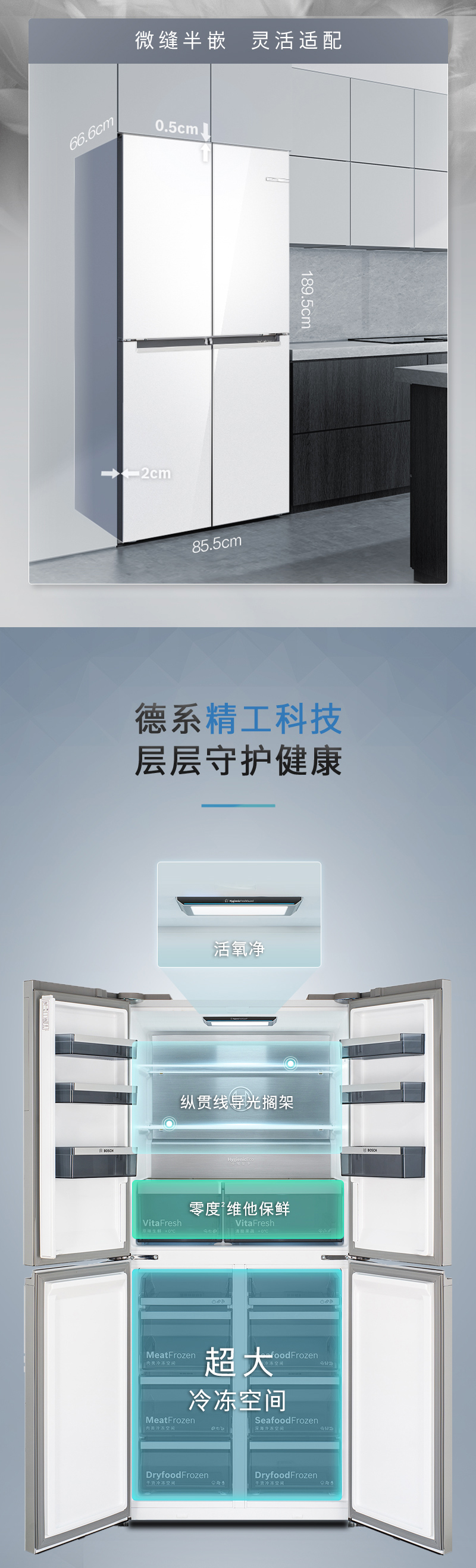 博世(BOSCH)530L十字对开门风冷冰箱 双循环零度保鲜活氧净 K6C82VA20C白色
