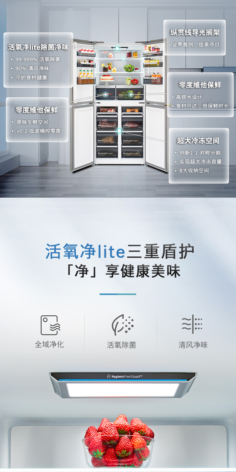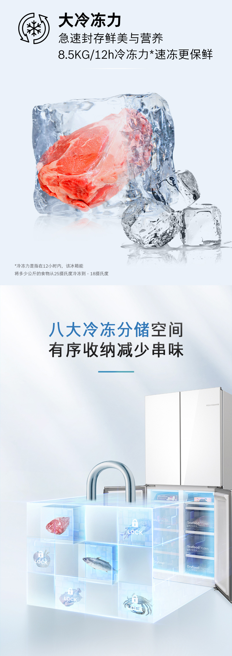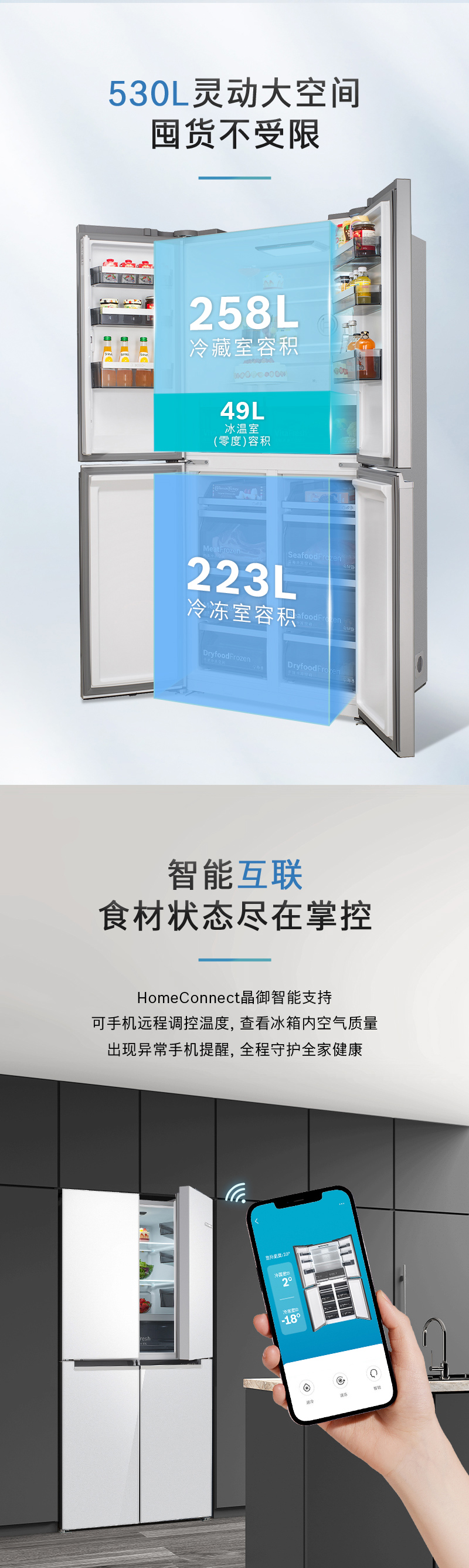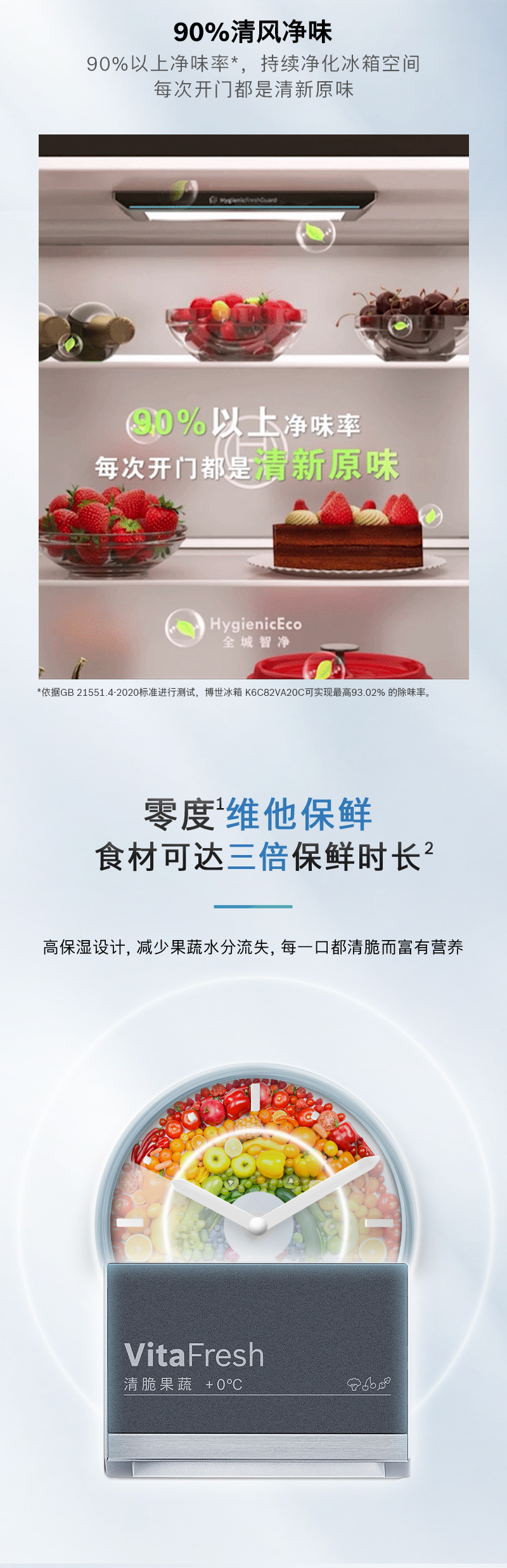 博世(BOSCH)530L十字对开门风冷冰箱 双循环零度保鲜活氧净 K6C82VA20C白色