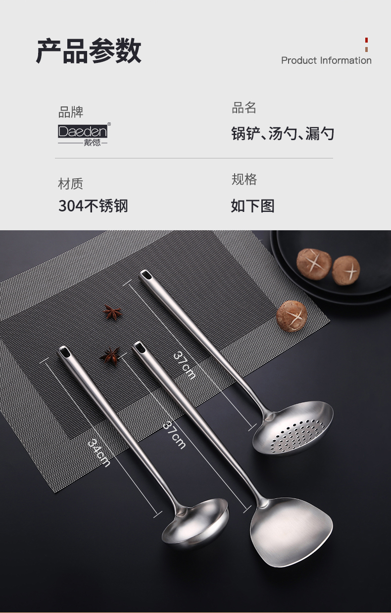 德国戴德 锈钢锅铲汤勺漏勺炒铲厨房炒勺家用厨具套装铁铲子