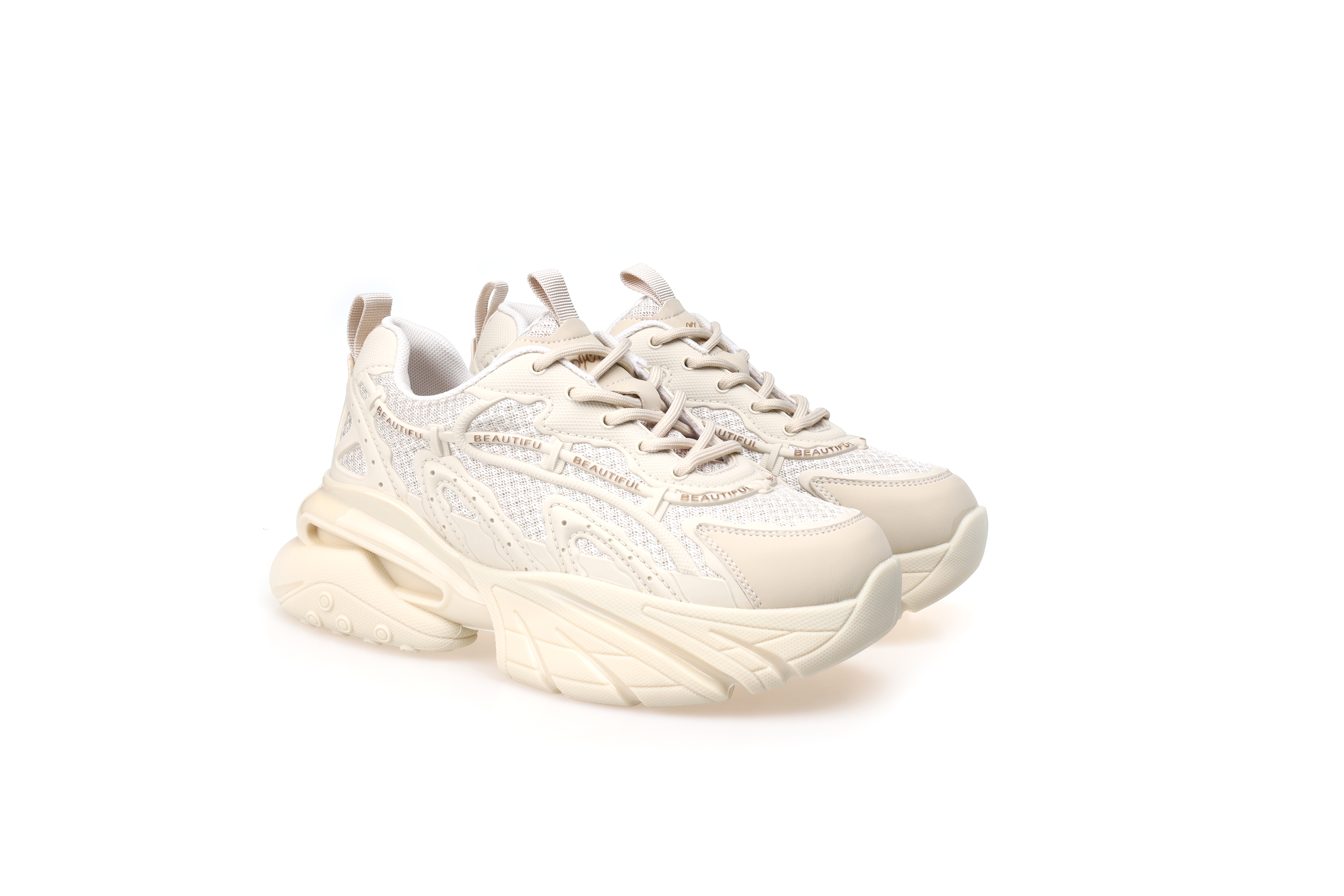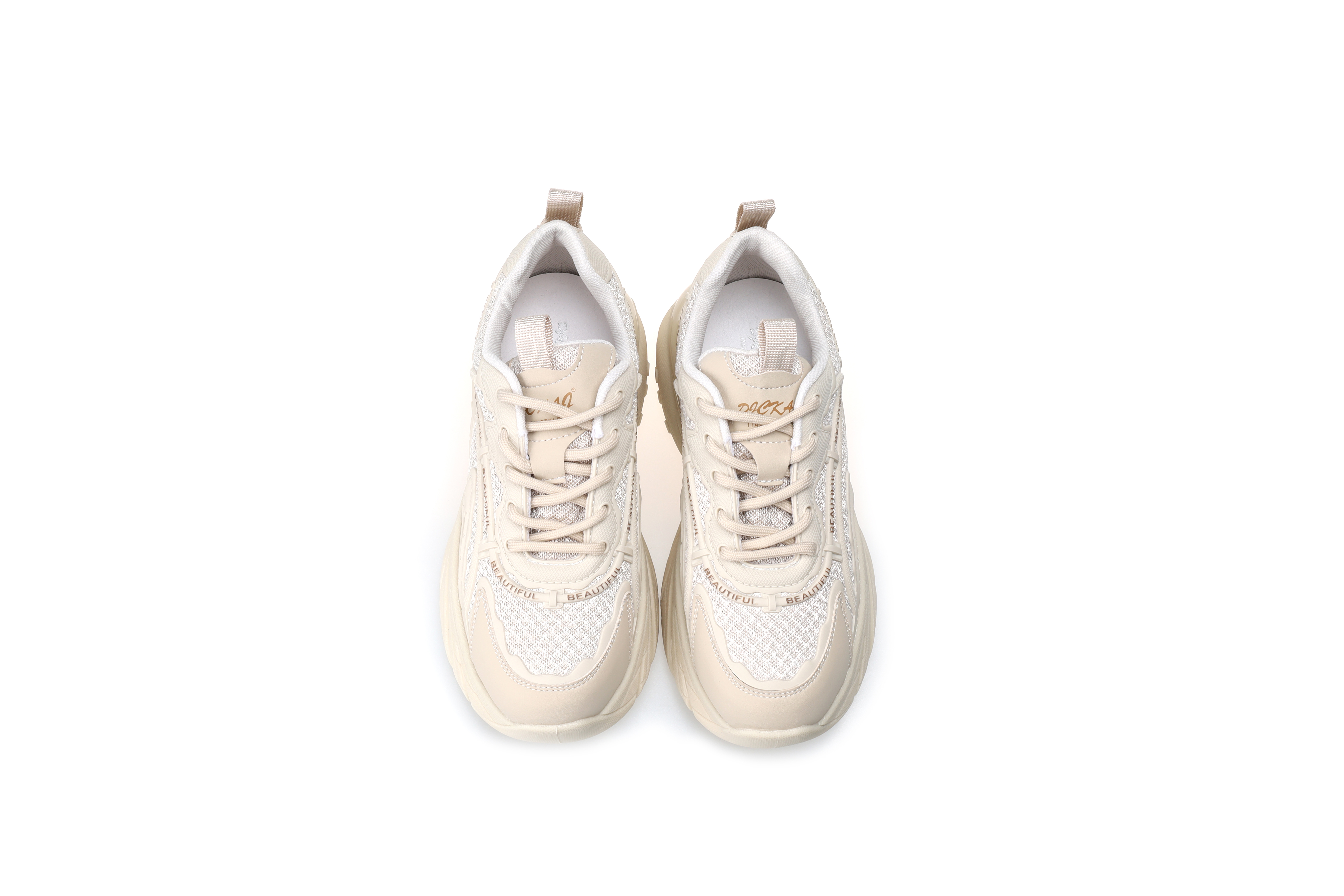 豪麟名鞋奥莱迪嘉女装牛皮革/织物时尚老爹鞋DJYSO22WX212杏色 原价1660元