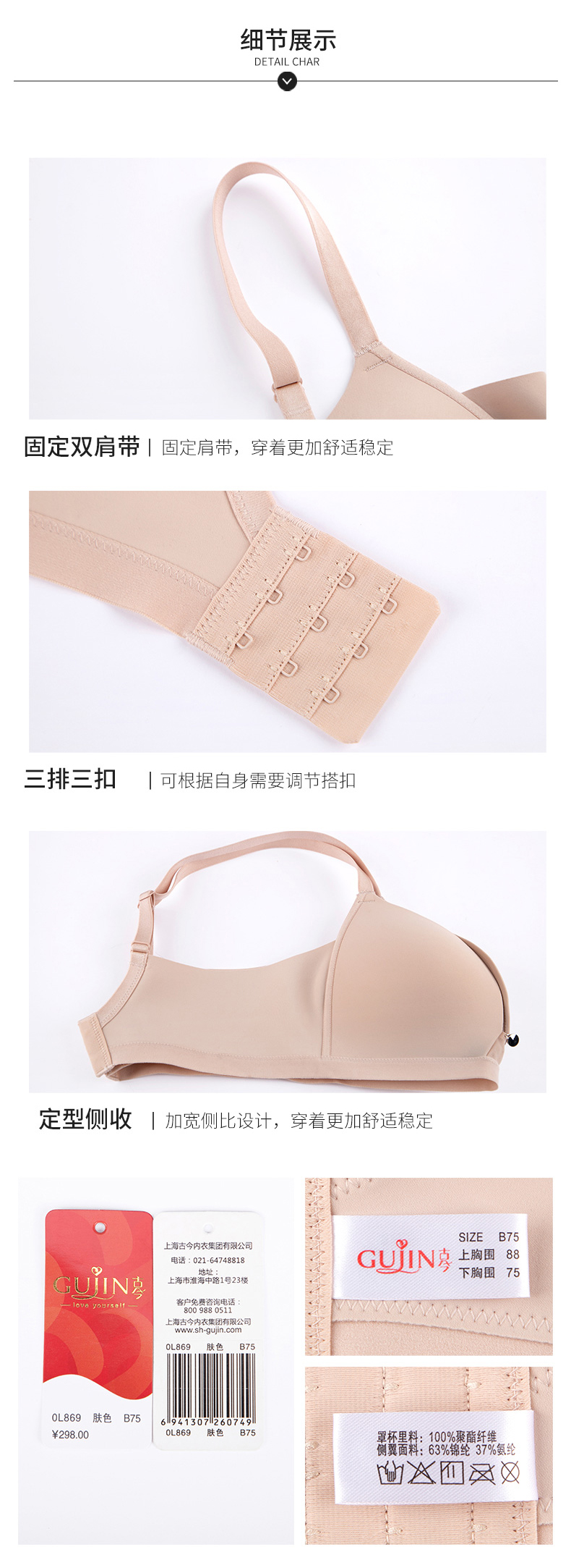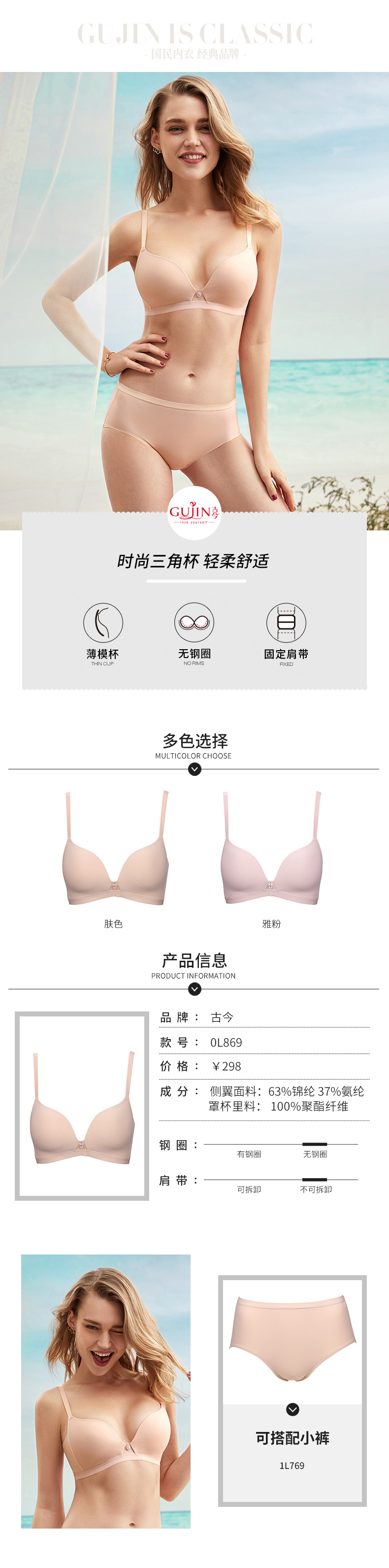 古今舒适无痕薄款无钢圈聚拢三角杯比基尼文胸罩内衣女0L869