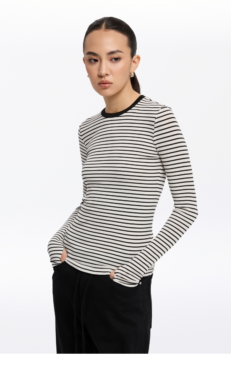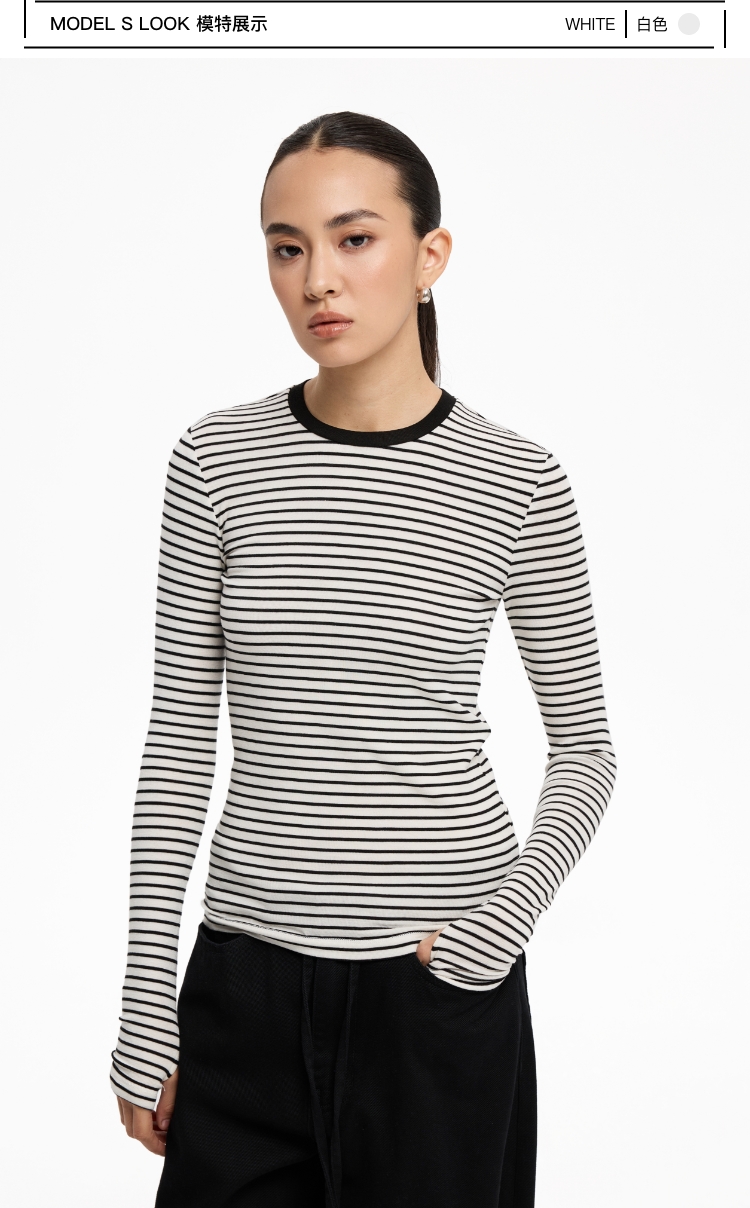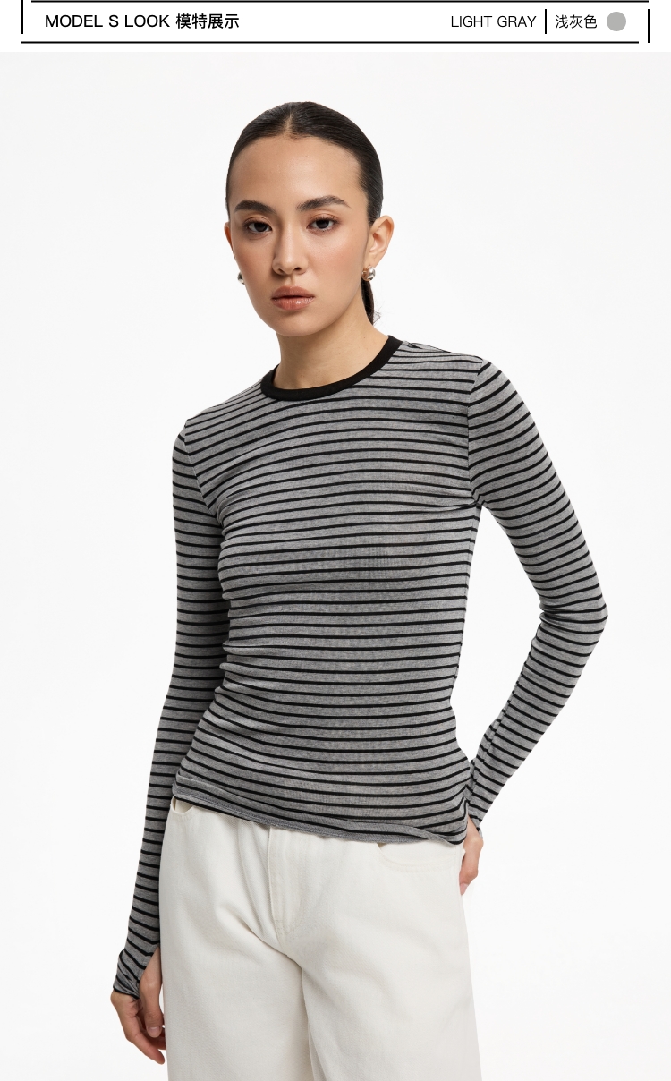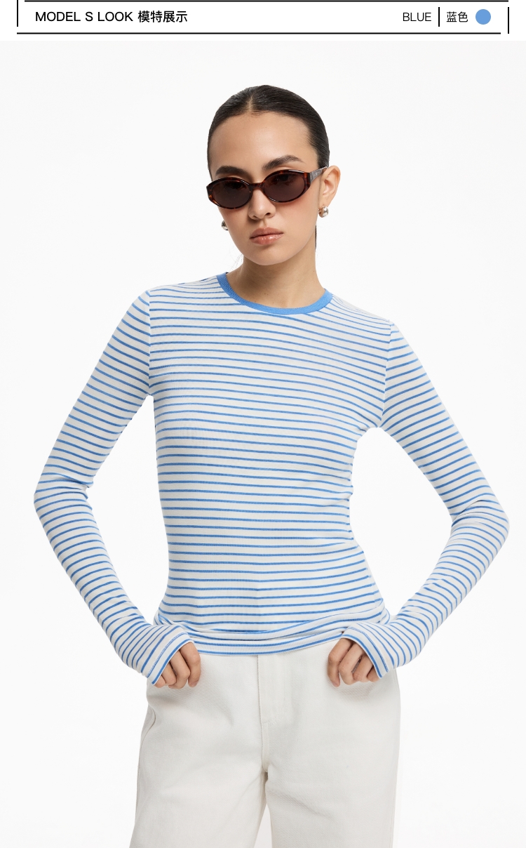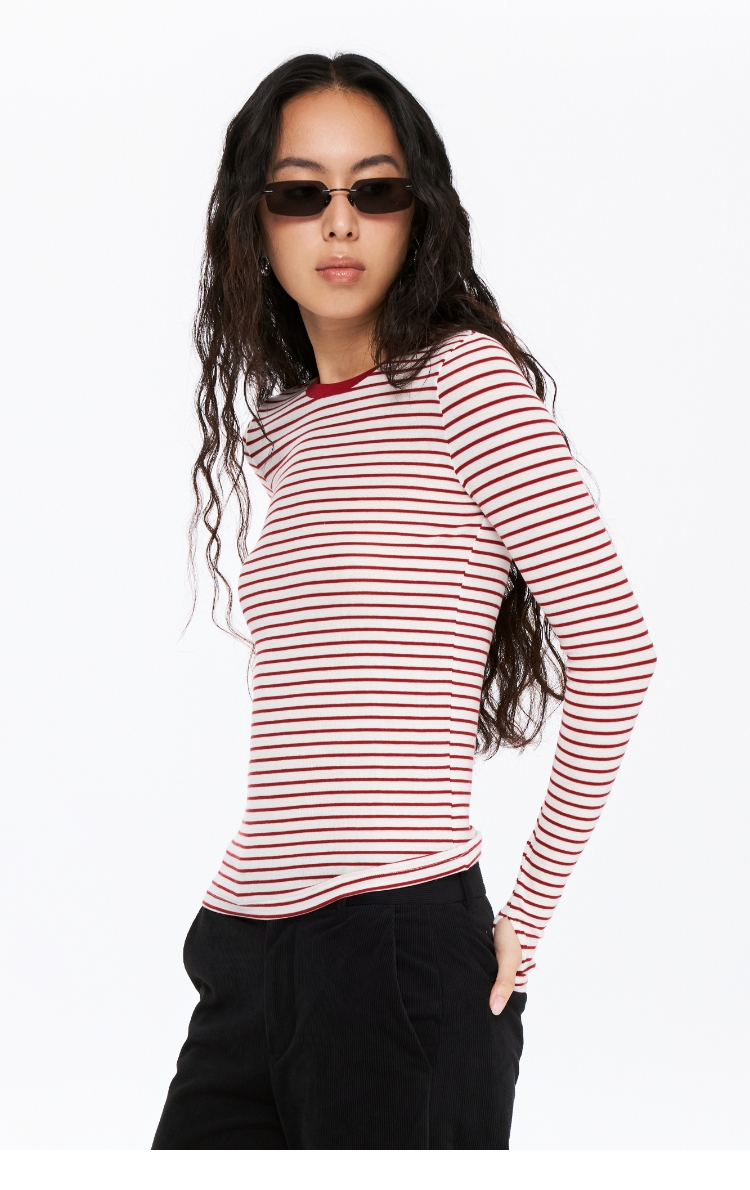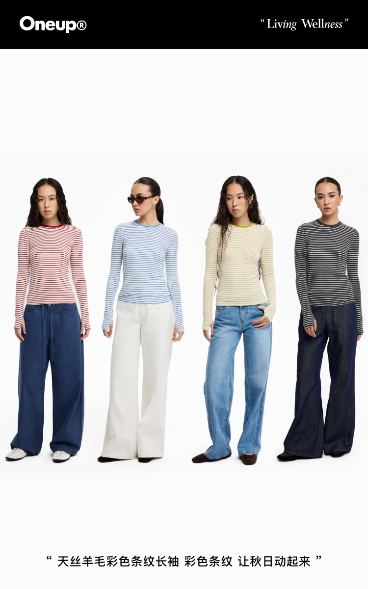 oneup天丝羊毛彩色条纹长袖
