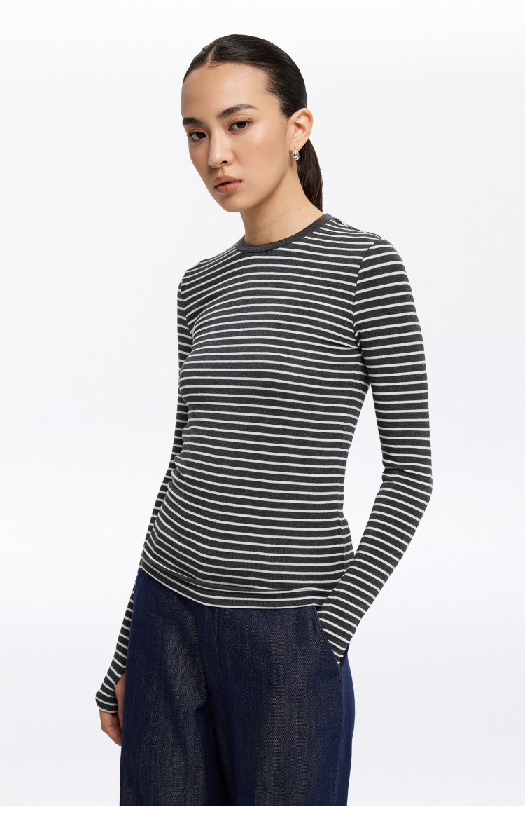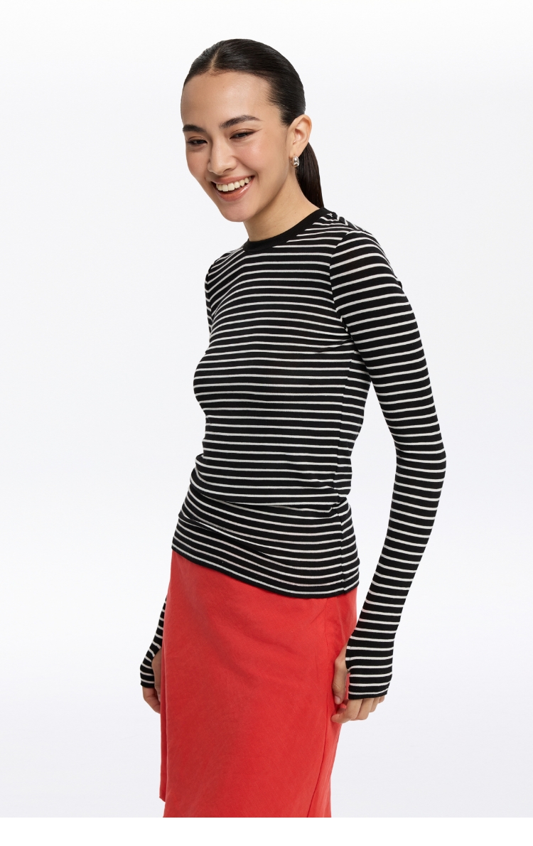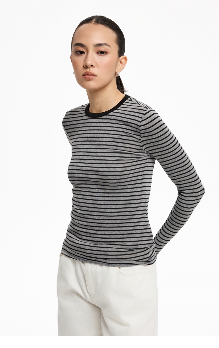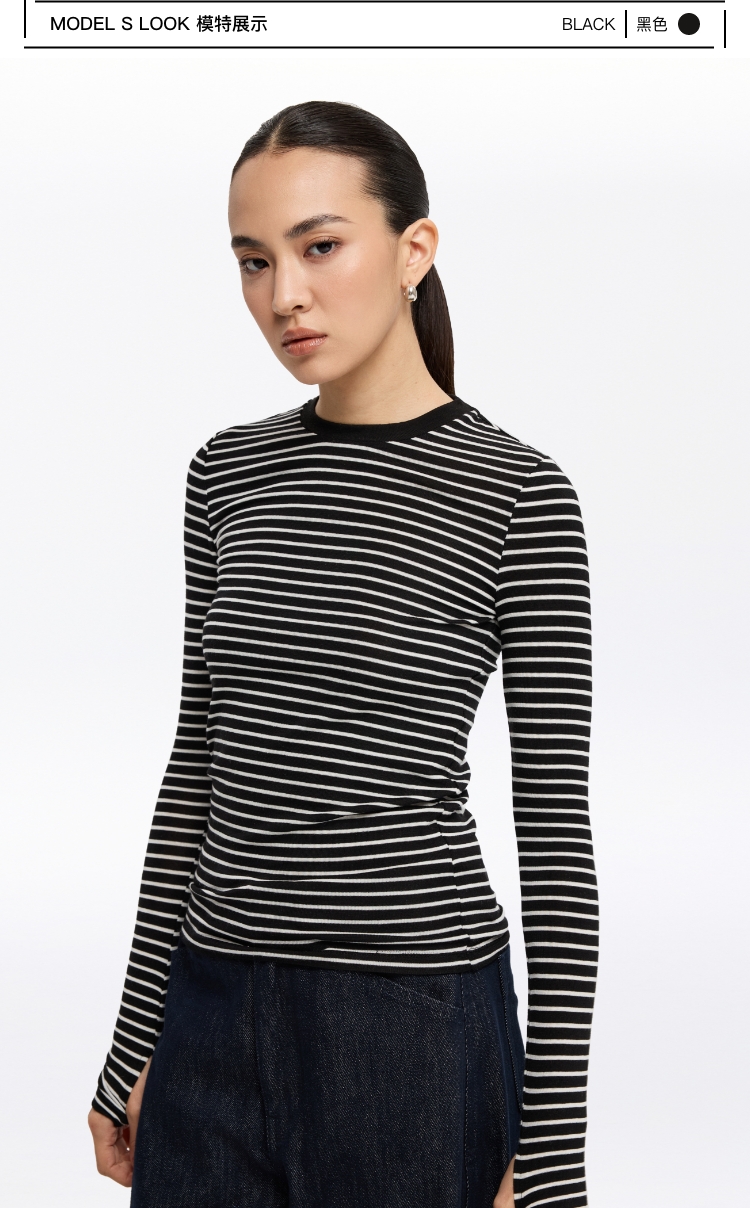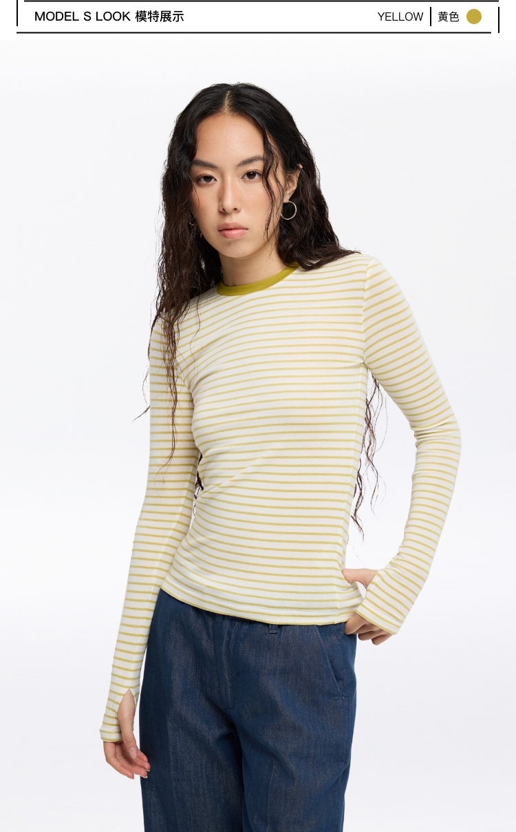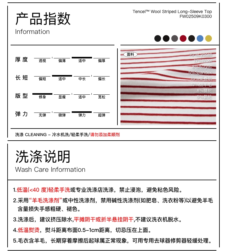 oneup天丝羊毛彩色条纹长袖