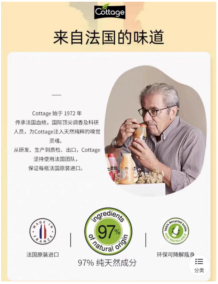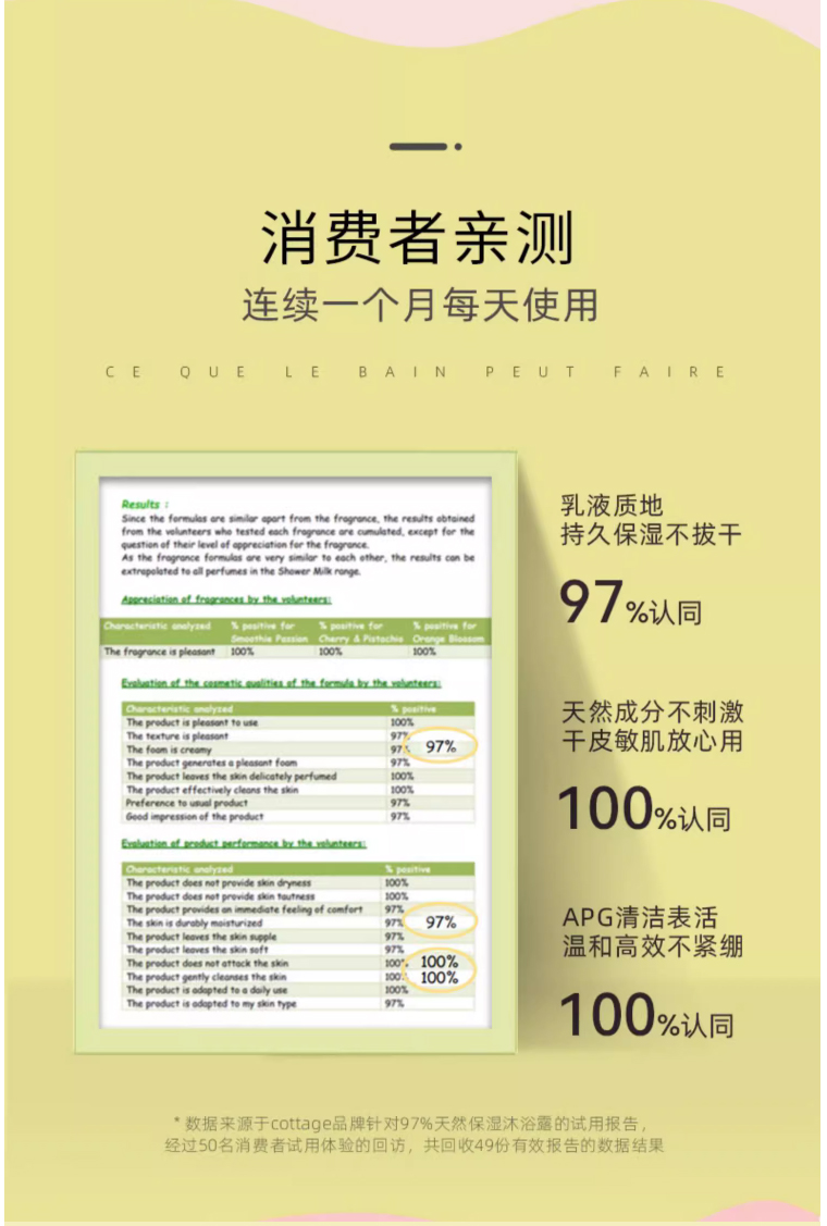 它家的沐浴露使用的是天然花果中提取的香氛,97%都是天然成分,调香真的很棒,香味很高级!
