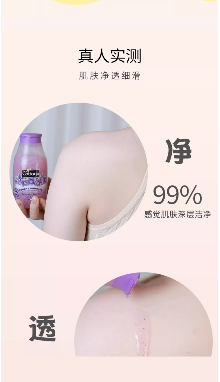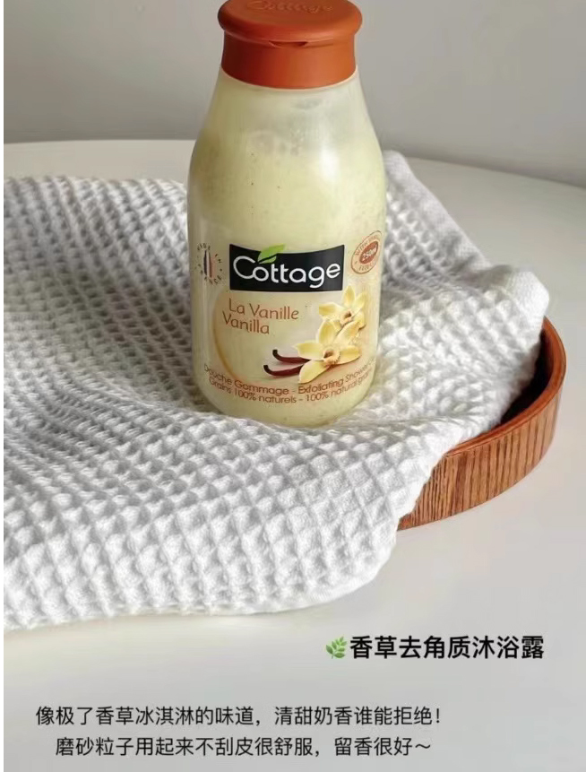 【商品名称】法国Cottage去角质沐浴露250ml 香草味