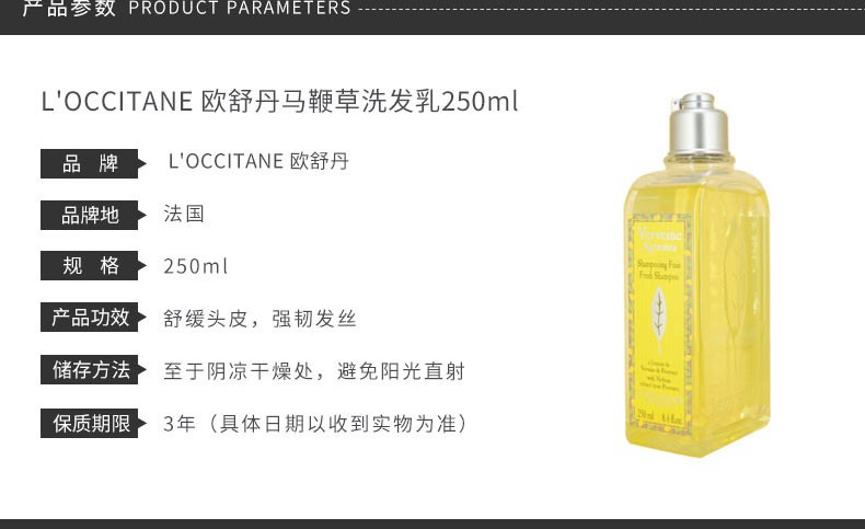 L'OCCITANE 欧舒丹 马鞭草洗发乳 250ML 法国