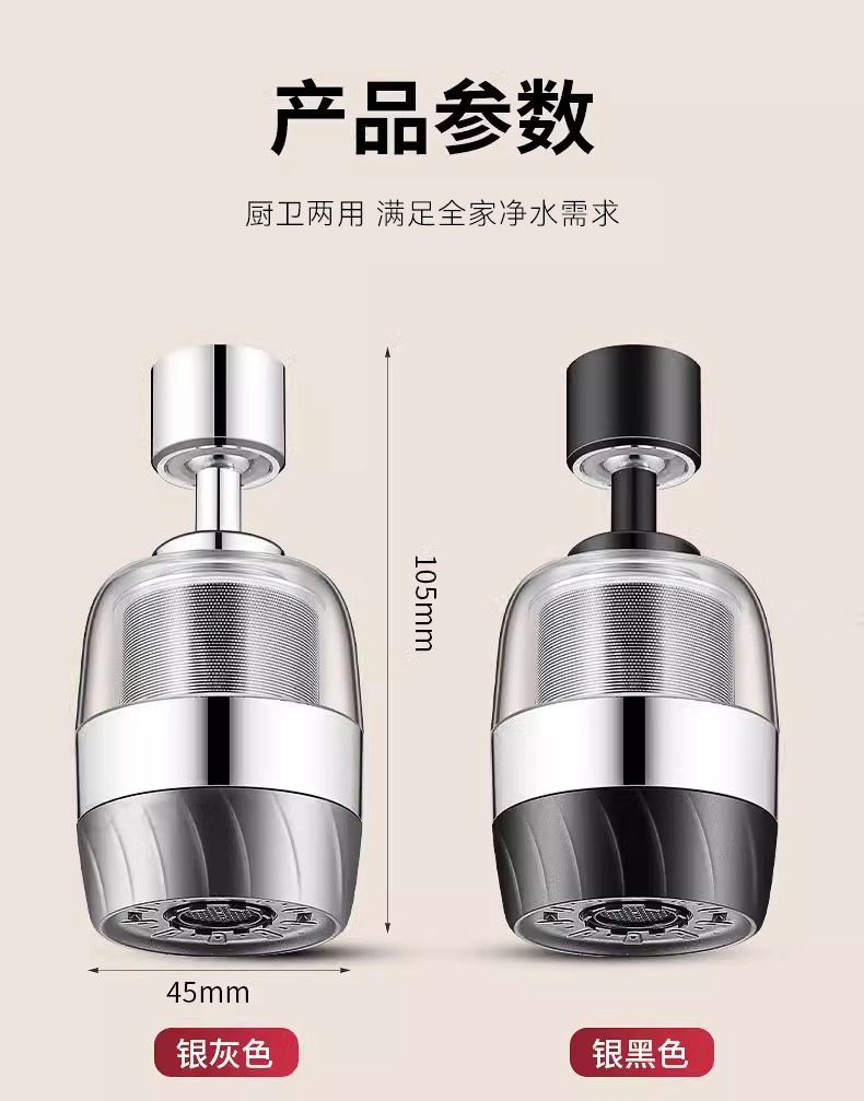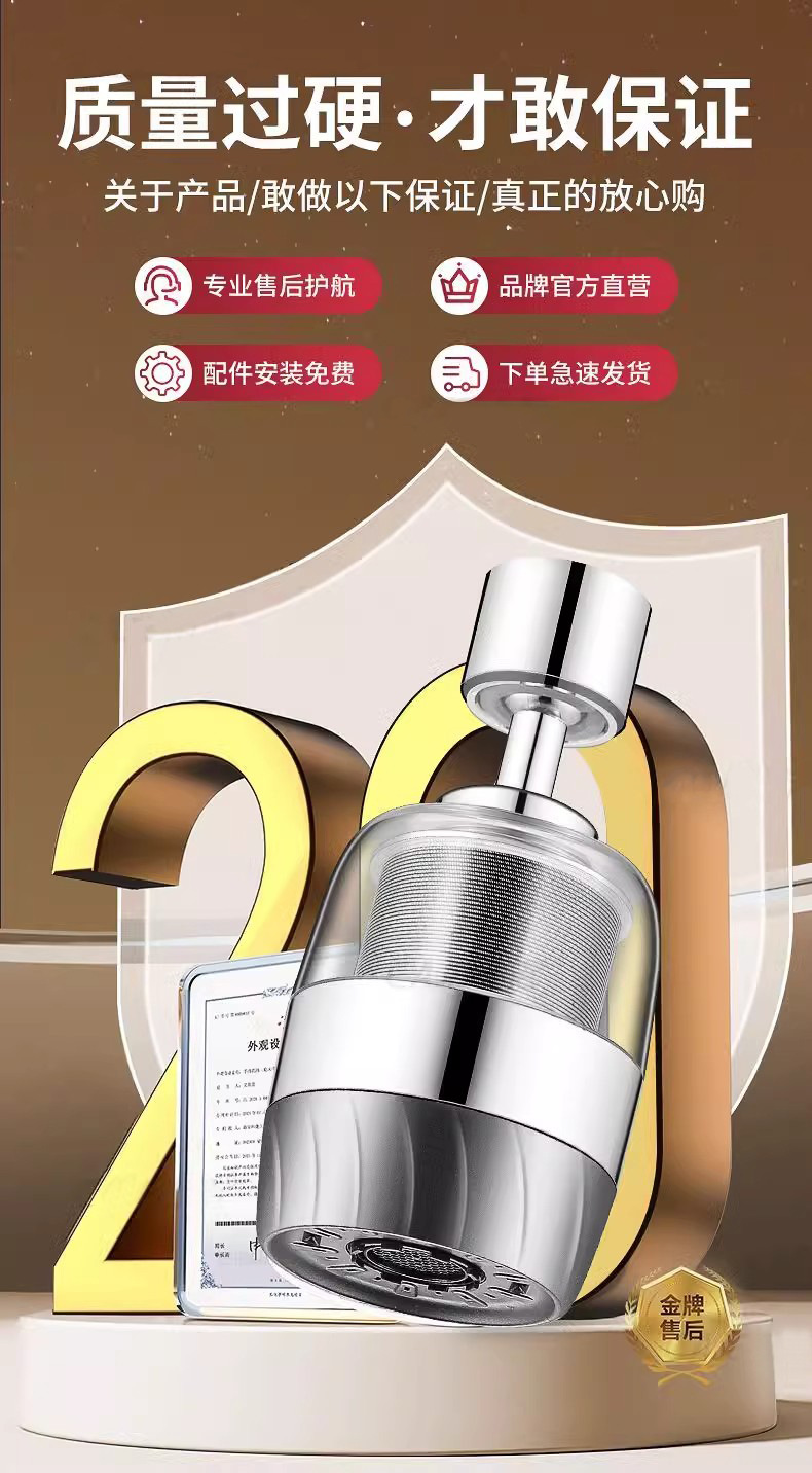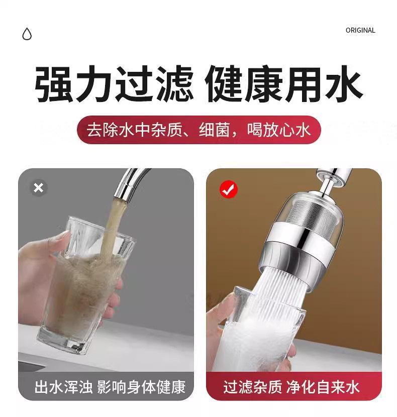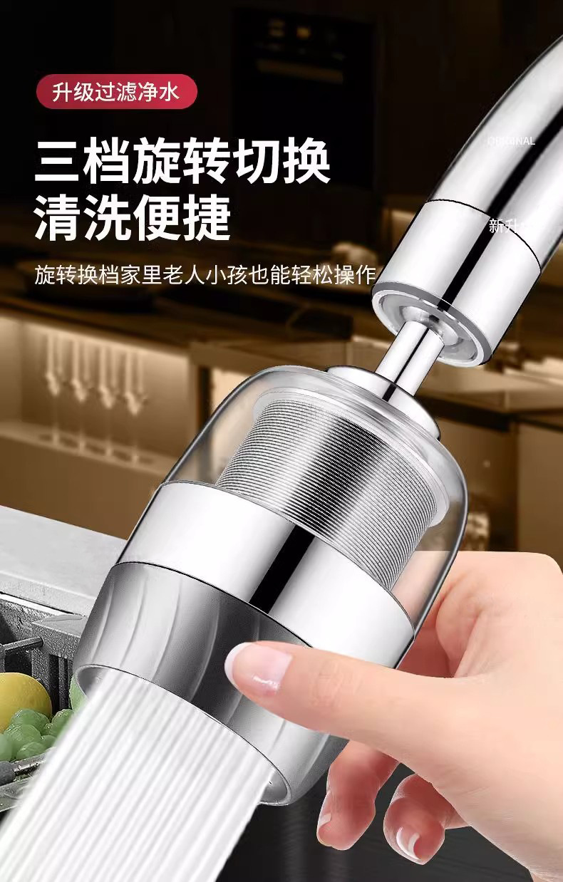 【净水黑科技💧360°旋转防溅神器✨】自来水秒变净水💦过滤杂质、余氯、异味,三档调节🚿花洒模式随心切换!30年质保,健康饮水从此安心✔️