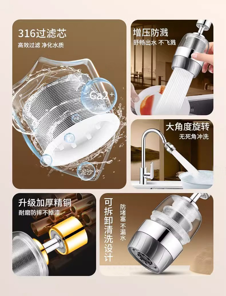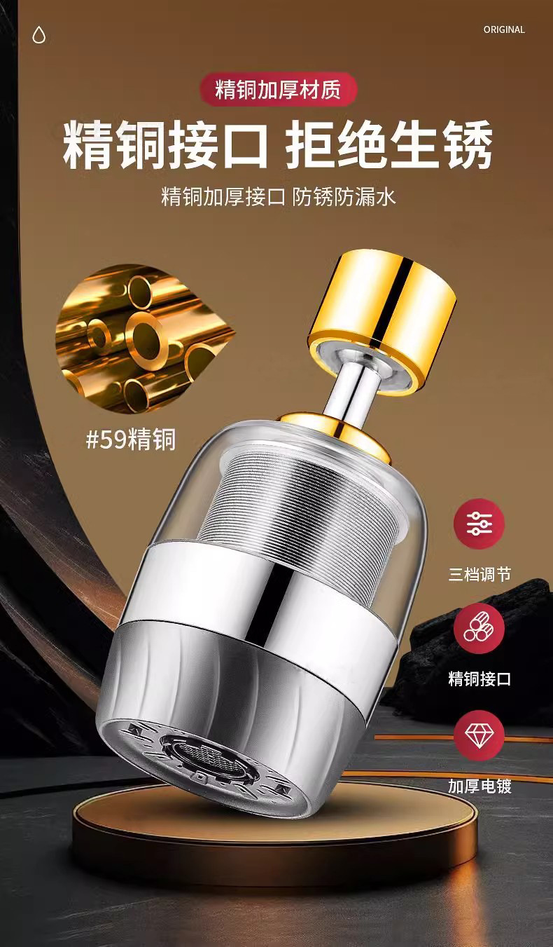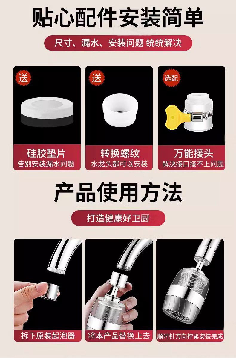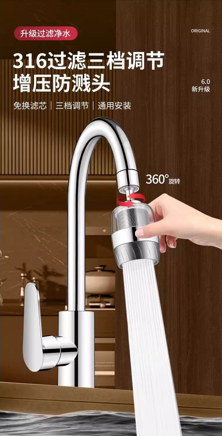 【净水黑科技💧360°旋转防溅神器✨】自来水秒变净水💦过滤杂质、余氯、异味,三档调节🚿花洒模式随心切换!30年质保,健康饮水从此安心✔️