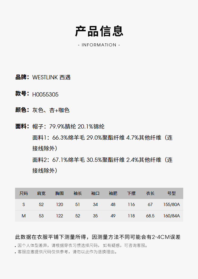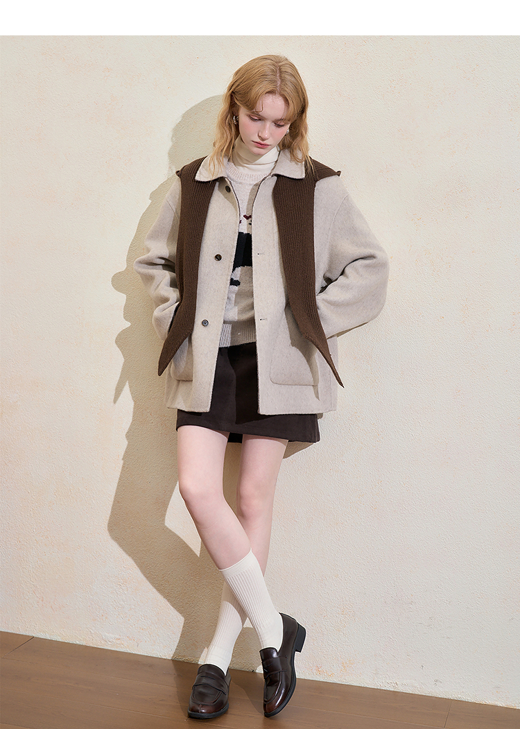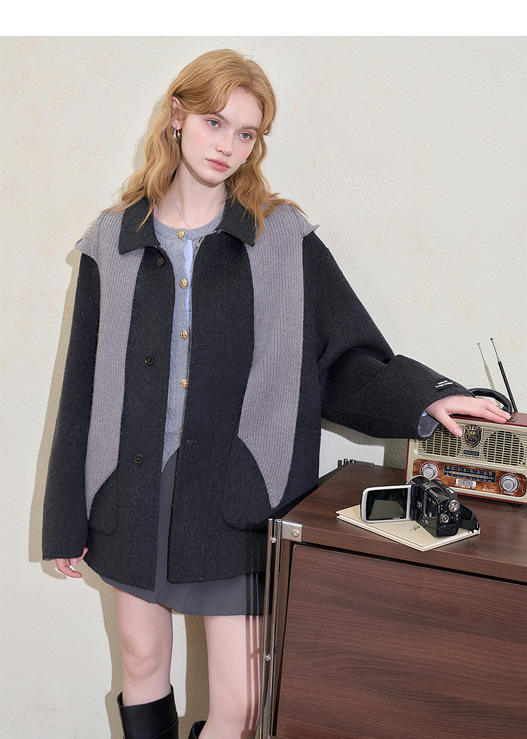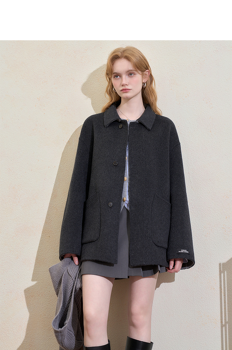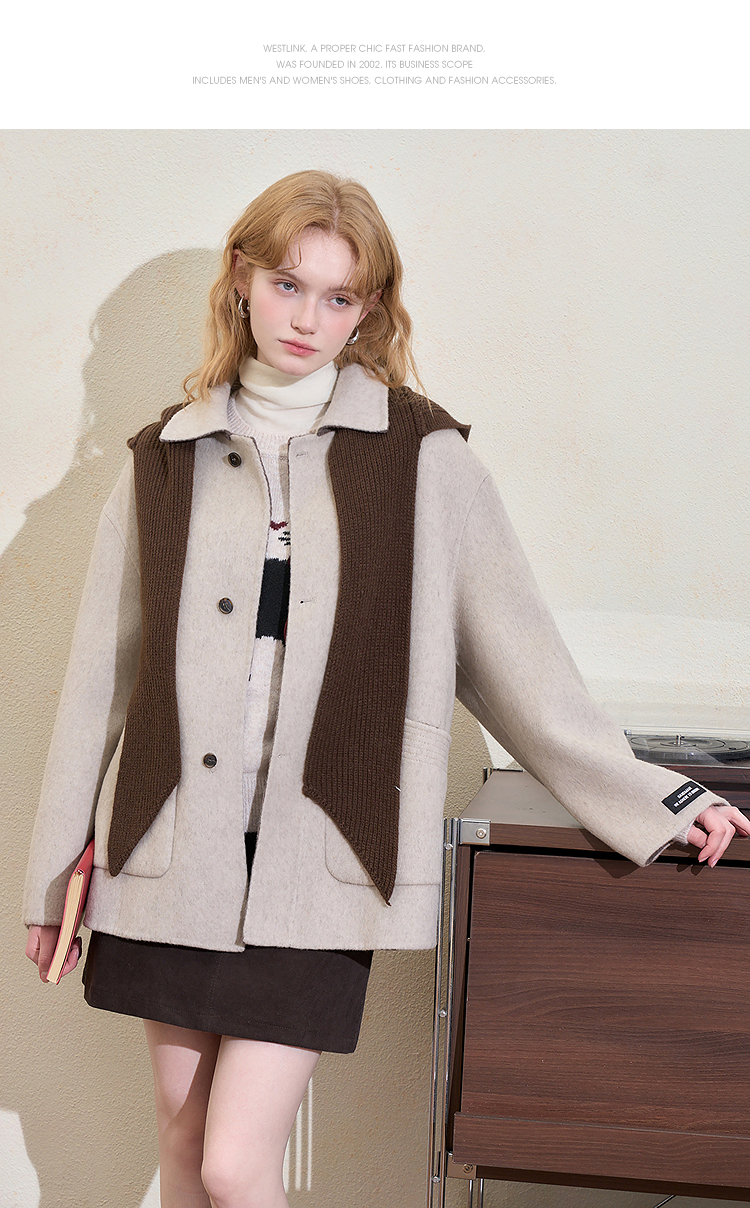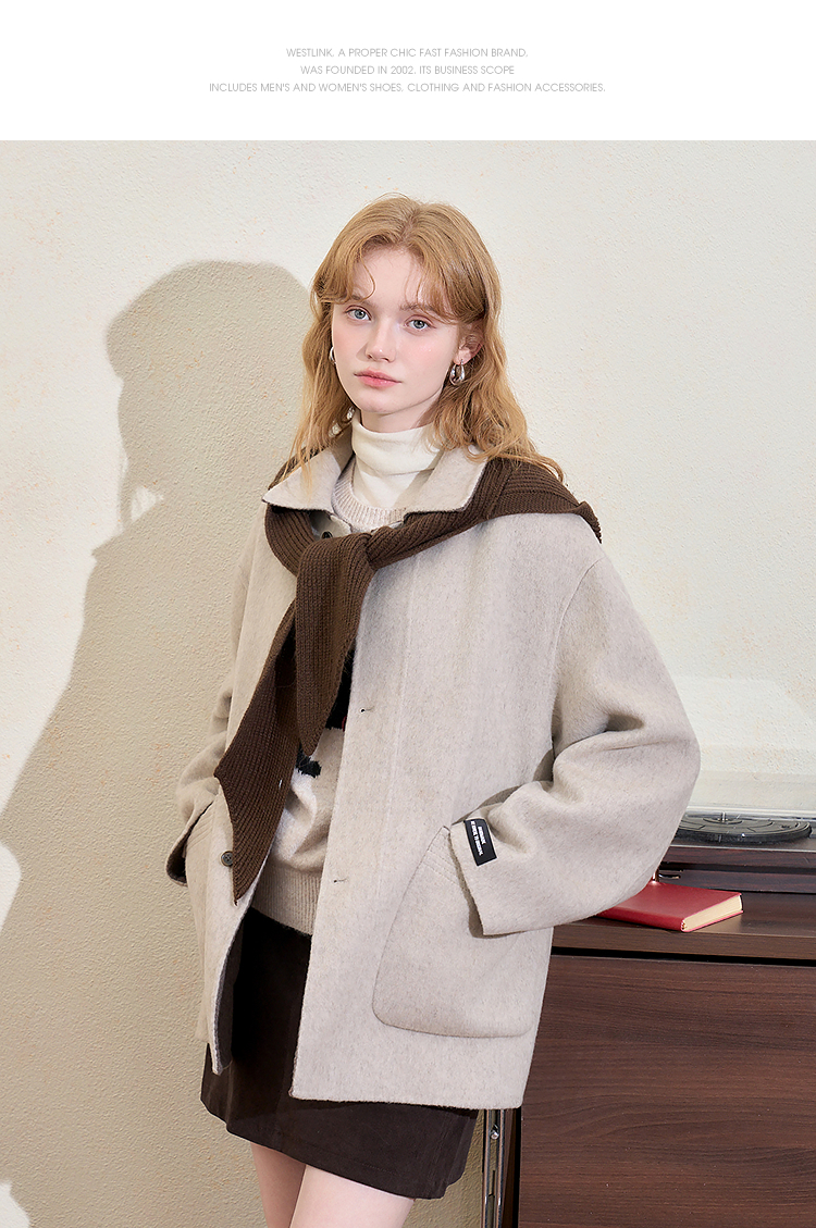 西遇复古高级披肩毛呢外套女冬季新款宽松显瘦中长款呢子大衣H0055305
