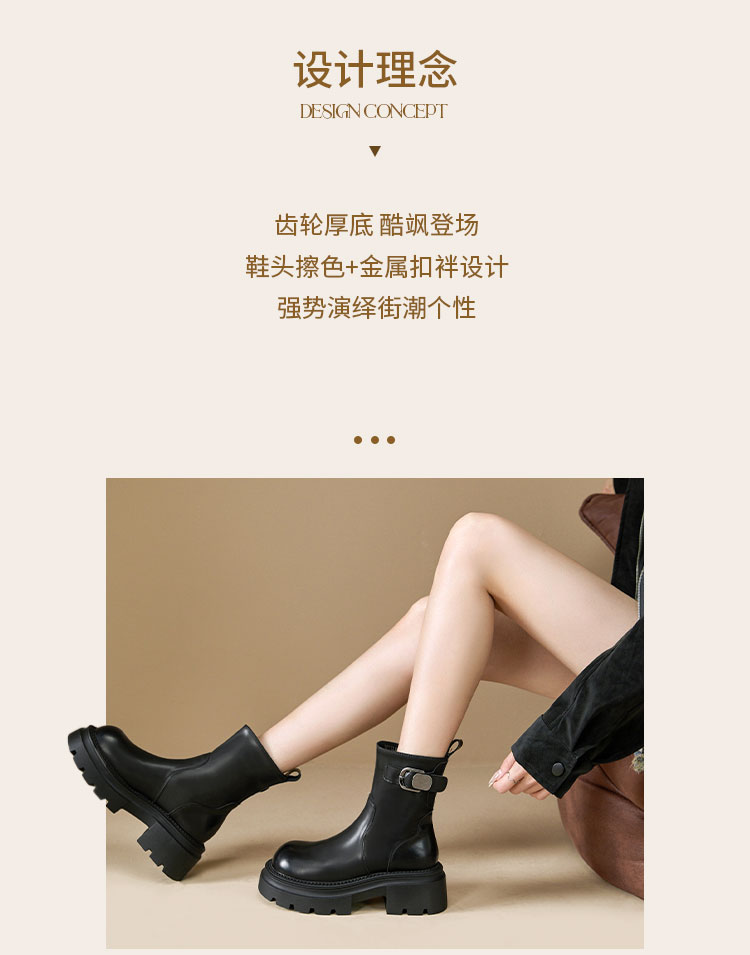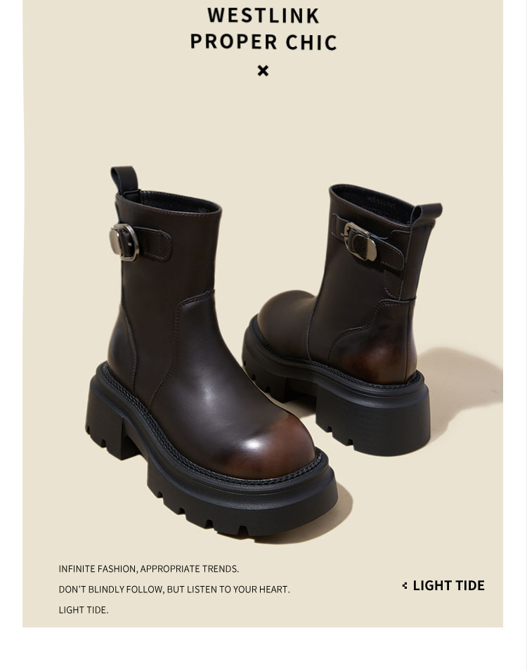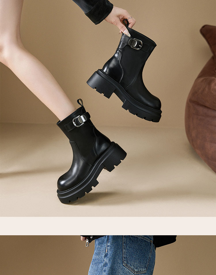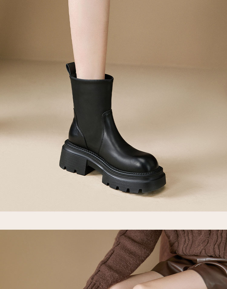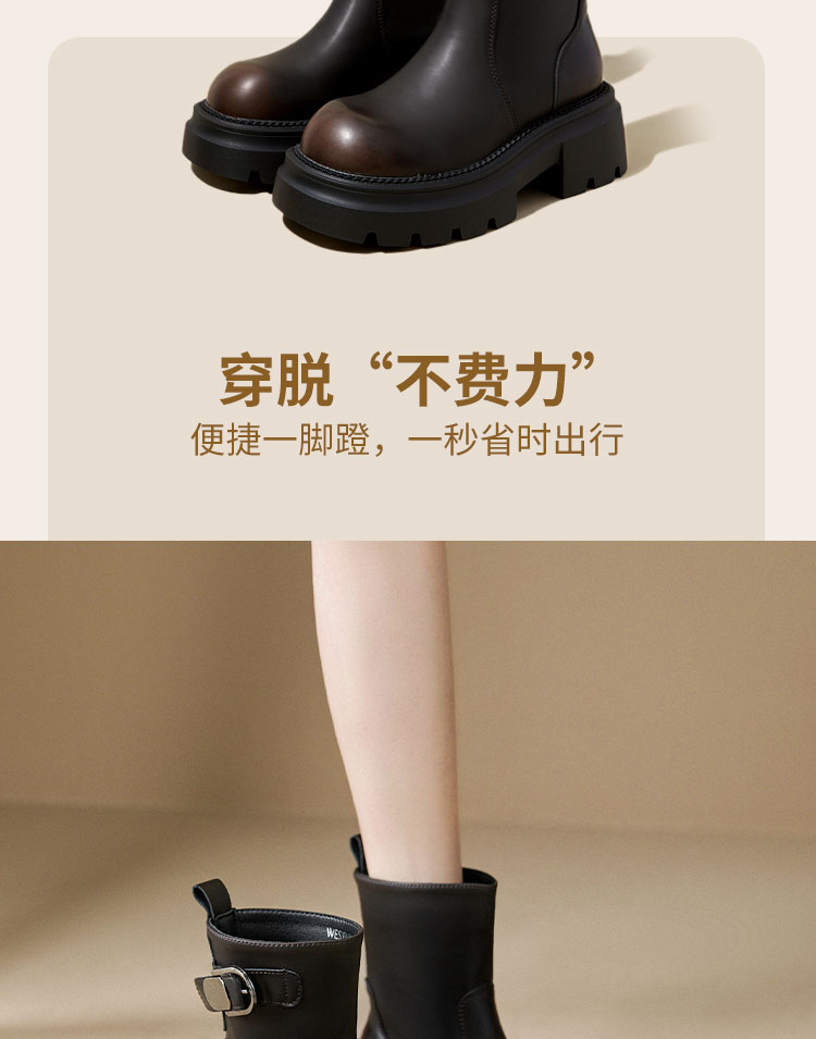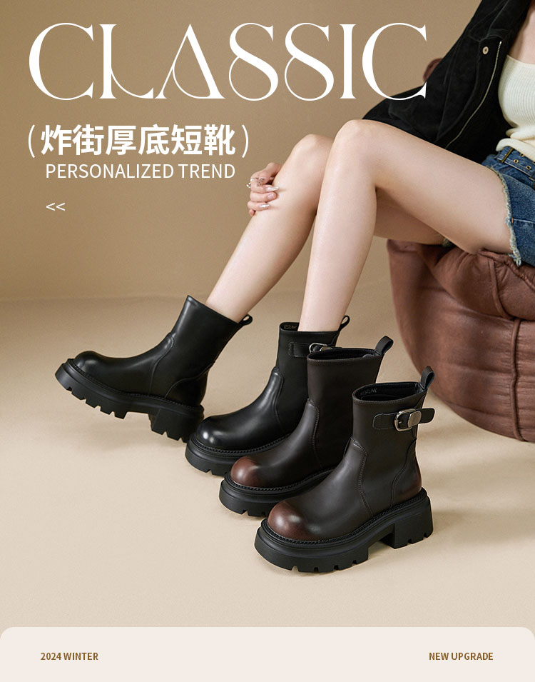 西遇厚底短靴女小个子新款秋冬炸街英伦马丁靴黑色圆头瘦瘦靴D3947719