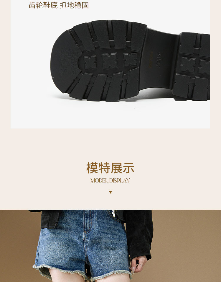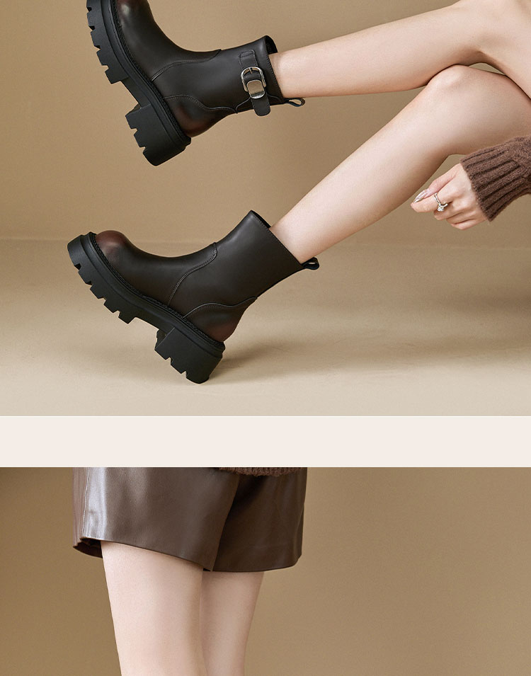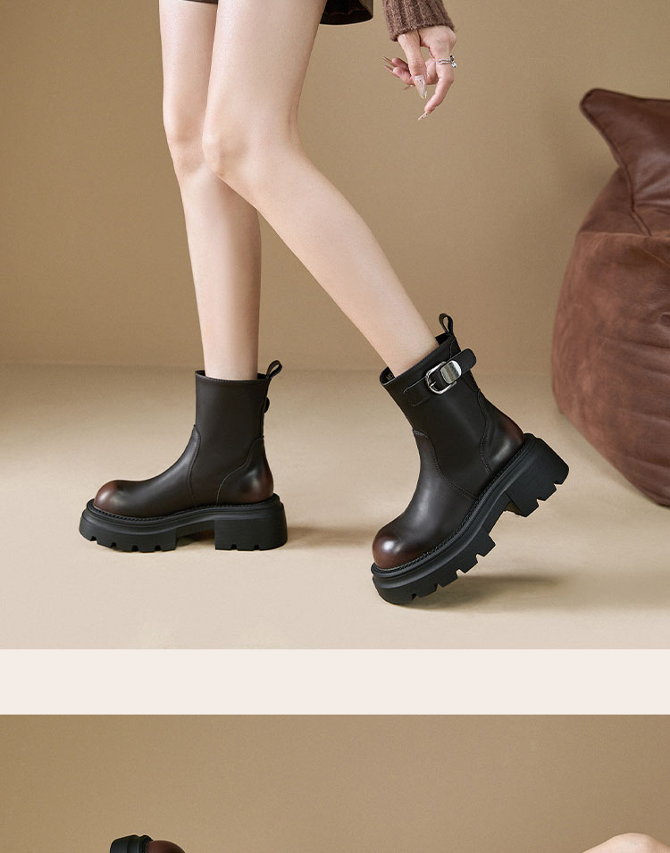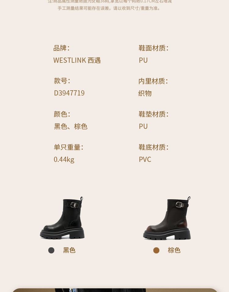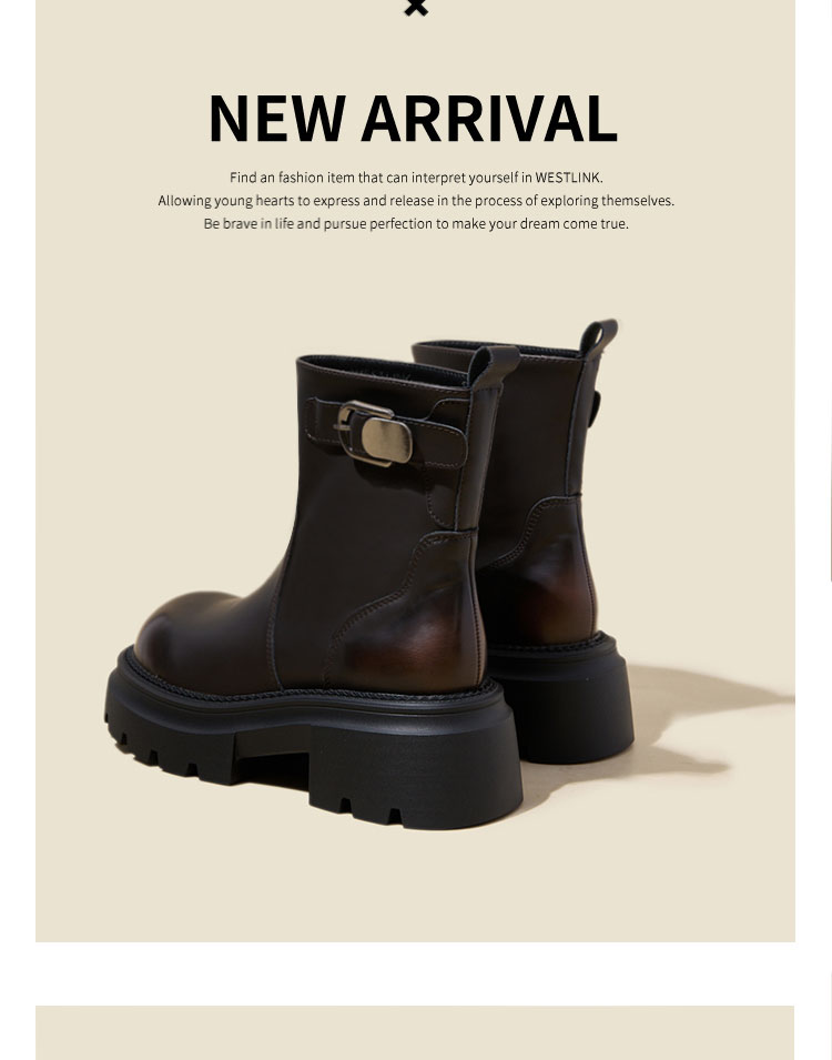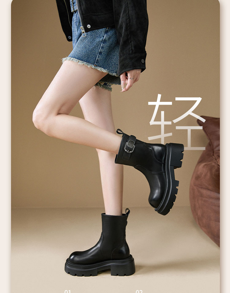 西遇厚底短靴女小个子新款秋冬炸街英伦马丁靴黑色圆头瘦瘦靴D3947719