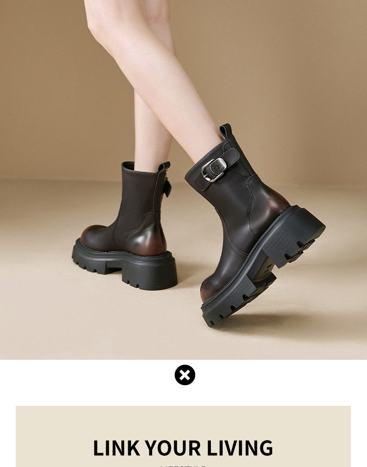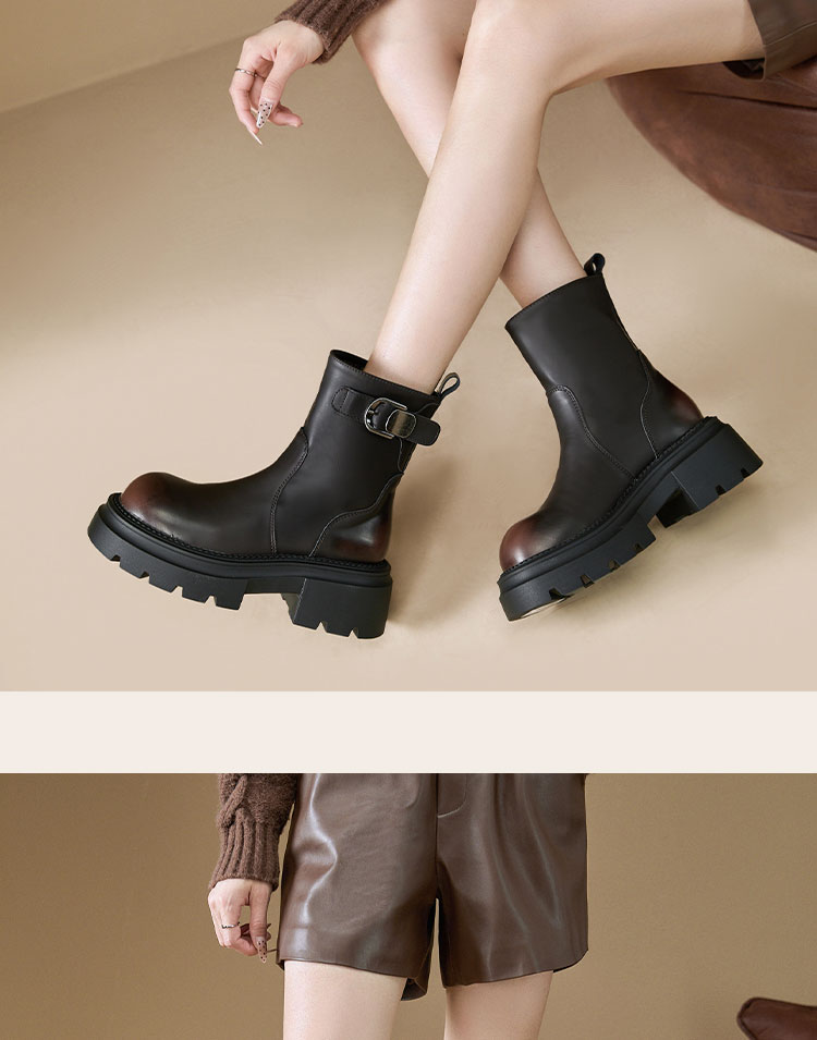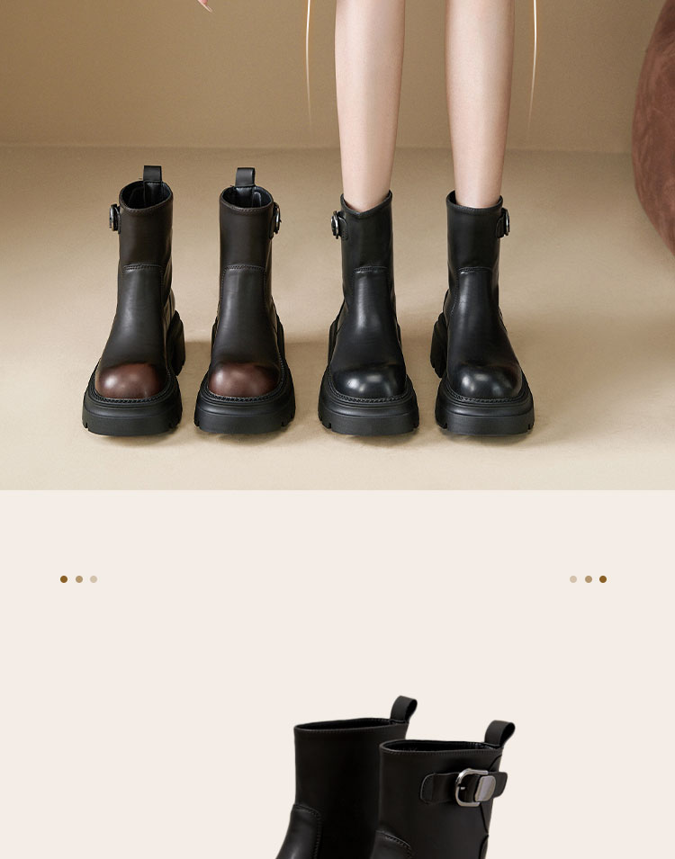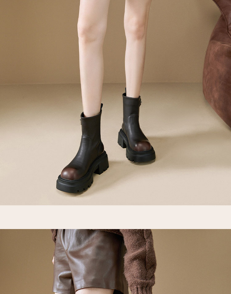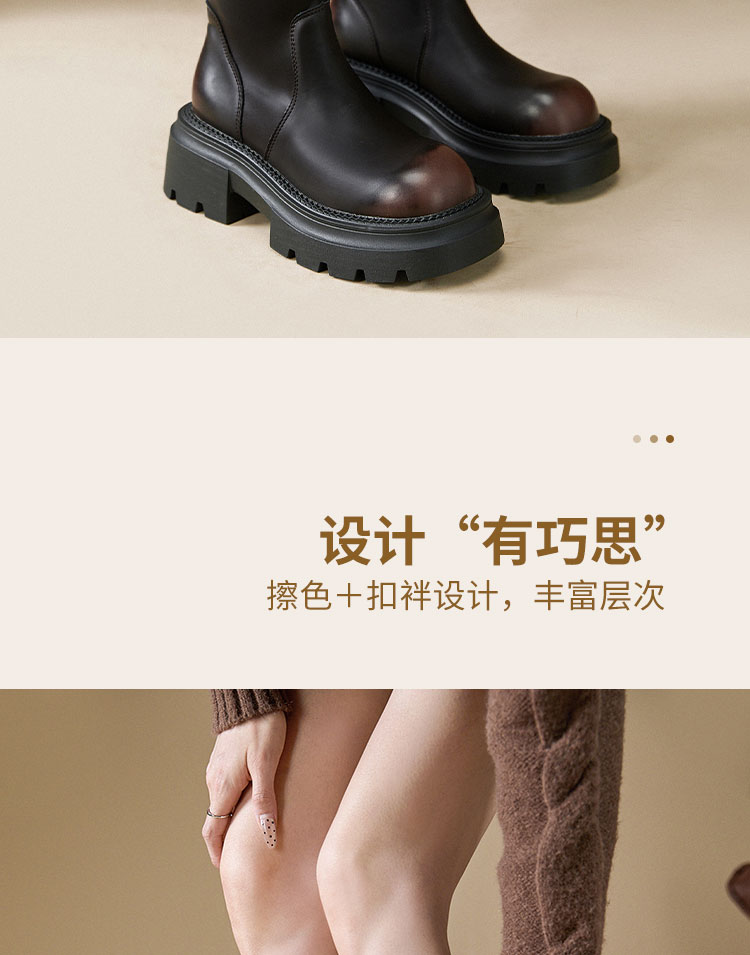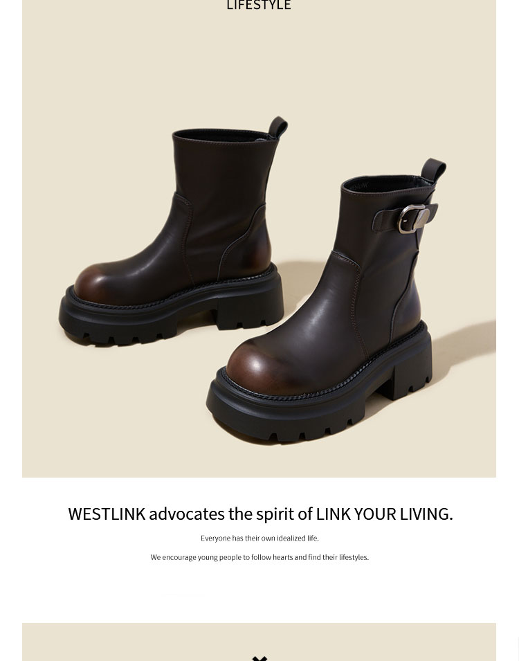 西遇厚底短靴女小个子新款秋冬炸街英伦马丁靴黑色圆头瘦瘦靴D3947719