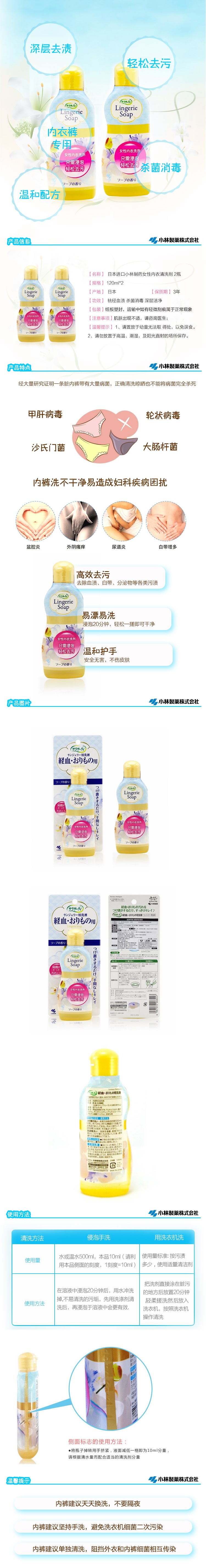 小林 经期内裤清洗剂120ml*2瓶 日本