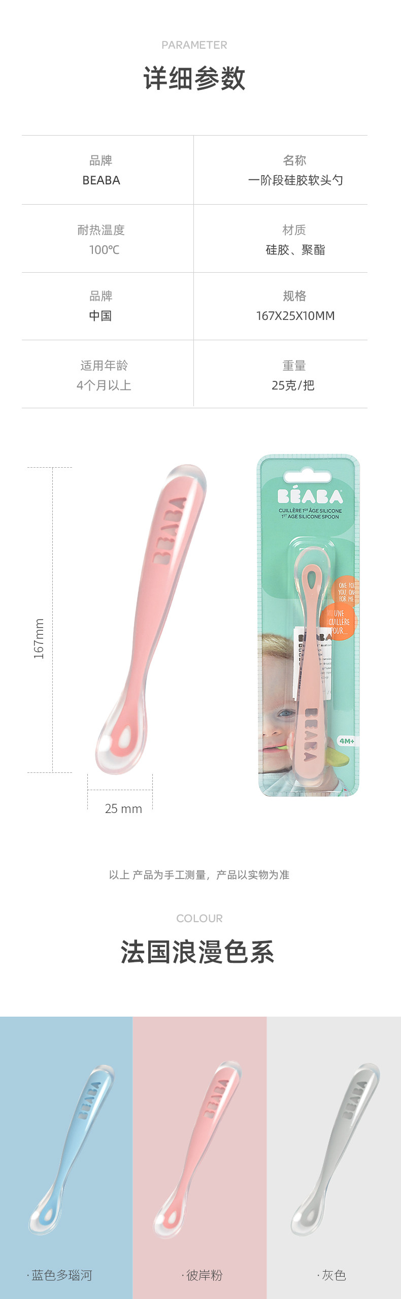 法国BEABA一阶段儿童硅胶软勺 宝宝碗勺餐具婴儿勺子辅食勺新生儿软头勺