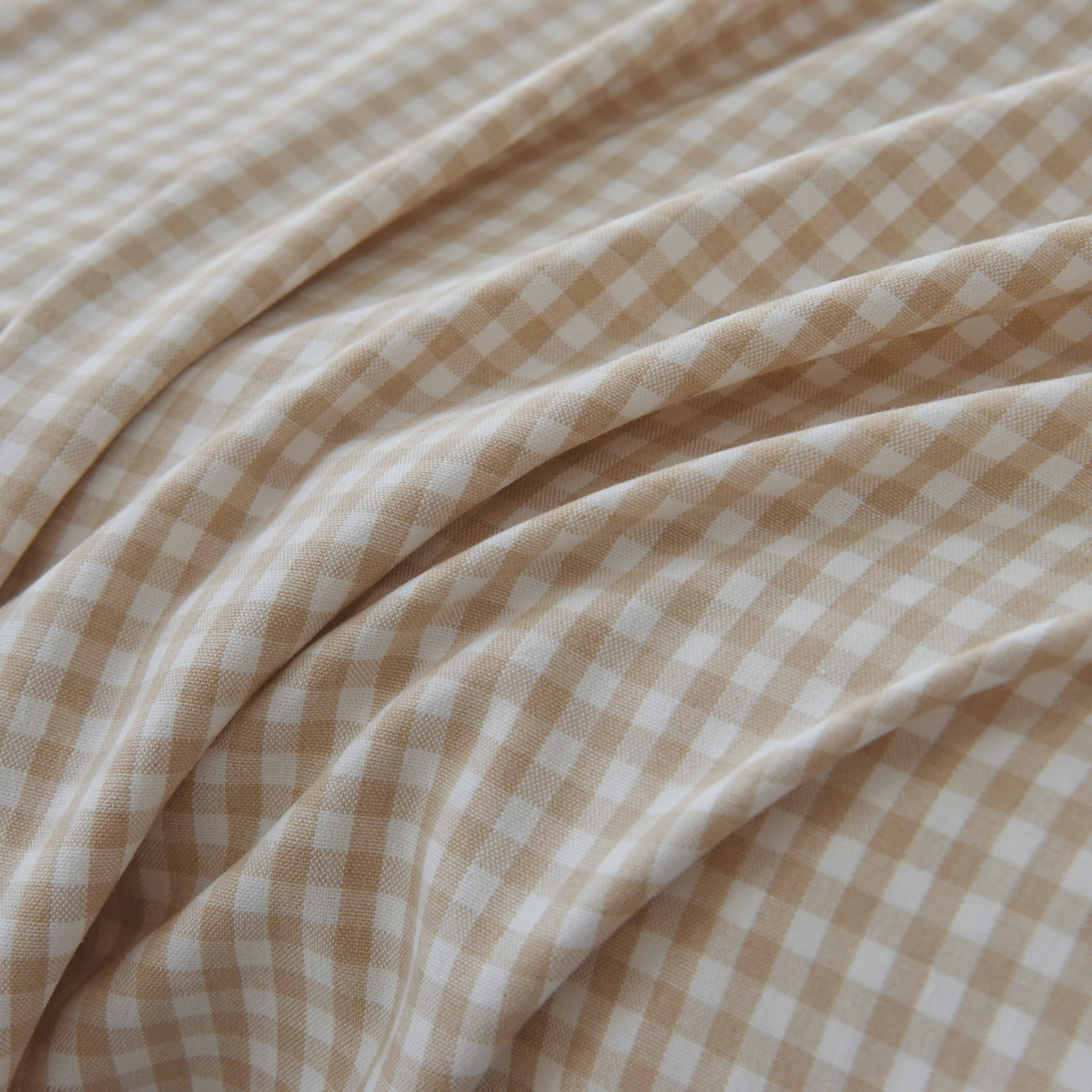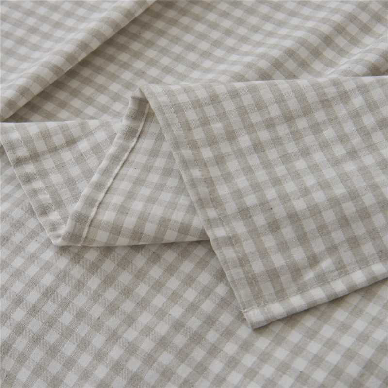 苎麻纤维粗空隙大、 独有空腔导汗结构特别适合夏季使用,清爽不易粘身,颜色是由选自特优品种苎麻+有机彩棉棉花原本的颜色,颜色和图案是提花织出来的,不是印染,简单静好,安全感满满。