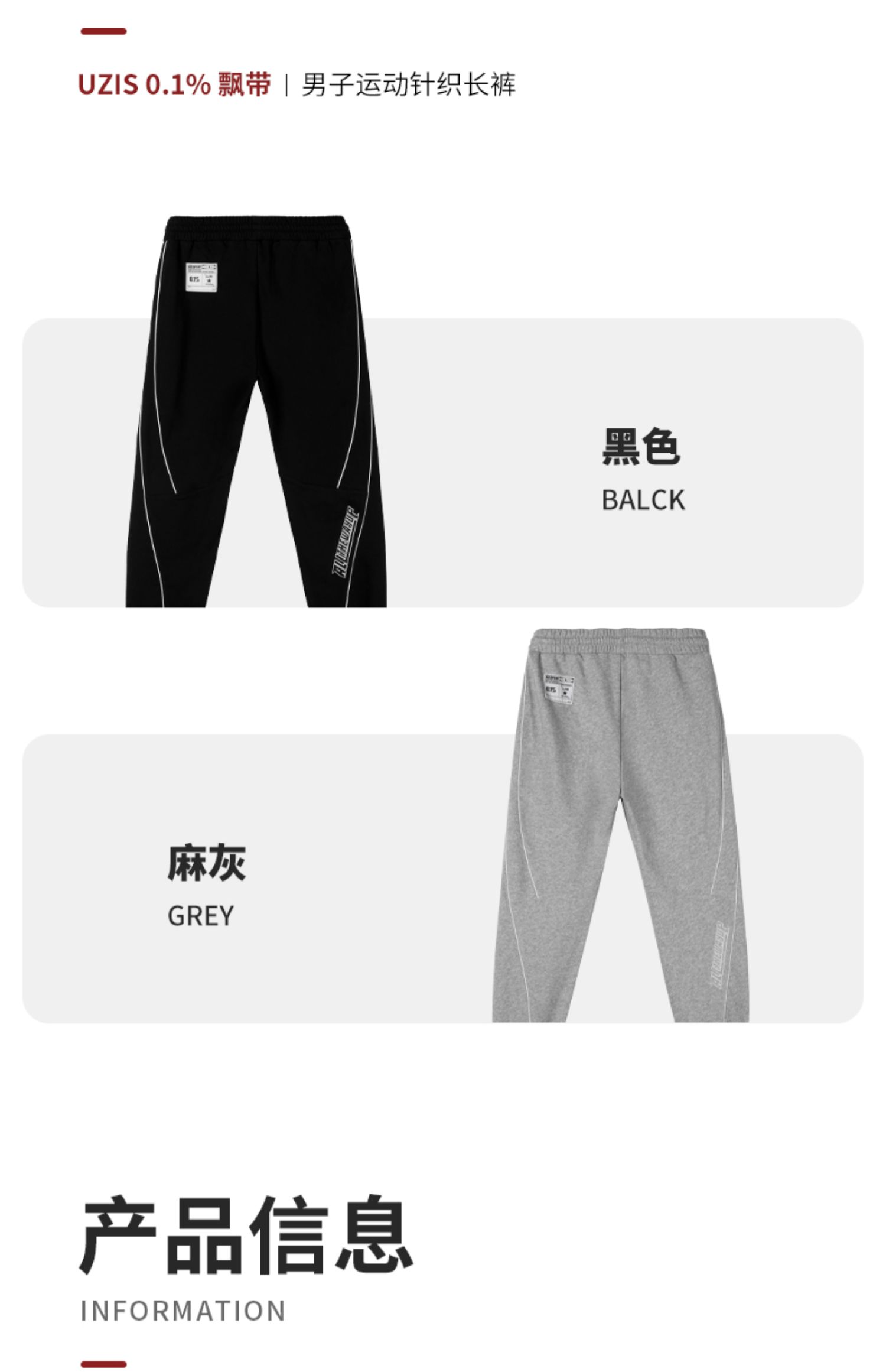 0.1% UZIS运动长裤男宽松休闲束脚卫裤健身美式篮球训练裤[飘带]