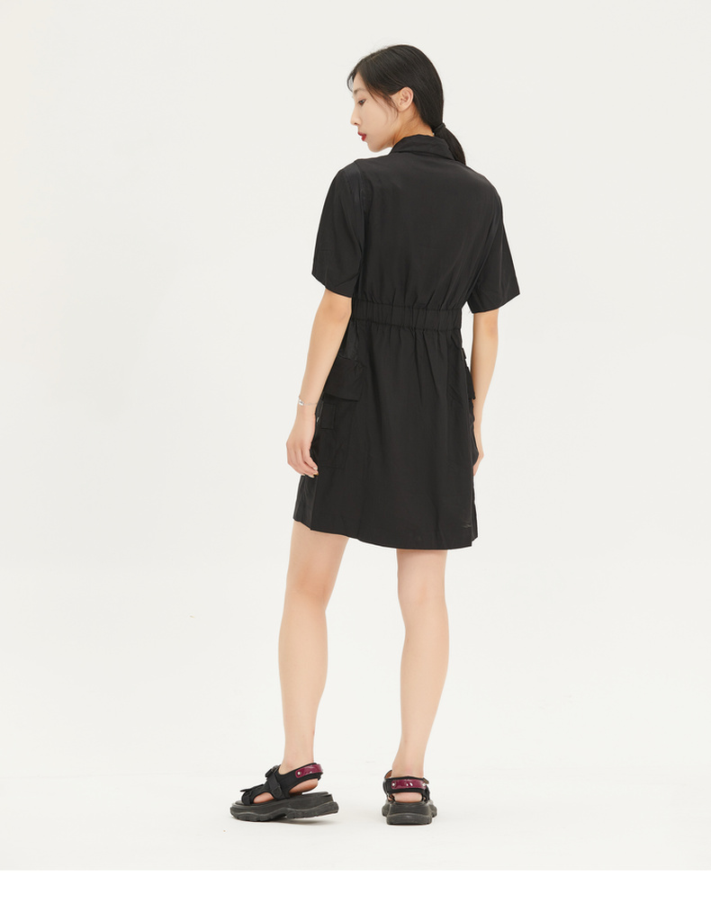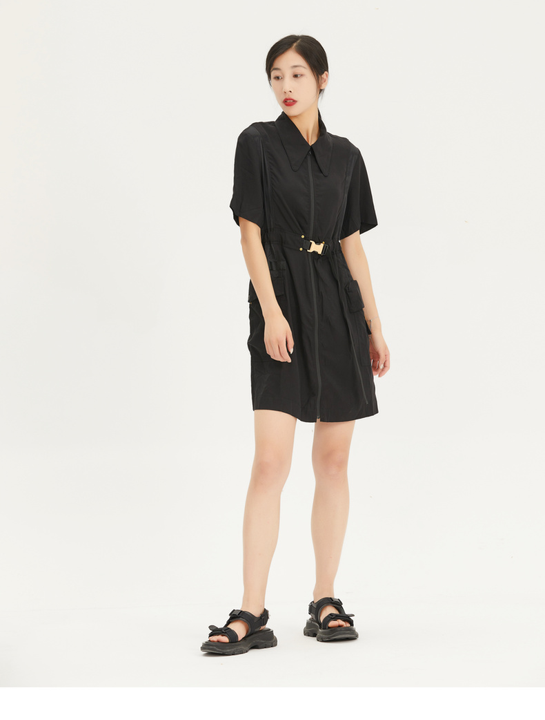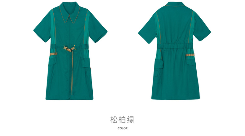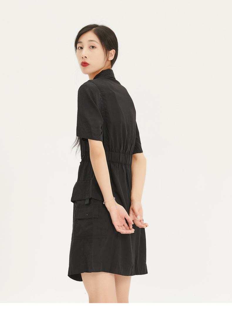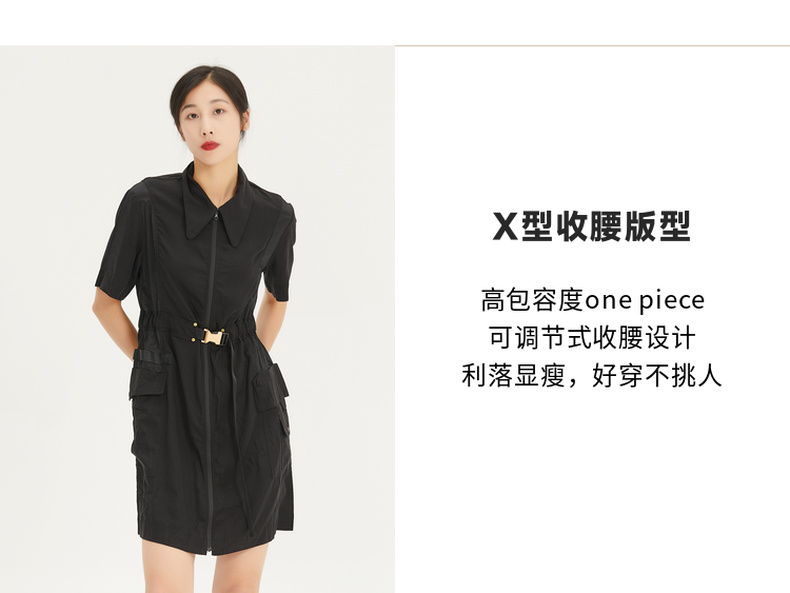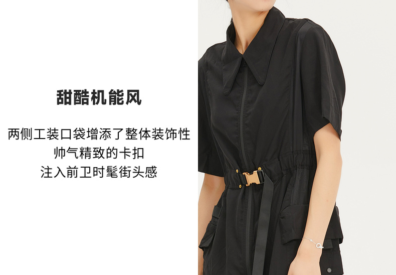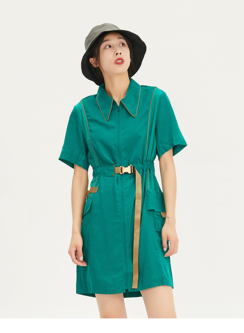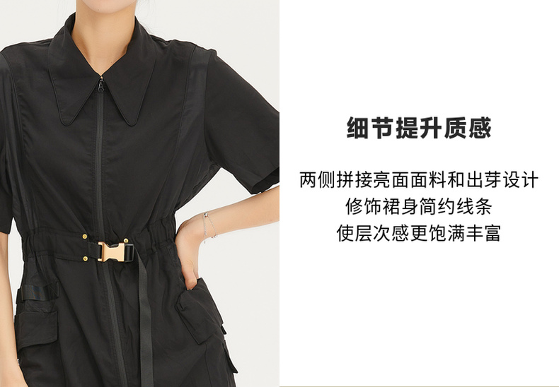 谜底2022夏季新款工装感拼接尖领收腰莱赛尔连衣裙225ML6045