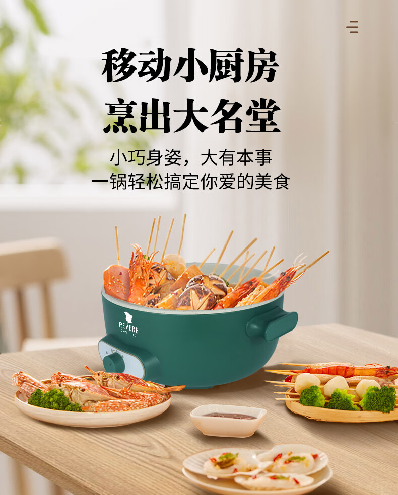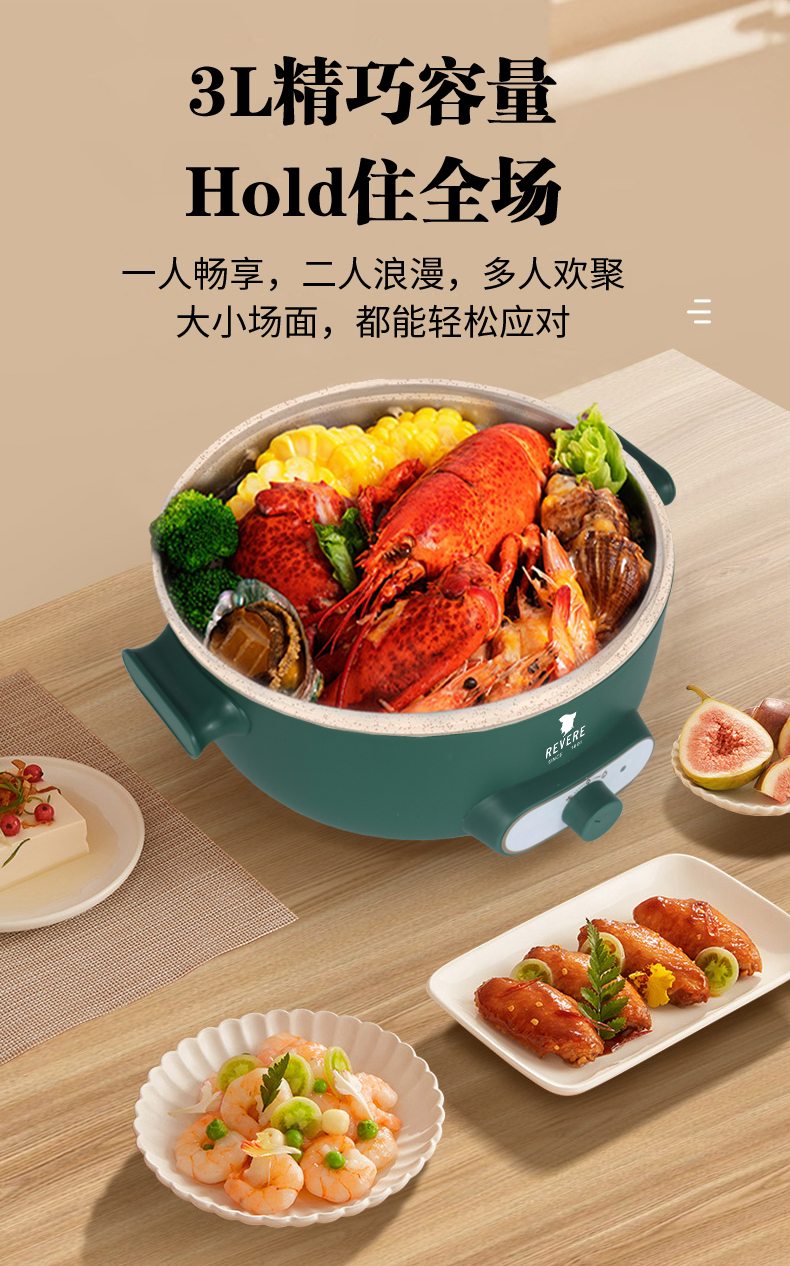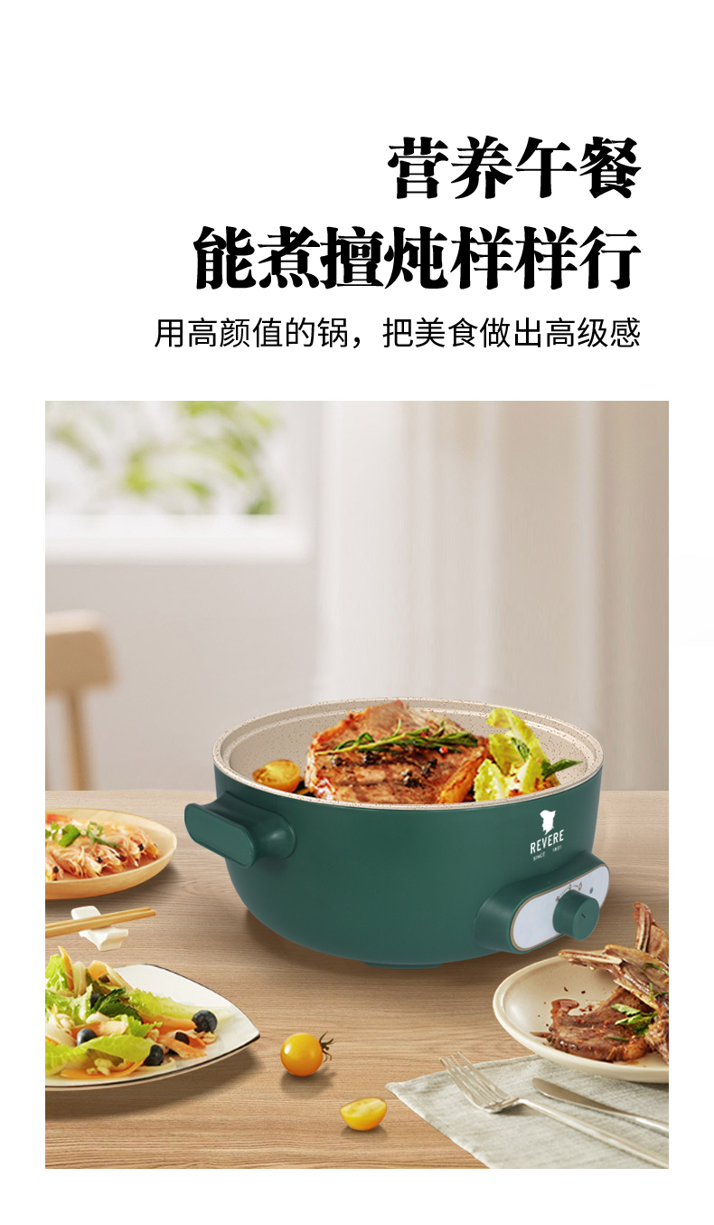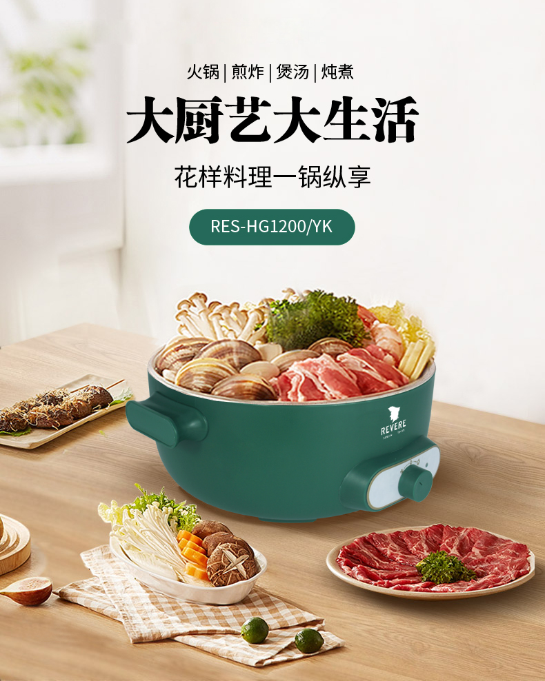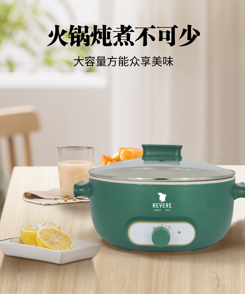 【小家电】REVERE家用多功能电火锅RES-HG1200/YK墨绿色 4L HF