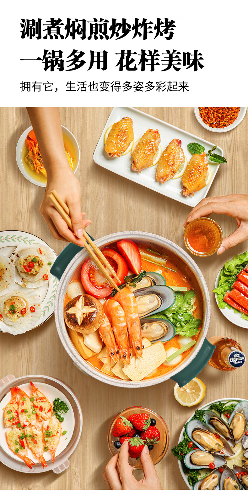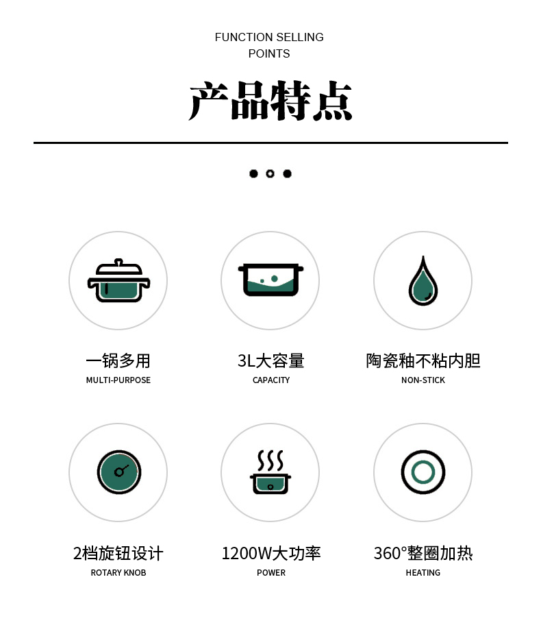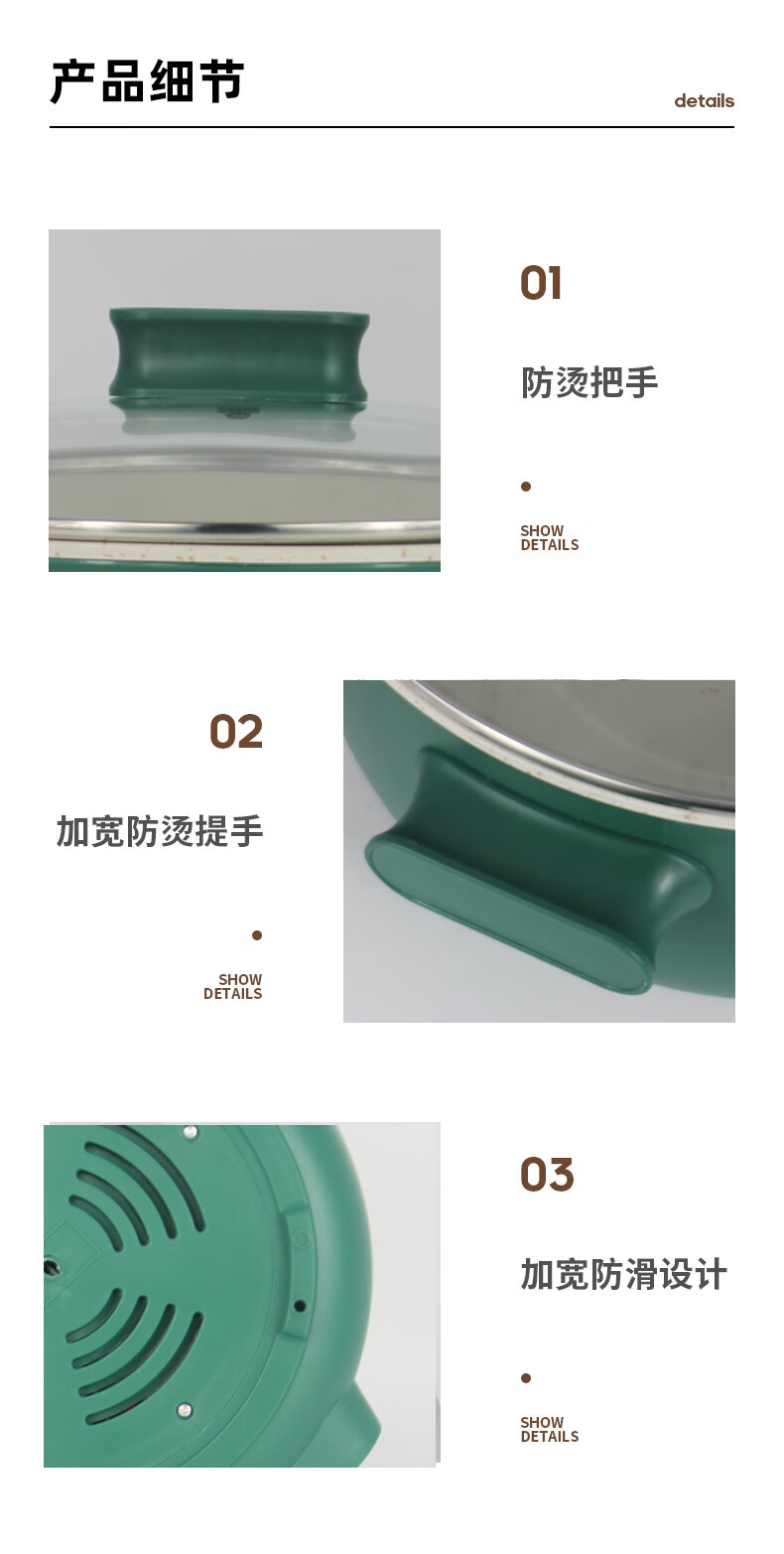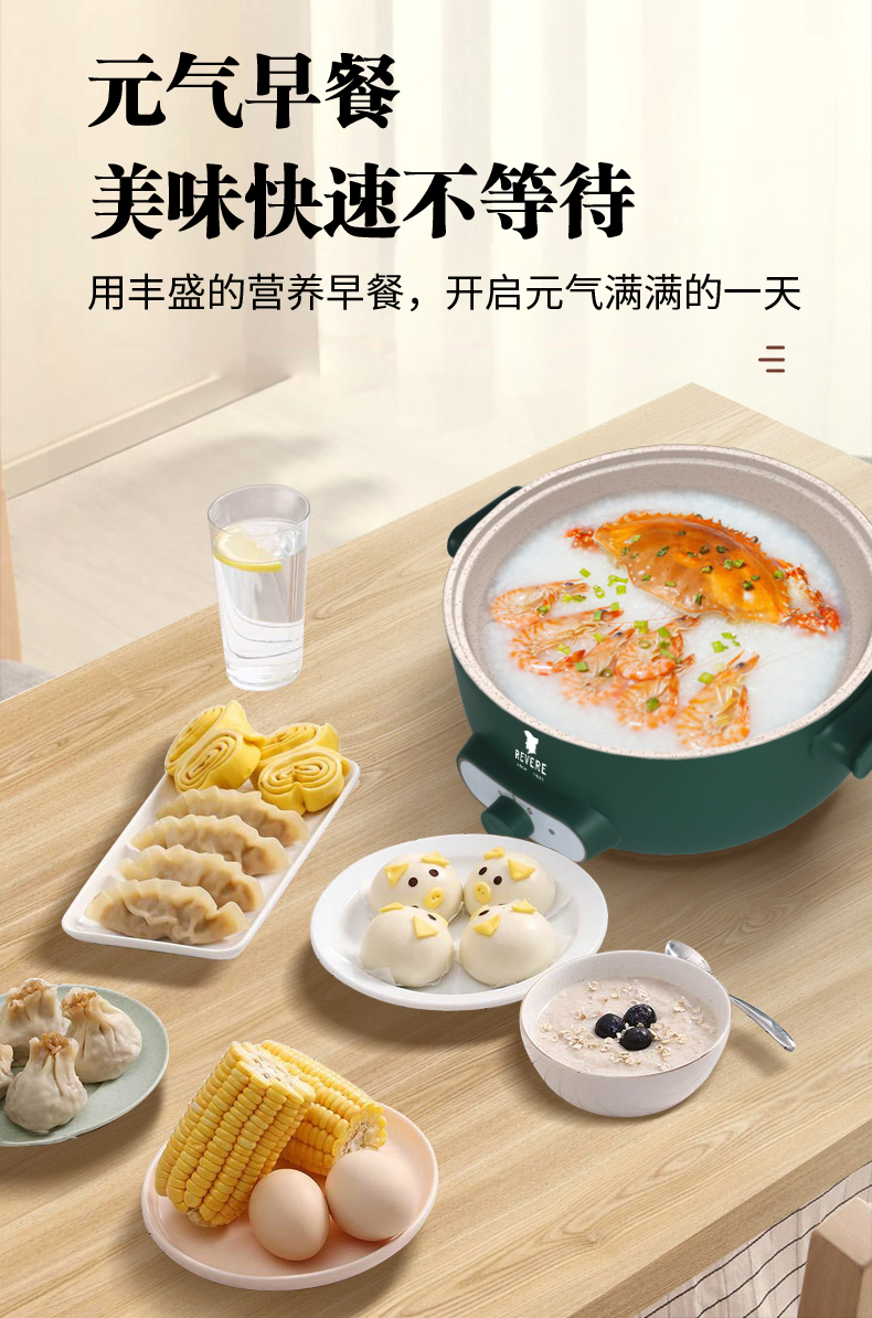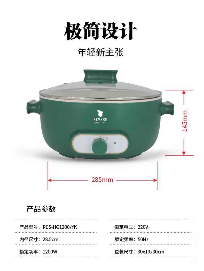 【小家电】REVERE家用多功能电火锅RES-HG1200/YK墨绿色 4L HF