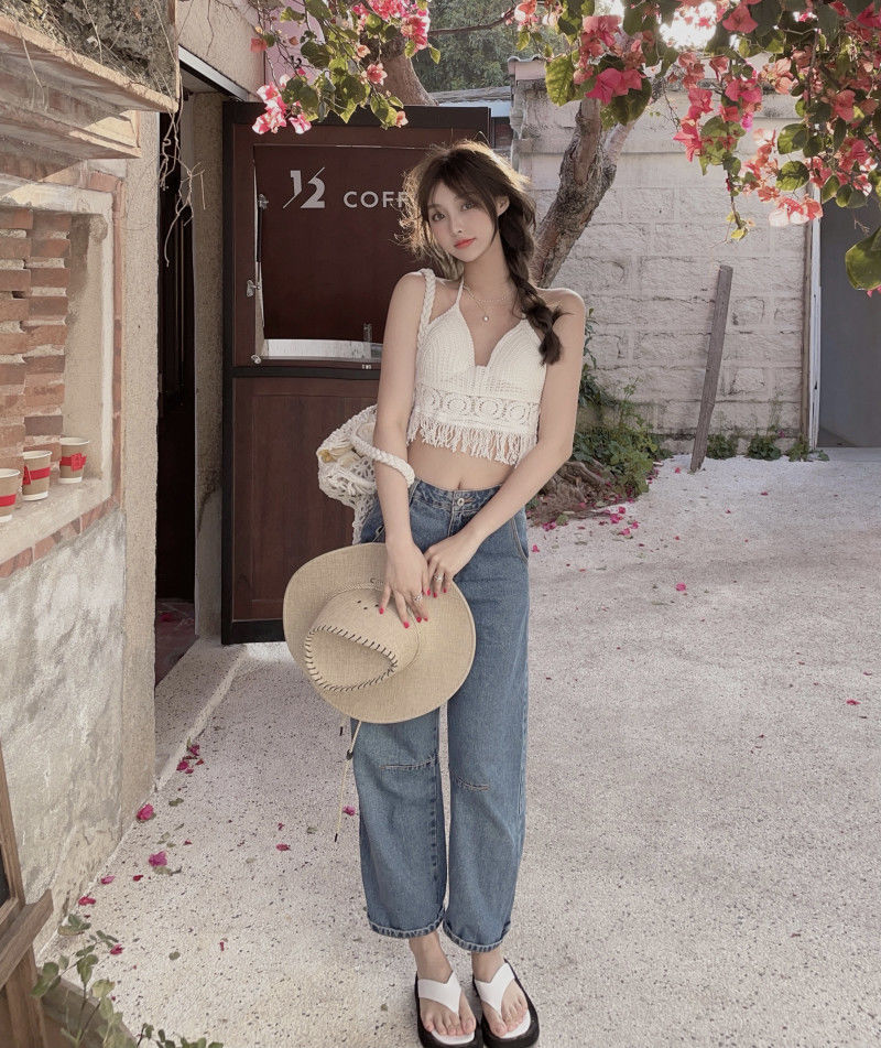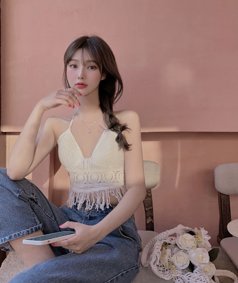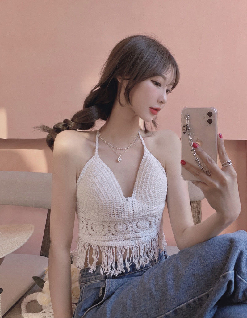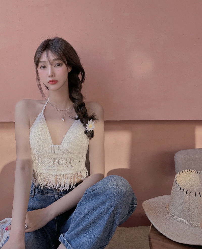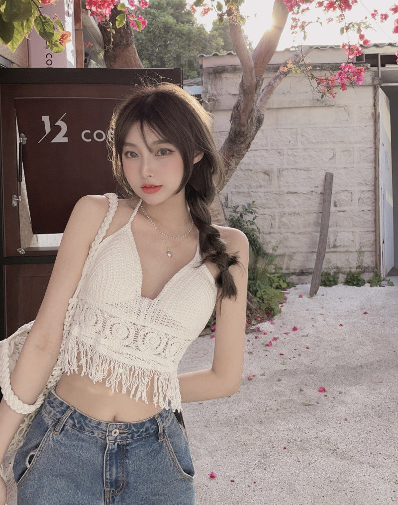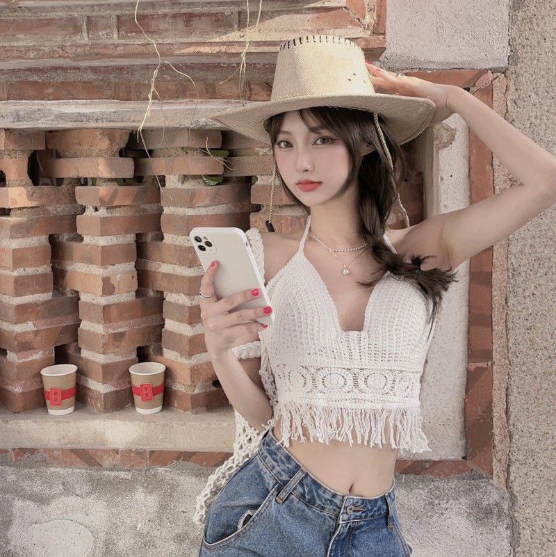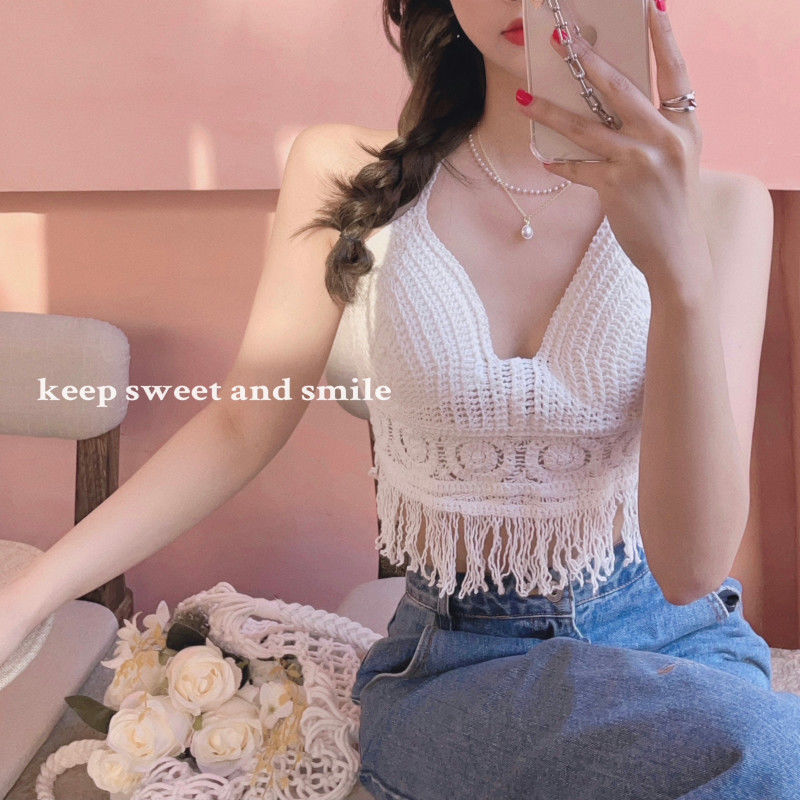 【超仙!美背流苏上衣】女性感镂空吊带,自带胸垫巨方便,超美比基尼针织背心,怎么穿都好看,海边度假复古挂脖~