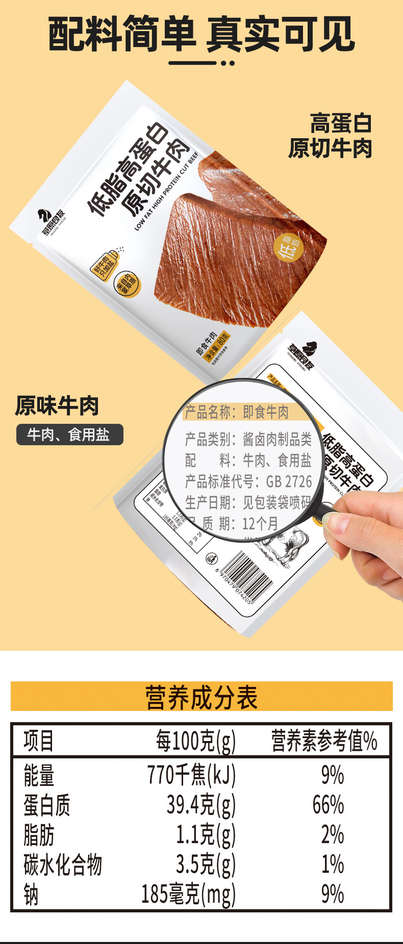 内蒙古即食牛肉 健身低脂原切牛肉 轻食代餐原味牛腱子肉80g/袋装 正宗内蒙古特产牛肉干