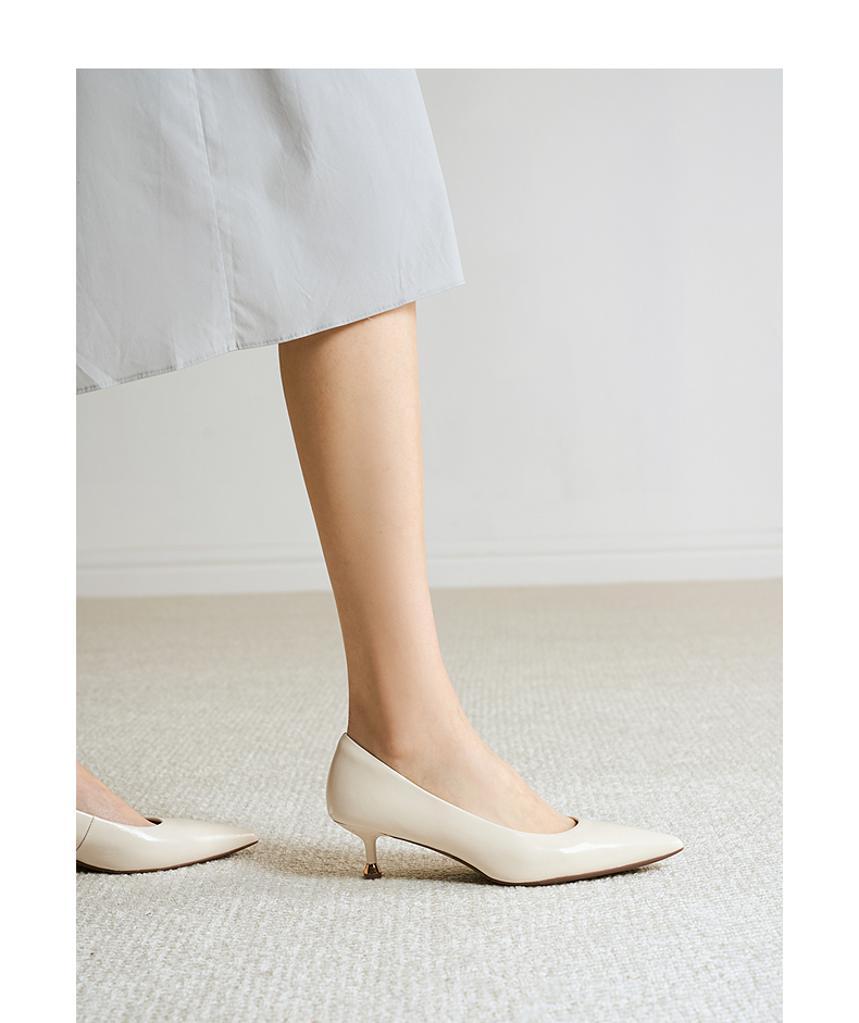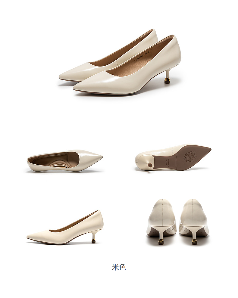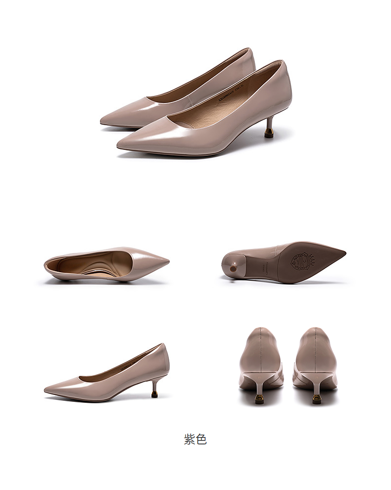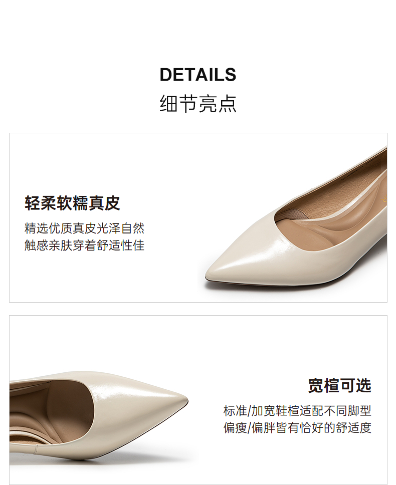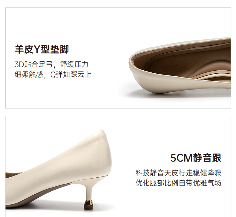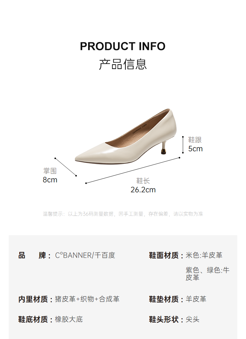 千百度羊皮粗高跟鞋女玛丽珍鞋法式裸色尖头浅口单鞋A25485658