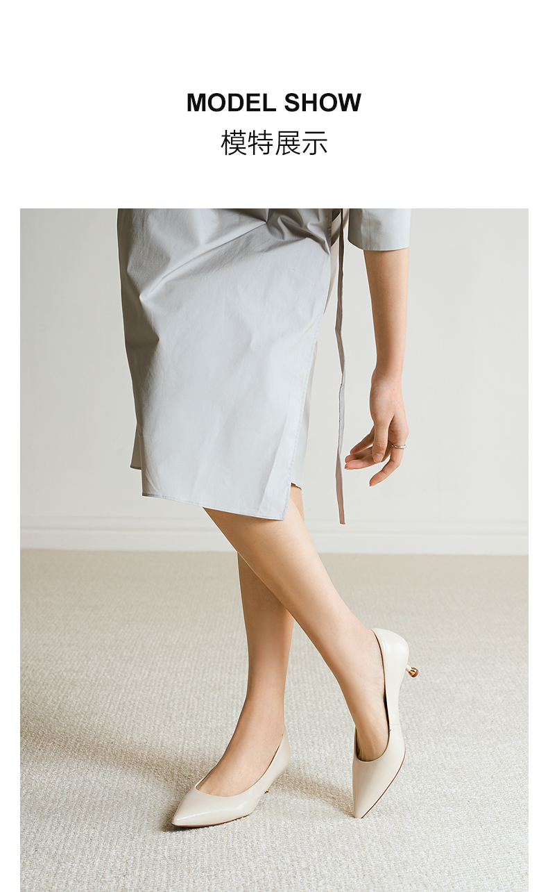 【静音系列】千百度裸色细高跟鞋女2026春季新款羊皮尖头浅口单鞋A26189905