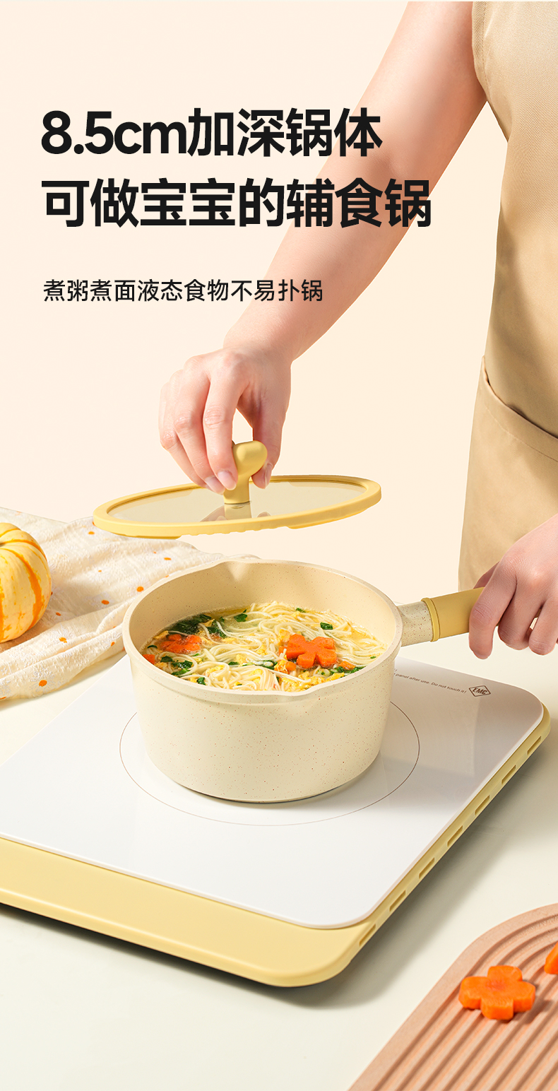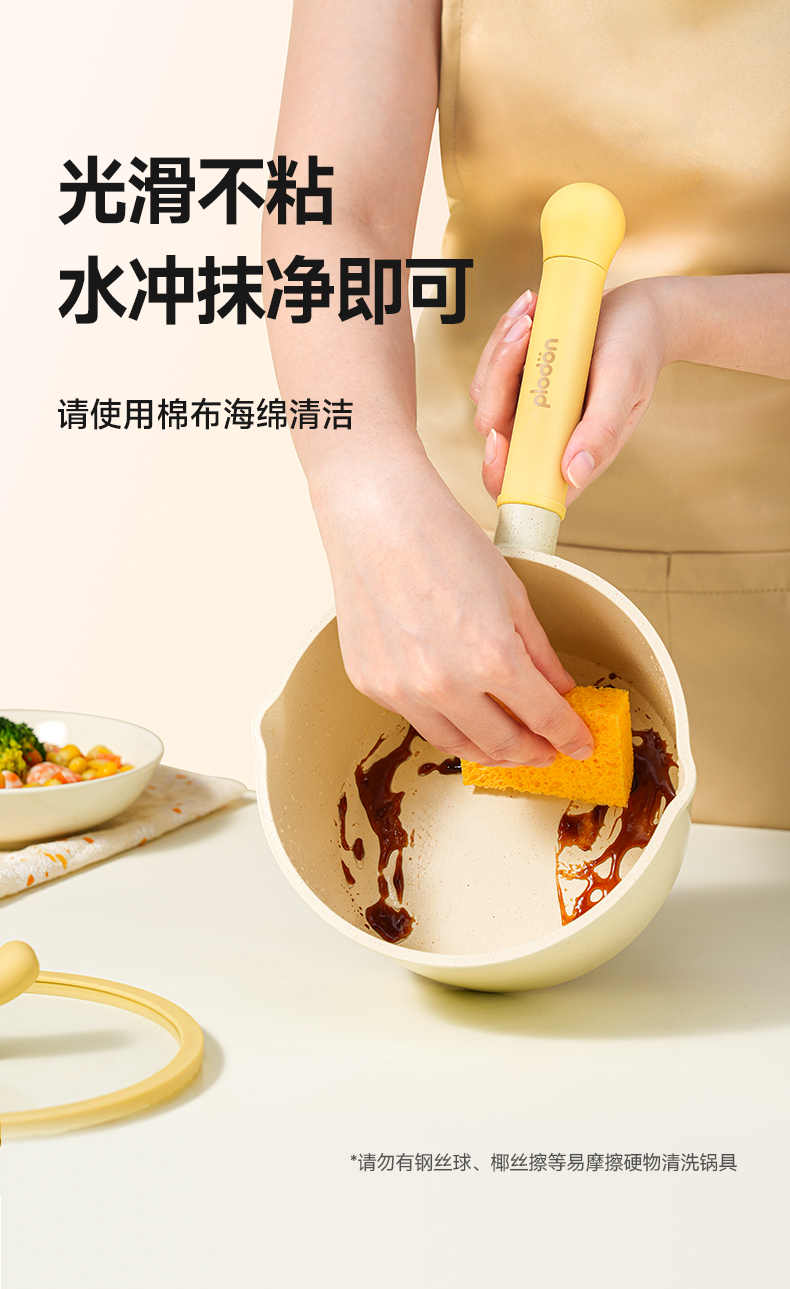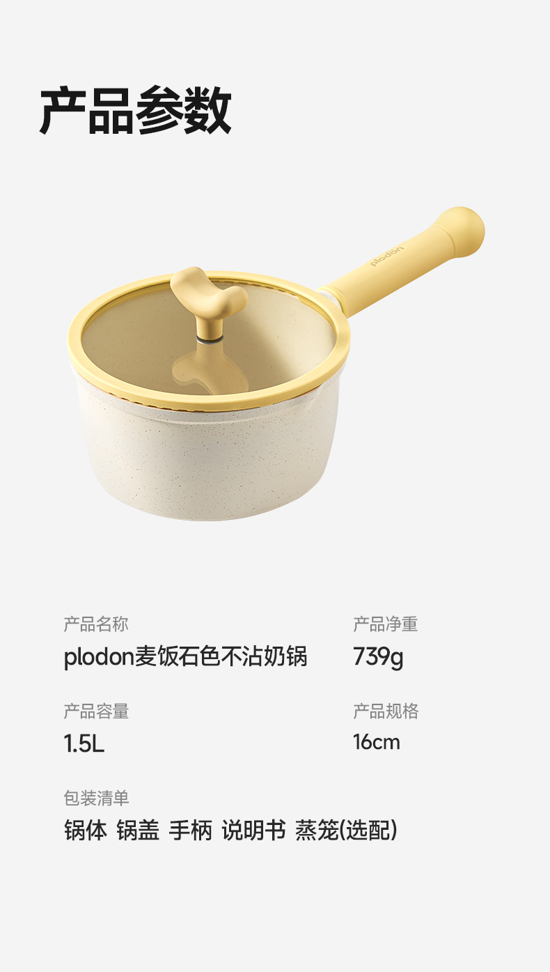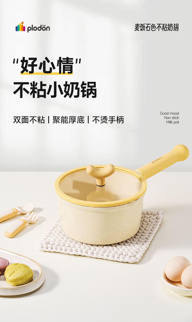 plodon浦利顿麦饭石奶锅宝宝辅食不粘锅煎煮一体