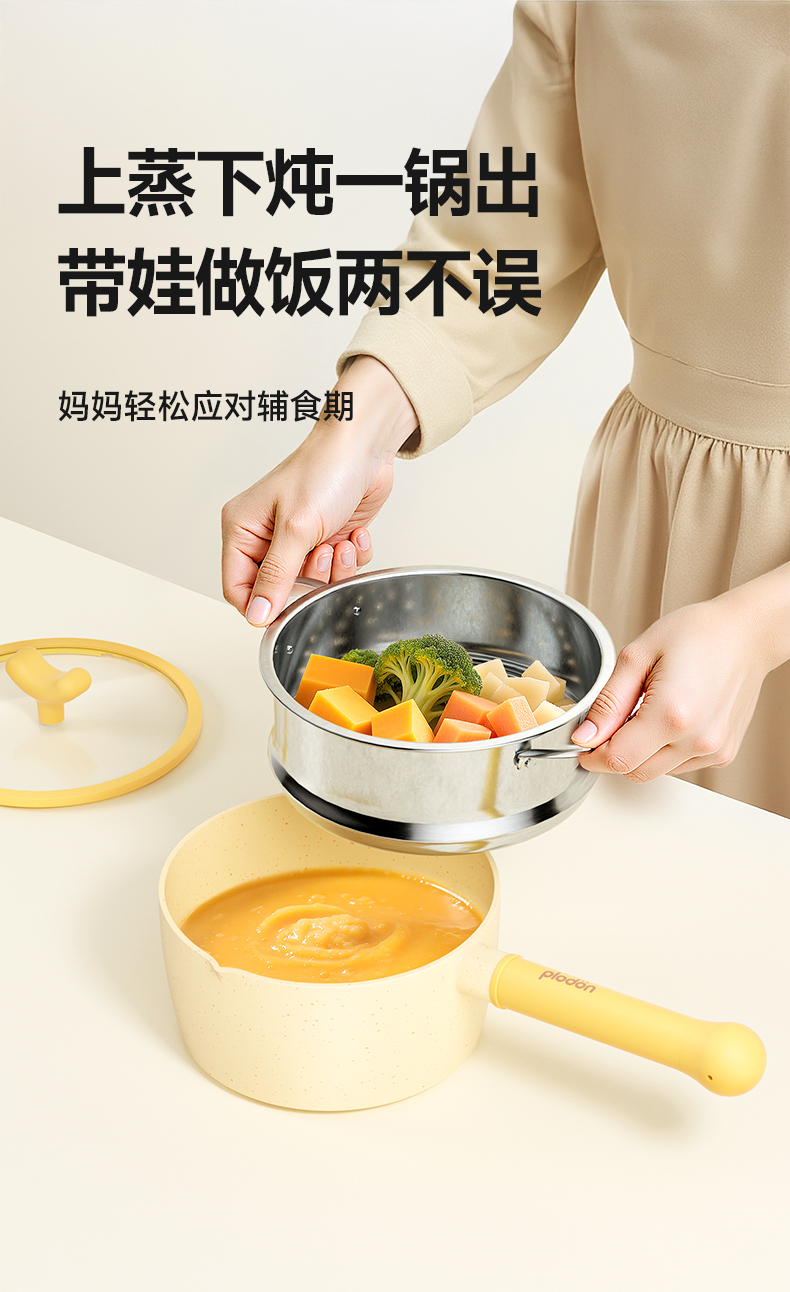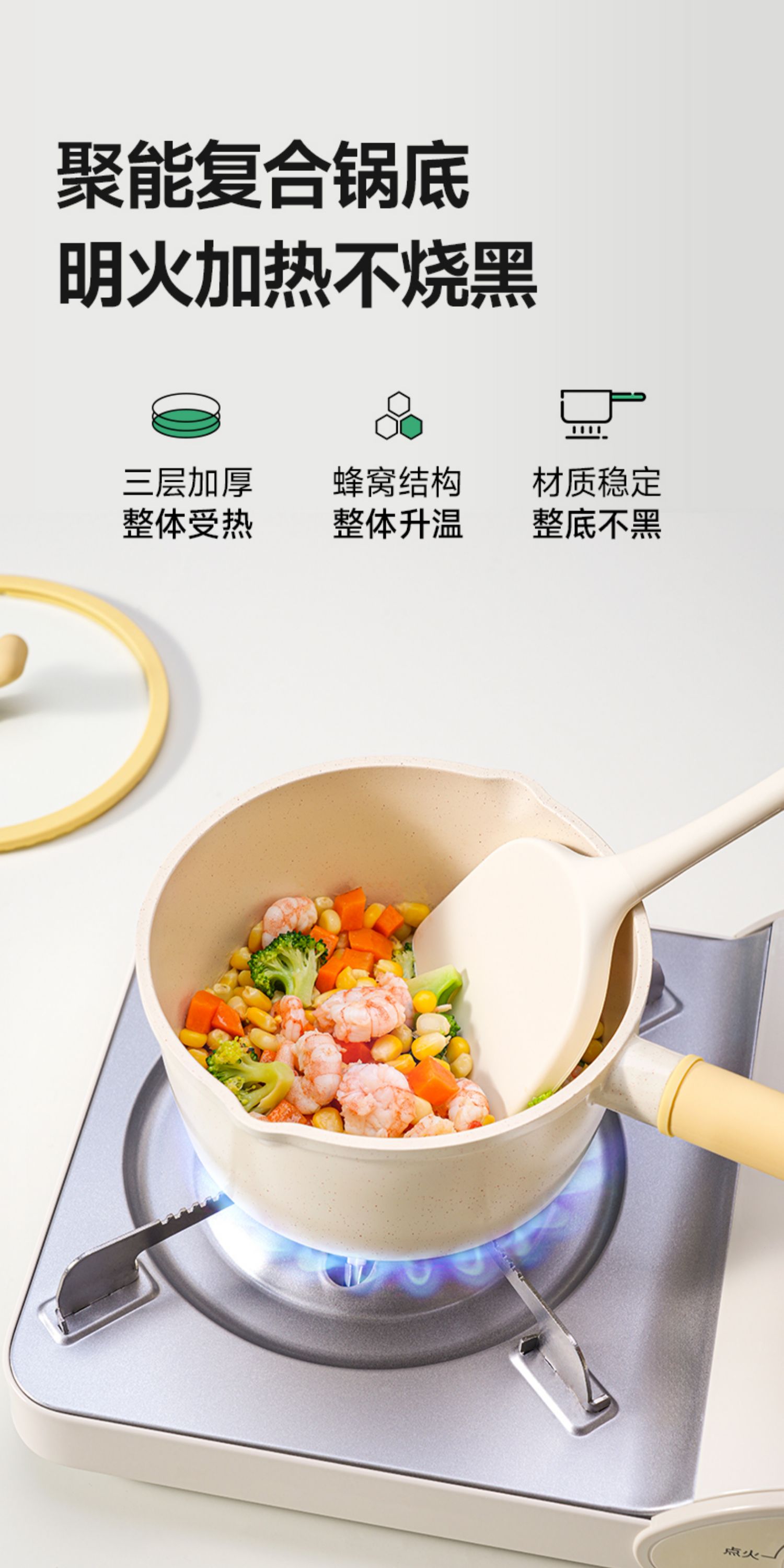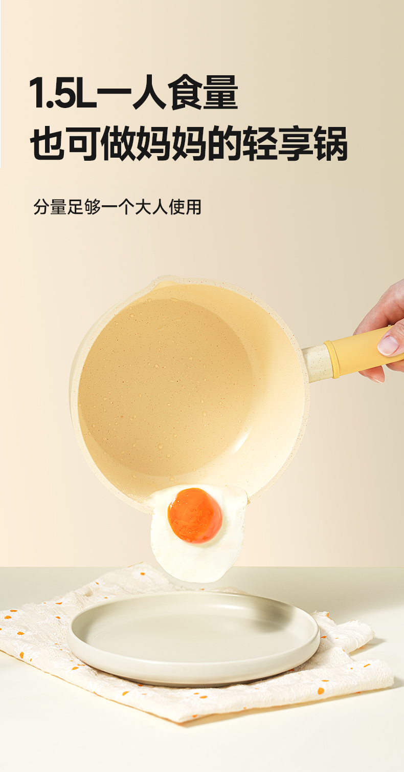 plodon浦利顿麦饭石奶锅宝宝辅食不粘锅煎煮一体