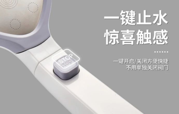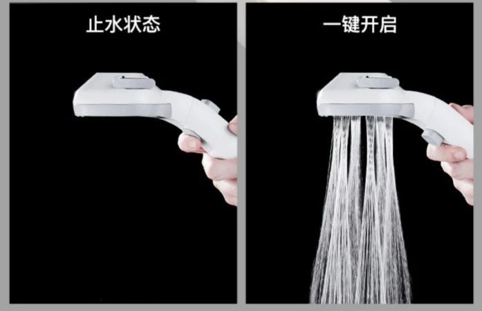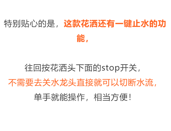 花洒上直接控制开关 洗头时再也不用闭着眼睛 去开关水龙头