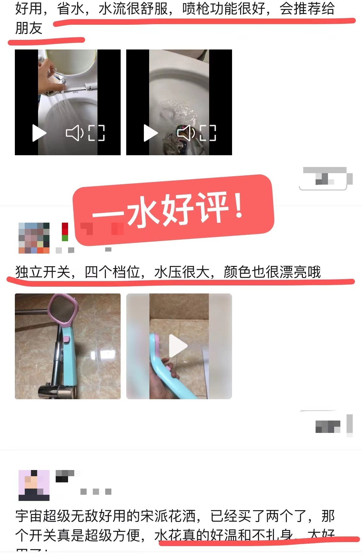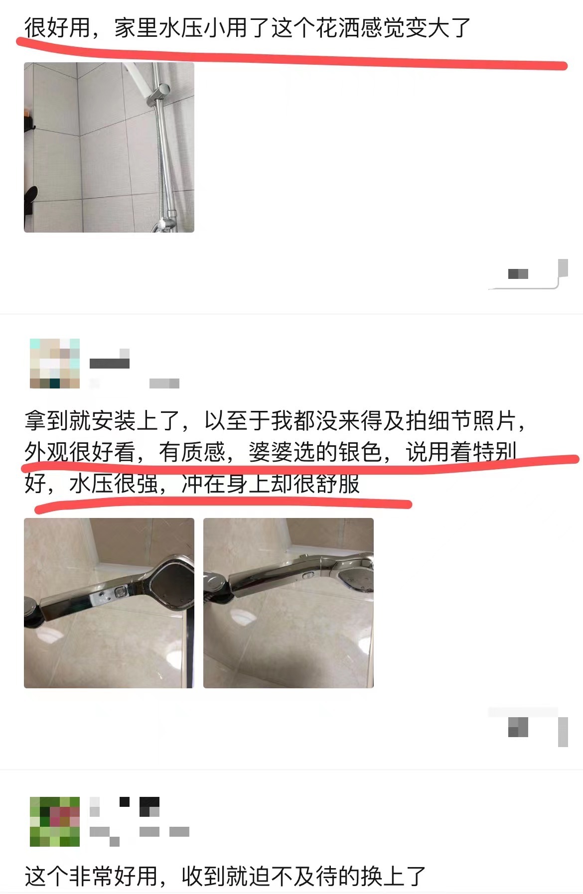 评论反馈都是好评,真的不是家里水压问题!!花洒几十块钱的投资,能享受好几年甚至十几年洗澡的快感,家里爸爸妈妈的也一起换了,生活便利幸福指数蹭蹭飙升,