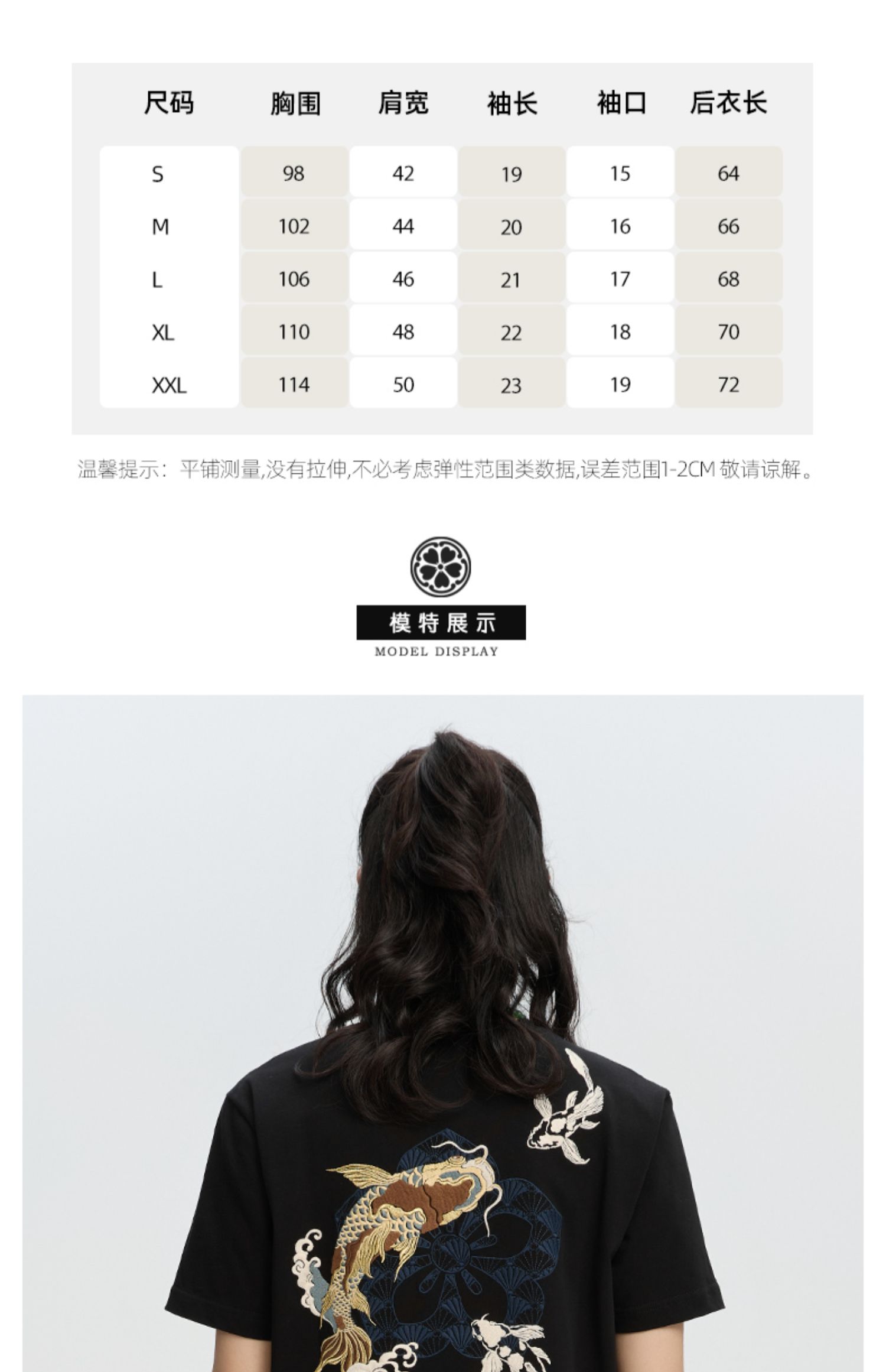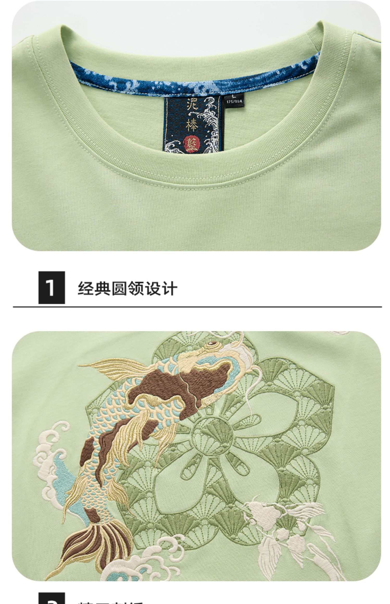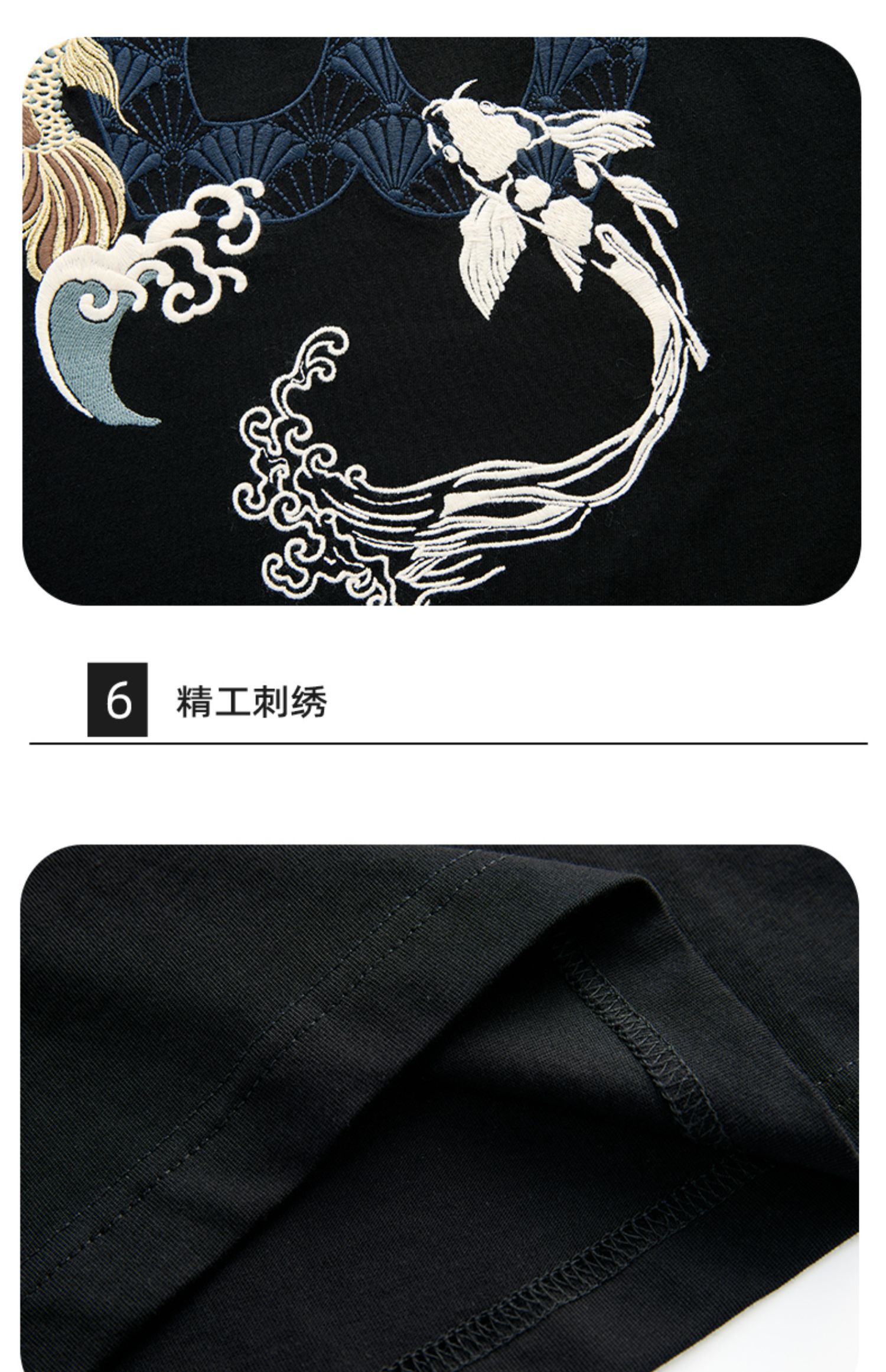 ONIARAI/鬼洗24春夏新泥棒蓝相思鲤刺绣宽松短袖男士T恤 24NOB33