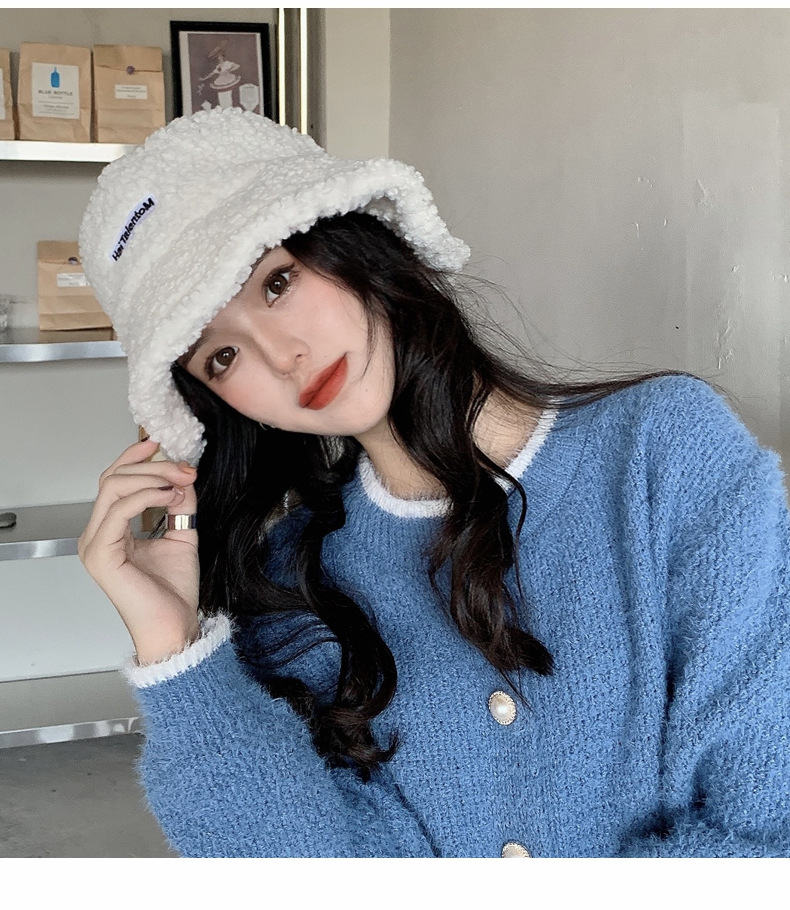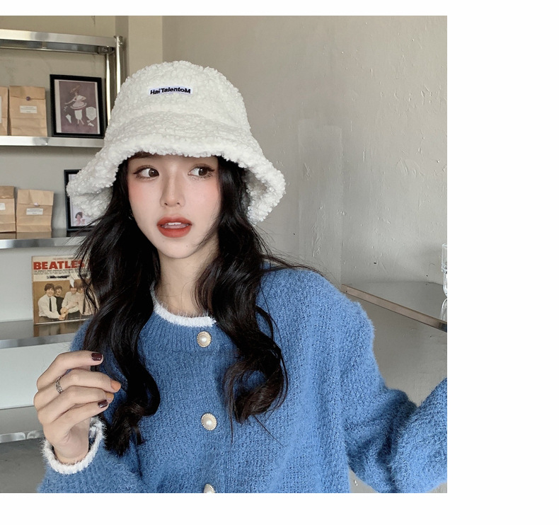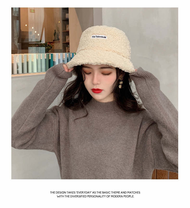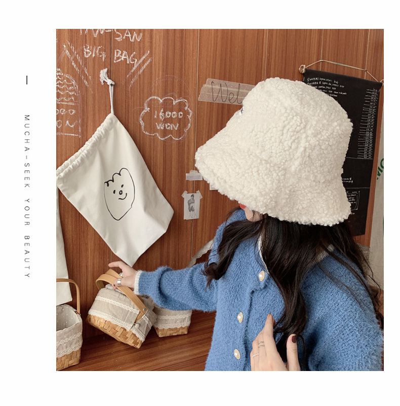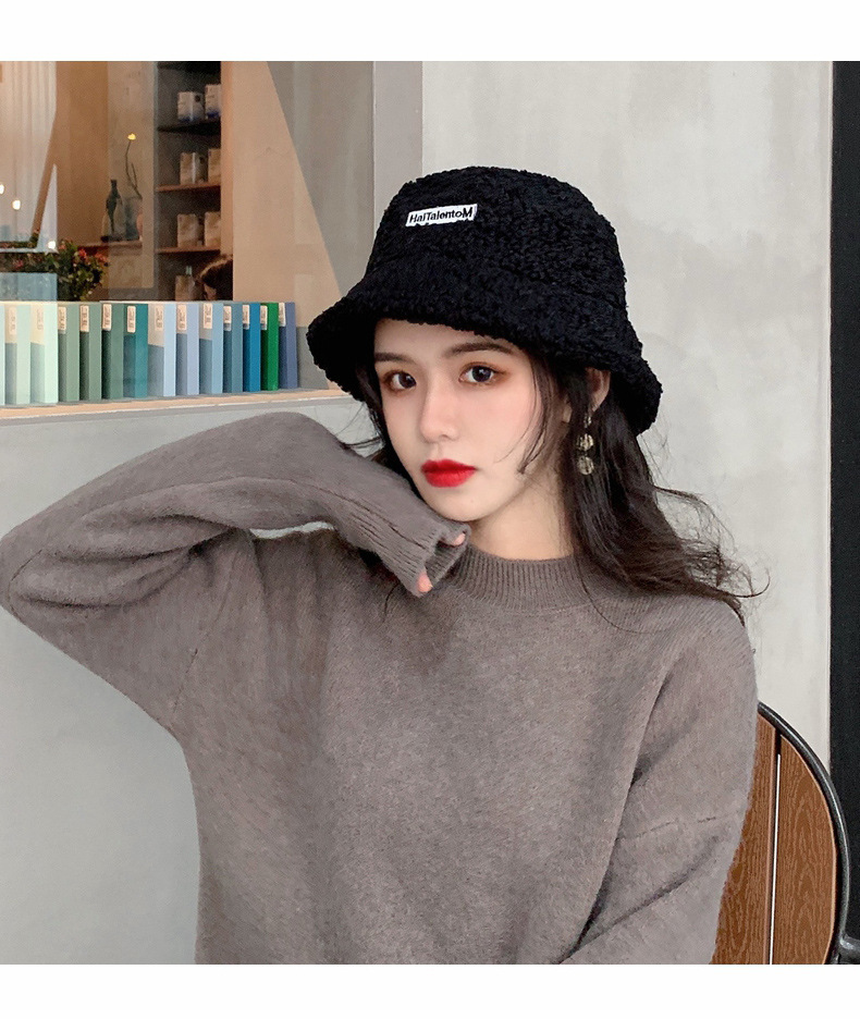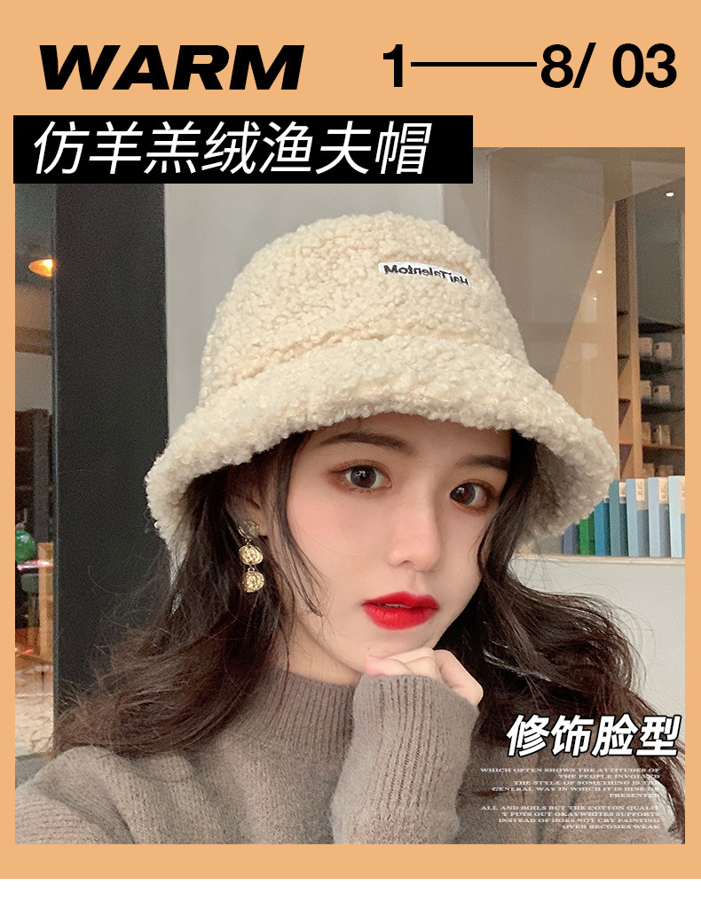 【冬季时尚 百搭潮流!】新款渔夫帽女新款秋冬季百搭保暖仿羊羔毛毛绒帽子显脸小日系盆帽女